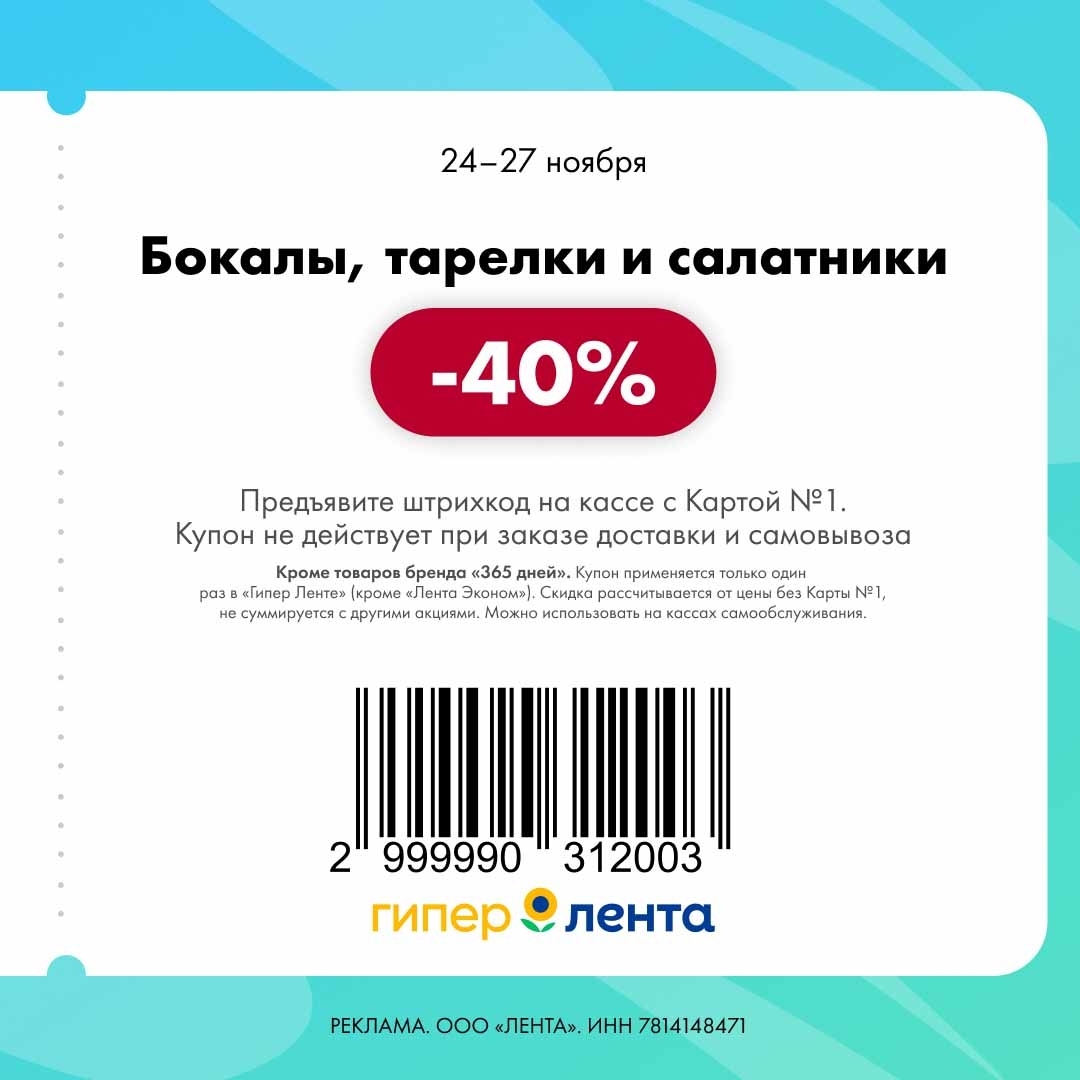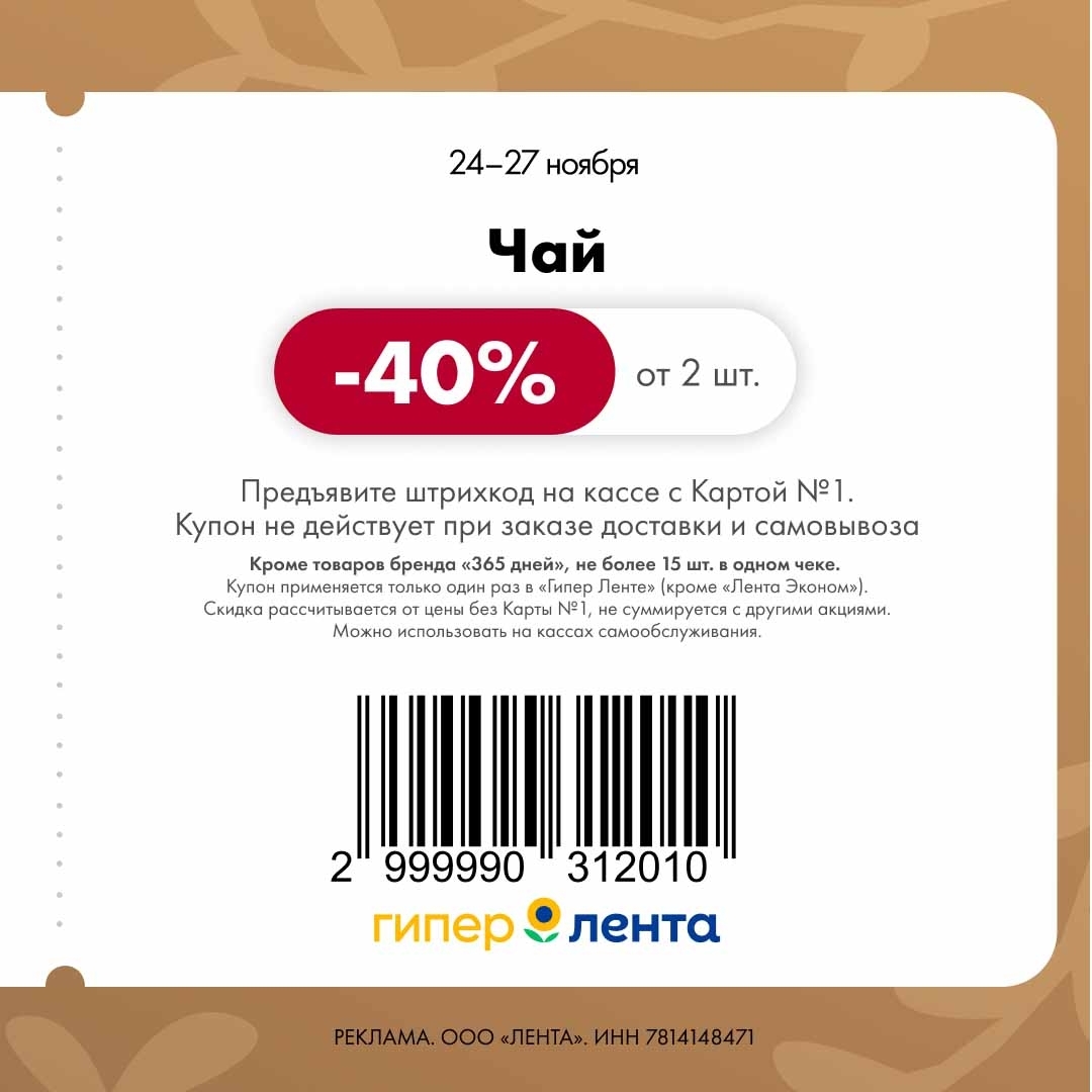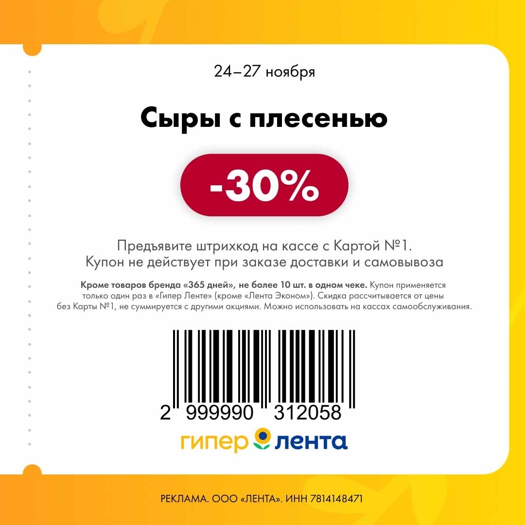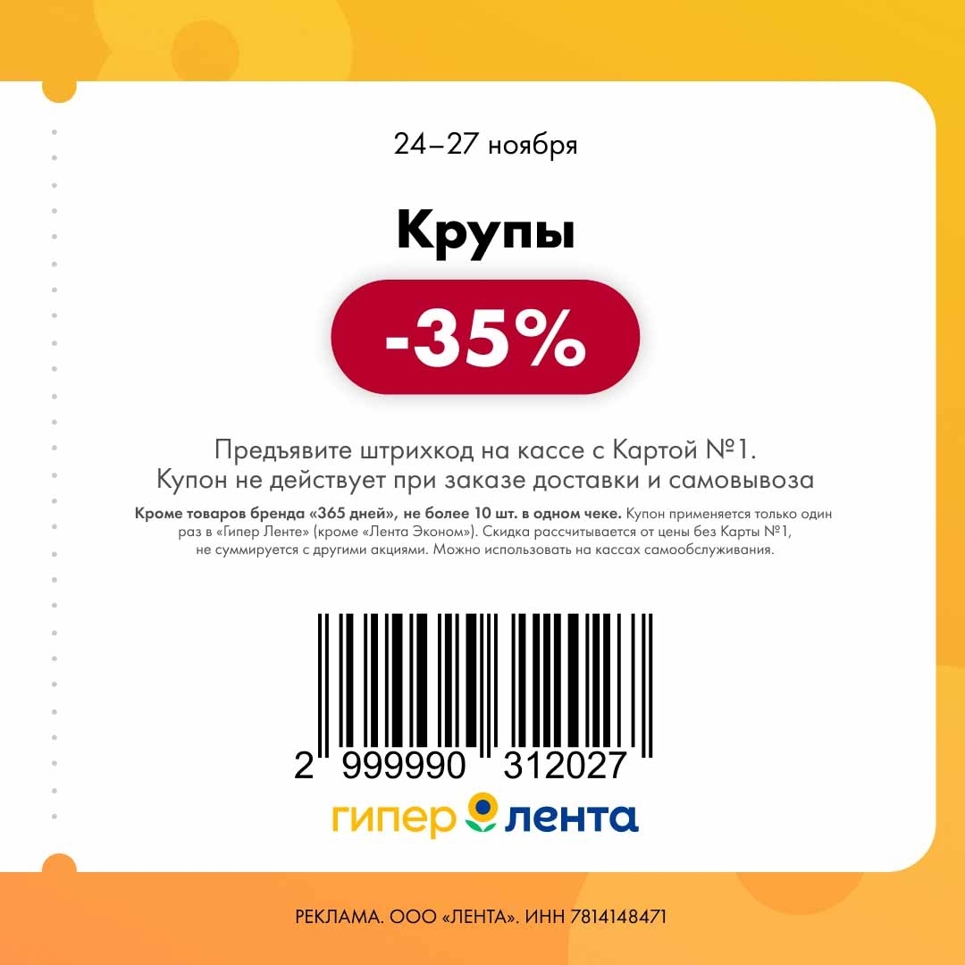 С 24 по 27 ноября 2025 года сеть магазинов «Гипер Лента» предлагает покупателям серию выгодных акций с использованием специальных купонов. Скидки достигают 45%, но действуют только при предъявлении на кассе штрих-кода и «Карты №1».