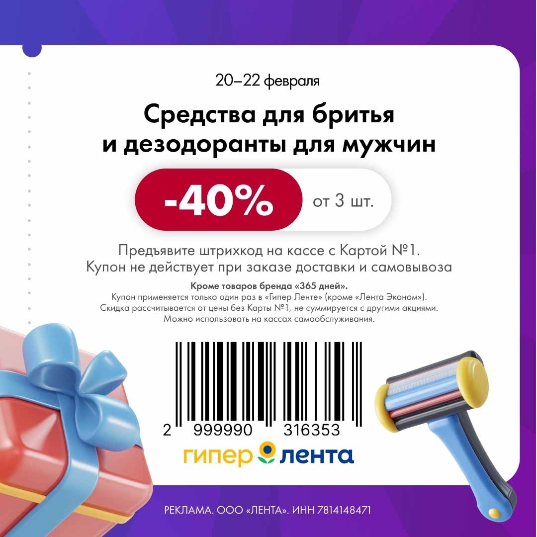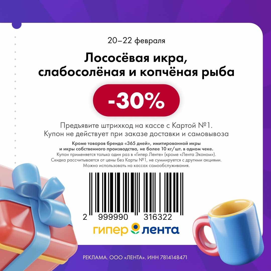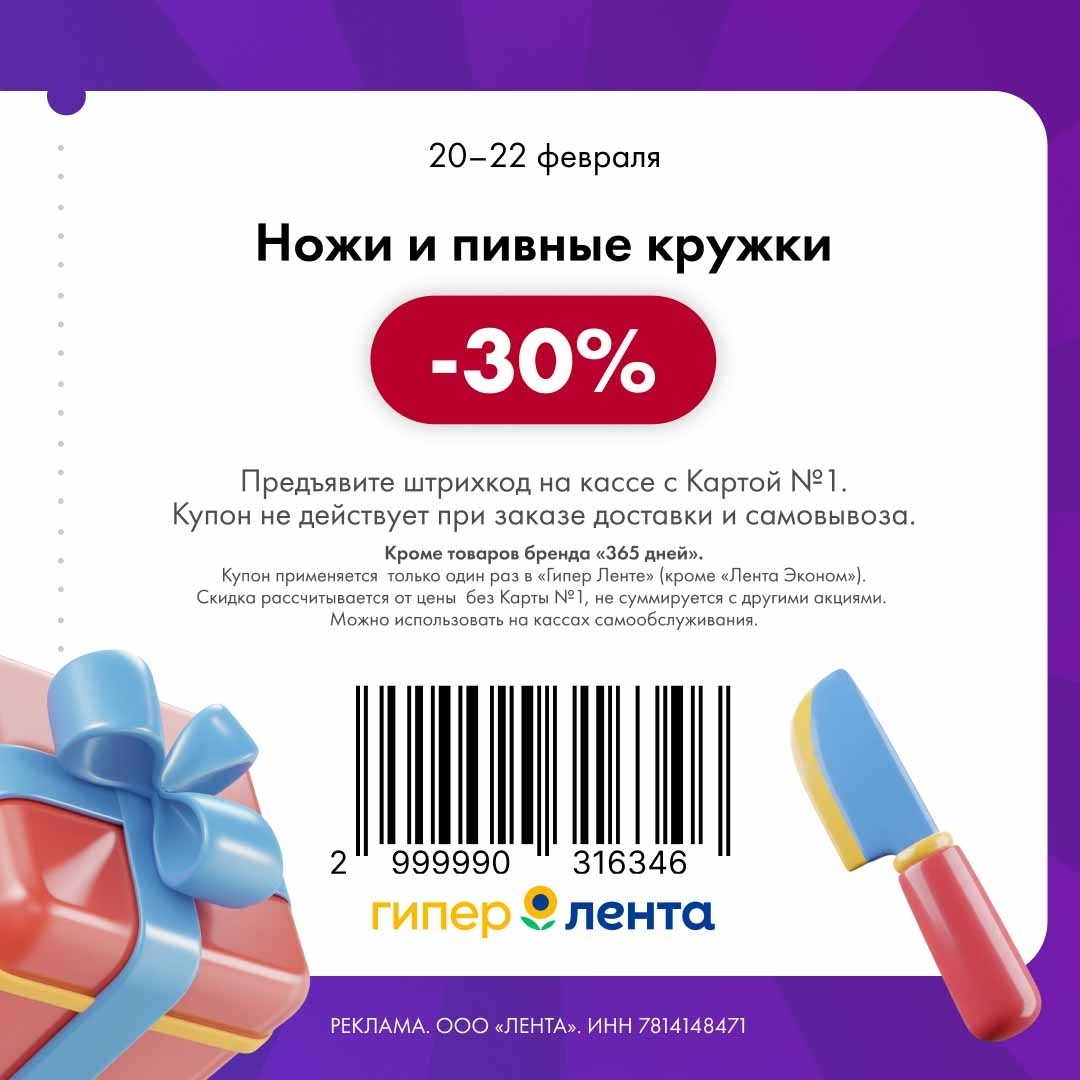 Акции в «Ленте»: скидки до 50% по купону с 20 февраля — 23 февраля 2026