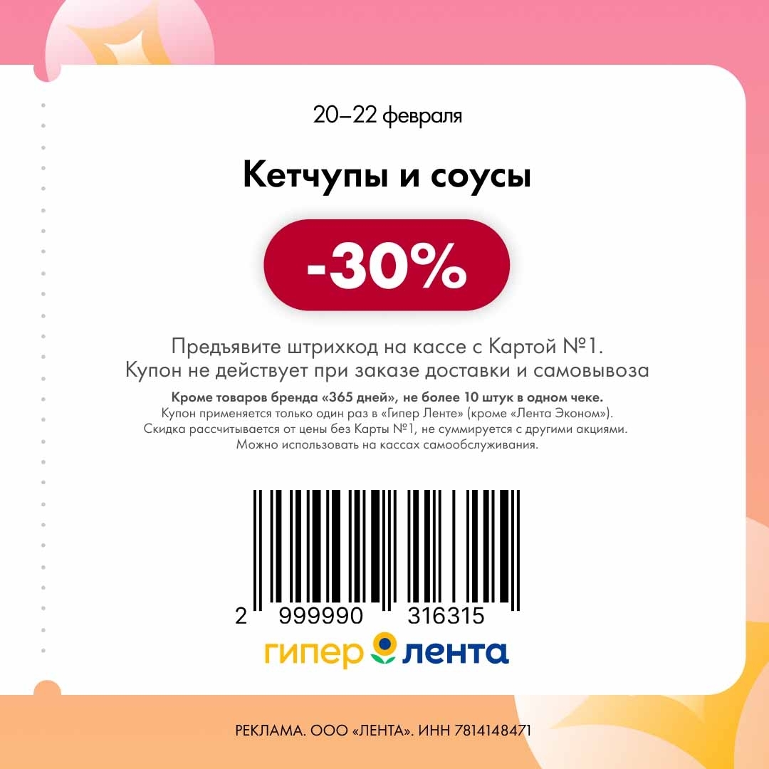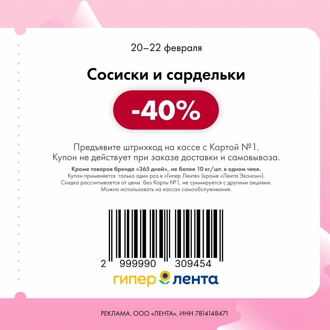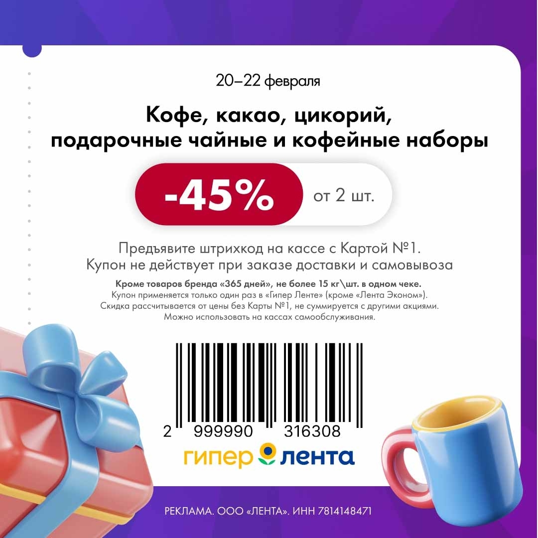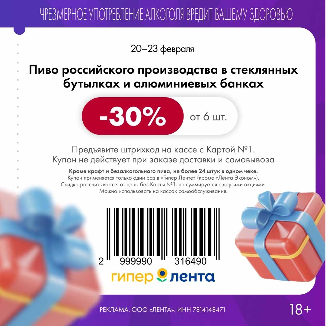 Акции в «Ленте»: скидки до 50% по купону с 20 февраля — 23 февраля 2026