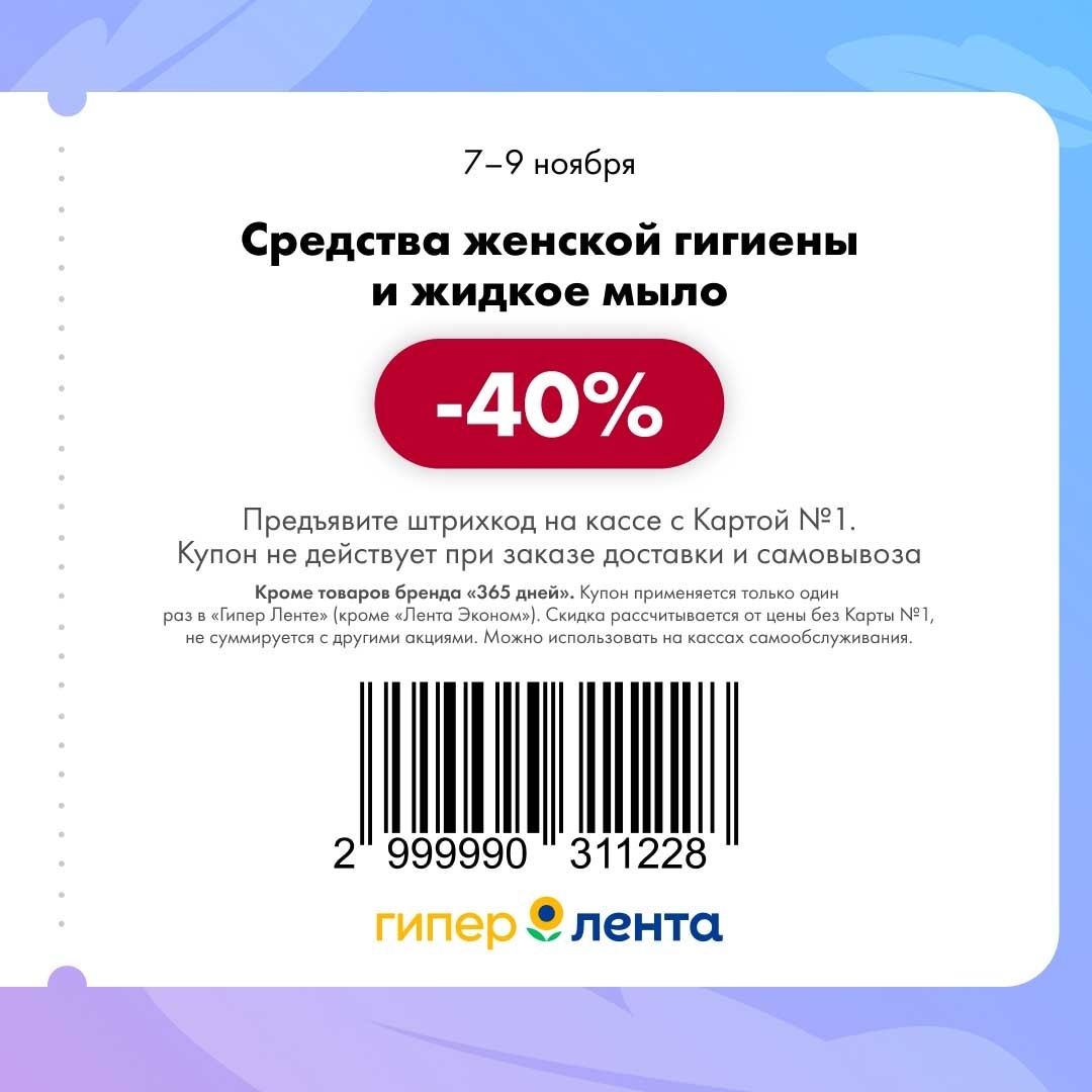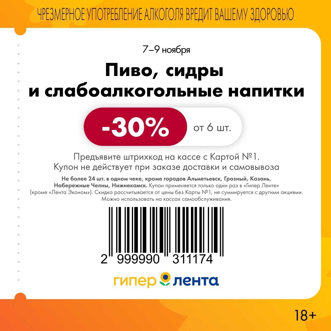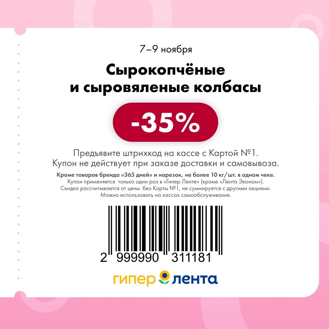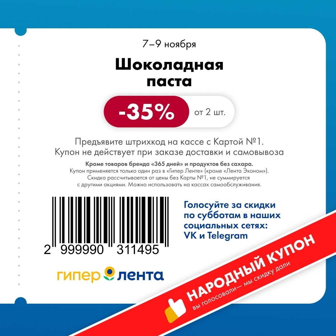 С 7 по 9 ноября 2025 года сеть магазинов «Гипер Лента» предлагает покупателям серию выгодных акций с использованием специальных купонов. Скидки достигают 55%, но действуют только при предъявлении на кассе штрих-кода и «Карты №1».
