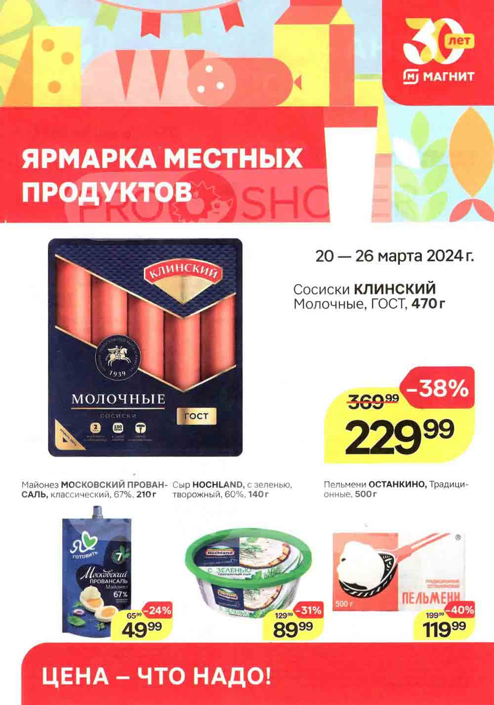 Смотрите еженедельный, новый каталог Магнит и не переплачивайте. Сегодня вас ждут ряд интересных предложений, привлекательных цен, акций и скидок. На страницах каталога Магнит вы найдете все свои любимые товары, которые сейчас предлагаются в супермаркете. Количество товара ограничено и действительно при наличии. Предложение «Цена по карте» действует при предъявлении на кассе "карты лояльности", до оплаты. До-акционные цены и размер скидки в каталоге указаны средние по сети. Цены по акции Магнит действуют в городах: Москва, Балашиха, Химки, Подольск, Королев, Мытищи, Люберцы, Электросталь, Коломна, Одинцово, Железнодорожный, Серпухов, Орехово-Зуево, Красногорск, Щелково, Сергиев Посад, Пушкино, Жуковский, Ногинск, Раменское и многих других населенных пунктах Московского региона.