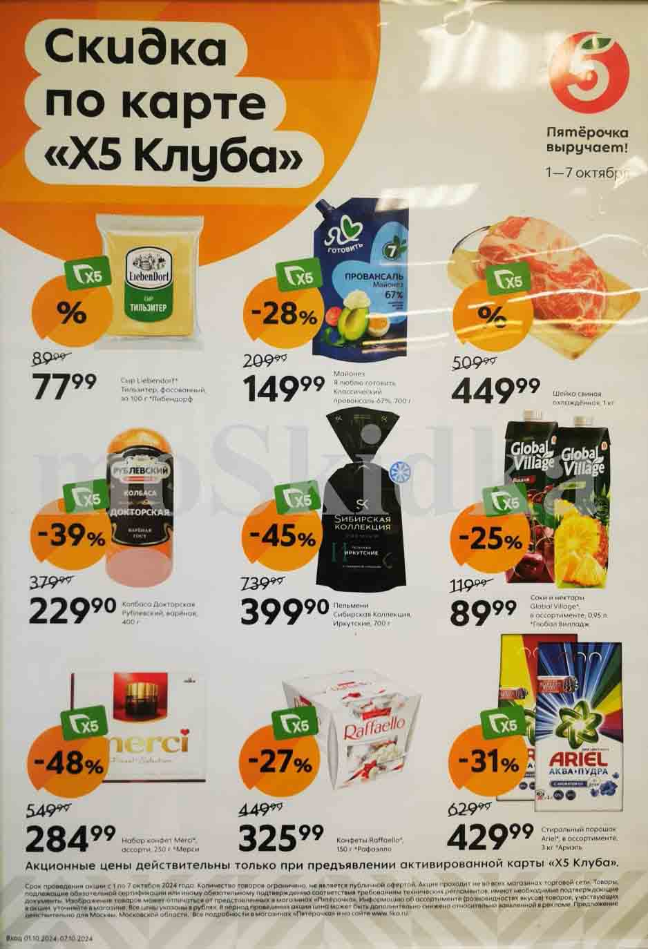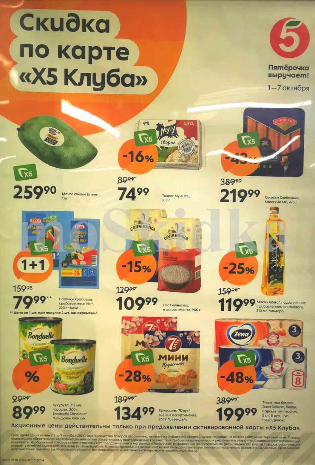 Каталог акций «Пятерочка» — это не просто скидки, это возможность сэкономить, не потеряв при этом качества продуктов. Цены по акции Пятерочка действуют в городах: Москва, Балашиха, Химки, Подольск, Королев, Мытищи, Люберцы, Электросталь, Коломна, Одинцово, Железнодорожный, Серпухов, Орехово-Зуево, Красногорск, Щелково, Сергиев Посад, Пушкино, Жуковский, Ногинск, Раменское, Клин, Воскресенск, Домодедово и многих других населенных пунктах Московского региона. Изображение акционных товаров может отличаться от представленных на полках. В течение проведения промо цена из буклета может быть дополнительно снижена.