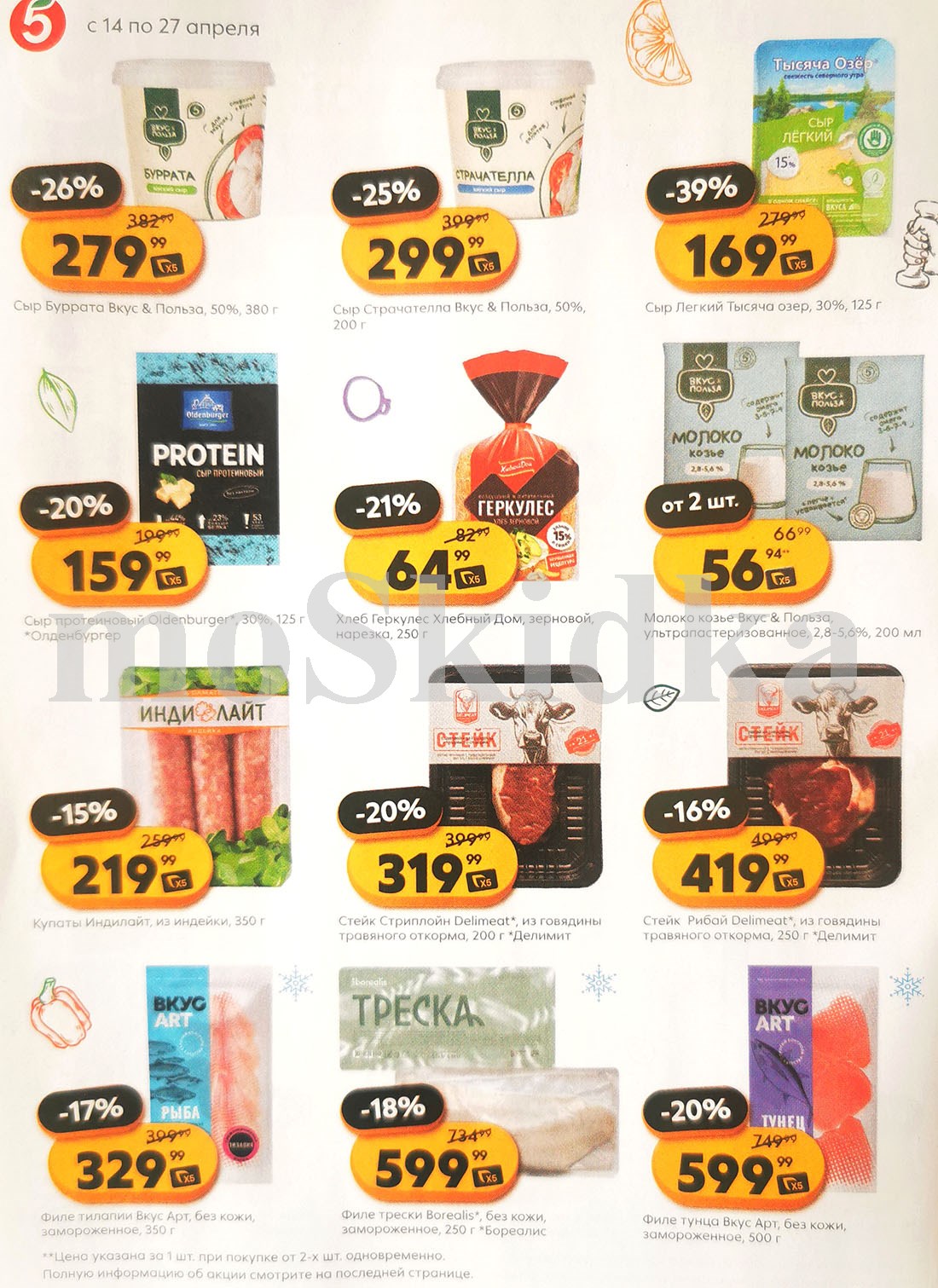 Каталог акций «Пятерочка» — это инструмент для умного шопинга. Мы поможем вам сэкономить бюджет без потери качества продуктов. Редакция моСкидка.ру изучила текущий буклет и выделила лучшие предложения недели на товары повседневного спроса, свежую продукцию и товары для дома. Планируйте визит в магазин заранее, чтобы успеть купить товары по специальным ценам.