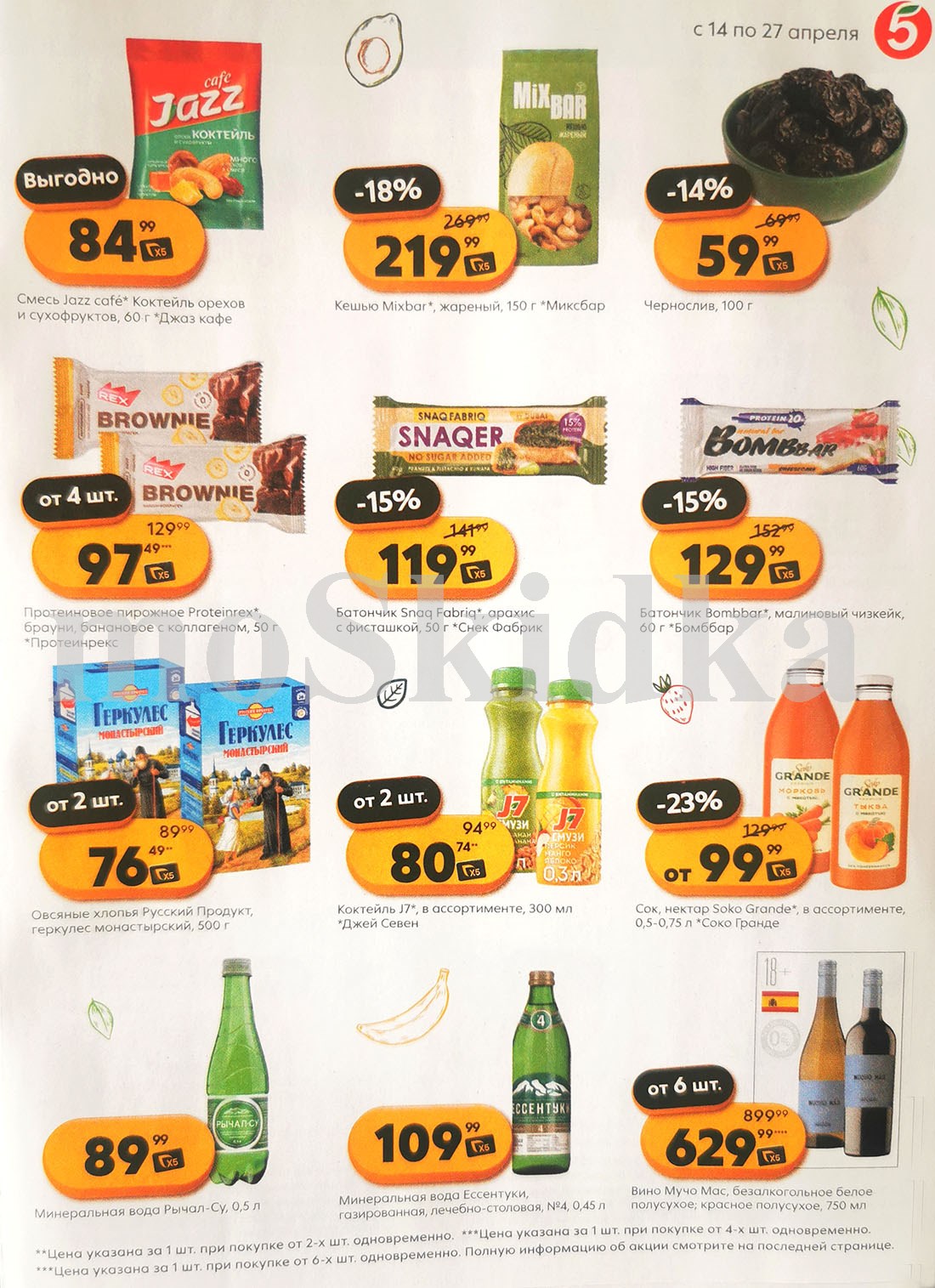 Наличие: Количество акционного товара в формате «магазин у дома» как правило ограничено поставкой — популярные позиции разбирают быстро, рекомендуем приходить в первой половине дня.