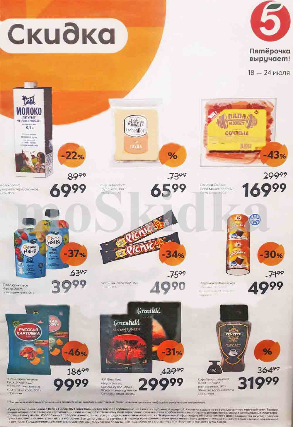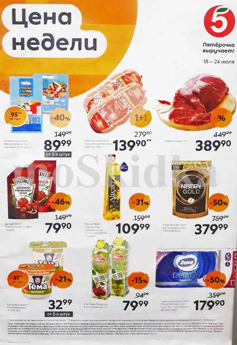 Каталог акций «Пятерочка» — это не просто скидки, это возможность сэкономить, не потеряв при этом качества продуктов. Цены по акции Пятерочка действуют в городах: Москва, Балашиха, Химки, Подольск, Королев, Мытищи, Люберцы, Электросталь, Коломна, Одинцово, Железнодорожный, Серпухов, Орехово-Зуево, Красногорск, Щелково, Сергиев Посад, Пушкино, Жуковский, Ногинск, Раменское, Клин, Воскресенск, Домодедово и многих других населенных пунктах Московского региона. Изображение акционных товаров может отличаться от представленных на полках. В течение проведения промо цена из буклета может быть дополнительно снижена.