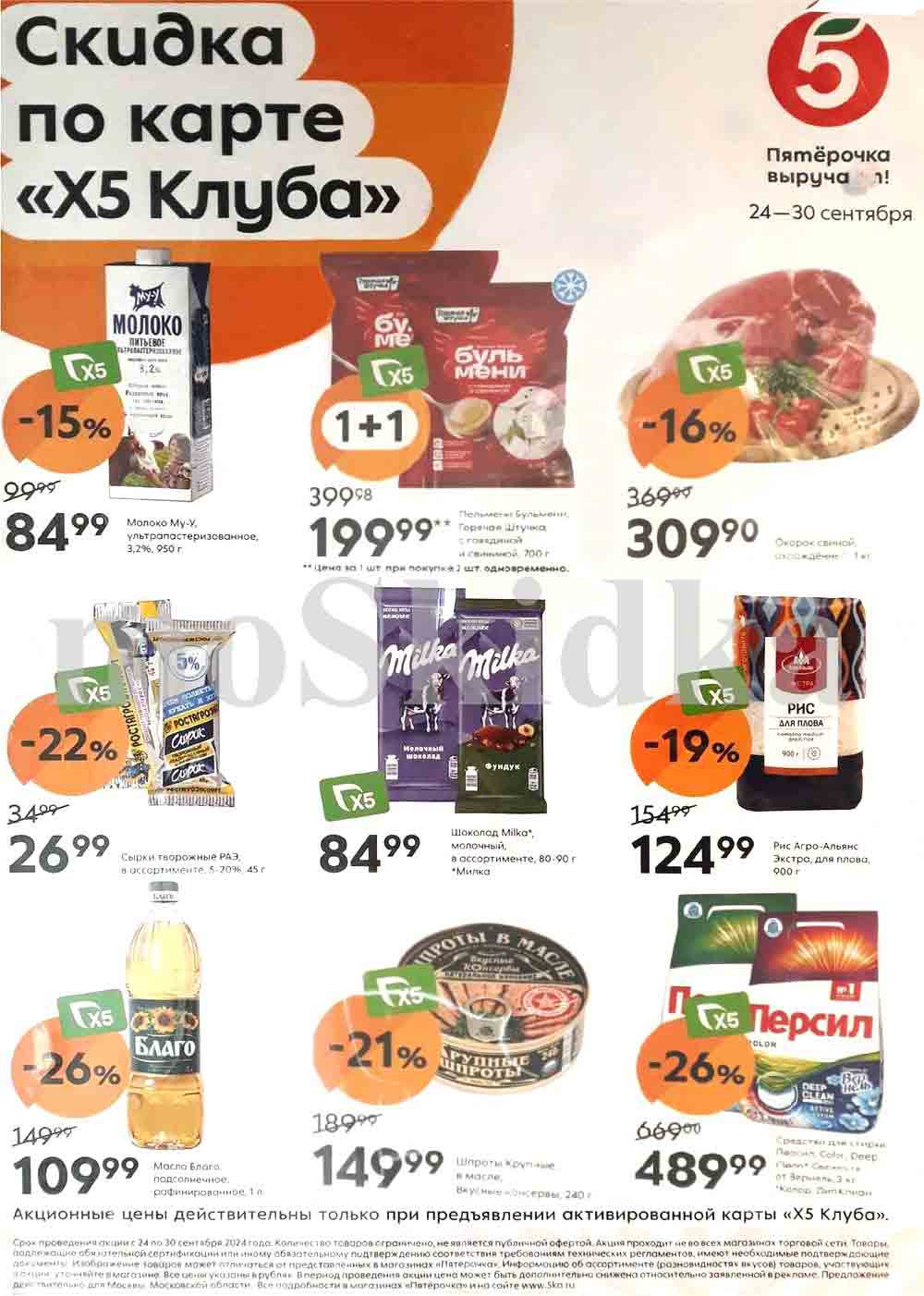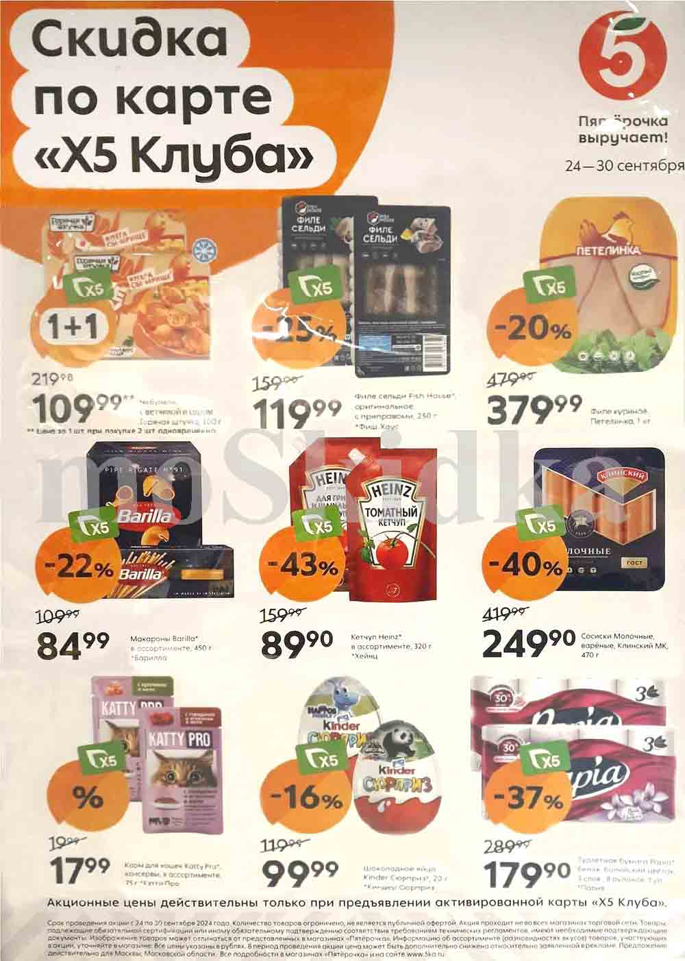 Каталог акций «Пятерочка» — это не просто скидки, это возможность сэкономить, не потеряв при этом качества продуктов. Цены по акции Пятерочка действуют в городах: Москва, Балашиха, Химки, Подольск, Королев, Мытищи, Люберцы, Электросталь, Коломна, Одинцово, Железнодорожный, Серпухов, Орехово-Зуево, Красногорск, Щелково, Сергиев Посад, Пушкино, Жуковский, Ногинск, Раменское, Клин, Воскресенск, Домодедово и многих других населенных пунктах Московского региона. Изображение акционных товаров может отличаться от представленных на полках. В течение проведения промо цена из буклета может быть дополнительно снижена.