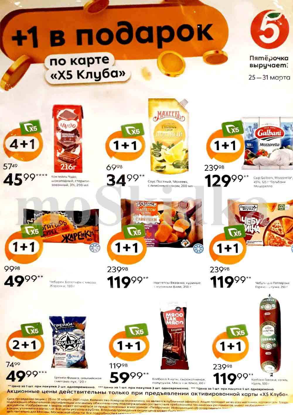 Каталог акций «Пятерочка» — это не просто скидки, это возможность сэкономить, не потеряв при этом качества продуктов. Цены по акции Пятерочка действуют в городах: Москва, Балашиха, Химки, Подольск, Королев, Мытищи, Люберцы, Электросталь, Коломна, Одинцово, Железнодорожный, Серпухов, Орехово-Зуево, Красногорск, Щелково, Сергиев Посад, Пушкино, Жуковский, Ногинск, Раменское, Клин, Воскресенск, Домодедово и многих других населенных пунктах Московского региона. Изображение акционных товаров может отличаться от представленных на полках. В течение проведения промо цена из буклета может быть дополнительно снижена.