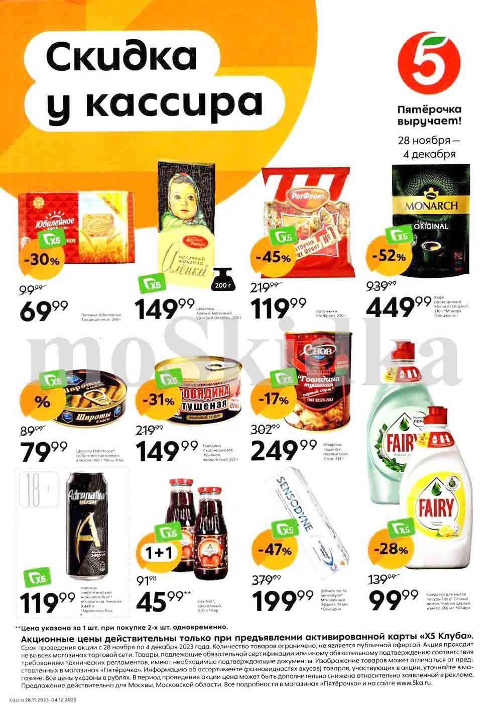 Подробную информацию об правилах, адресах и скидках узнавайте в магазинах или по тел. 8-800-555-55-05 и на сайте: 5ka.ru