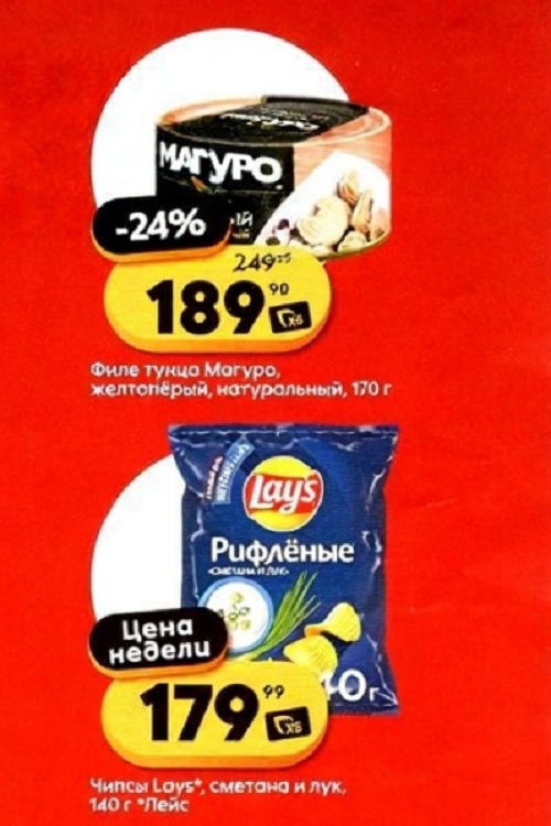 Каталог акций «Пятерочка» — это не просто скидки, это возможность сэкономить, не потеряв при этом качества продуктов. Цены по акции Пятерочка действуют в городах: Москва, Балашиха, Химки, Подольск, Королев, Мытищи, Люберцы, Электросталь, Коломна, Одинцово, Железнодорожный, Серпухов, Орехово-Зуево, Красногорск, Щелково, Сергиев Посад, Пушкино, Жуковский, Ногинск, Раменское, Клин, Воскресенск, Домодедово и многих других населенных пунктах Московского региона. Изображение акционных товаров может отличаться от представленных на полках. В течение проведения промо цена из буклета может быть дополнительно снижена.