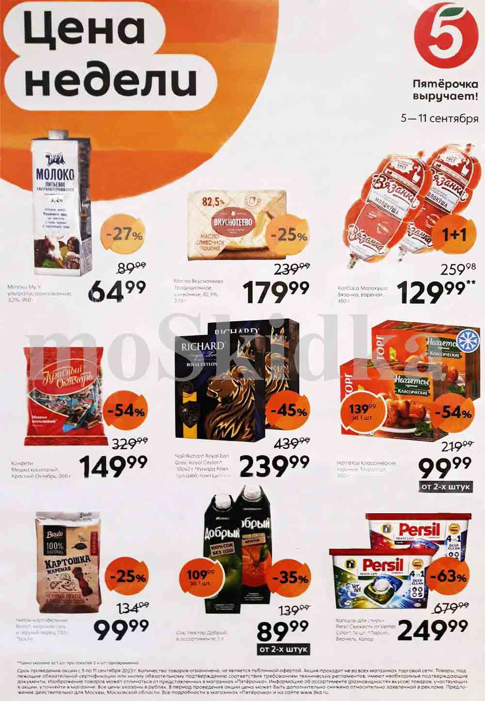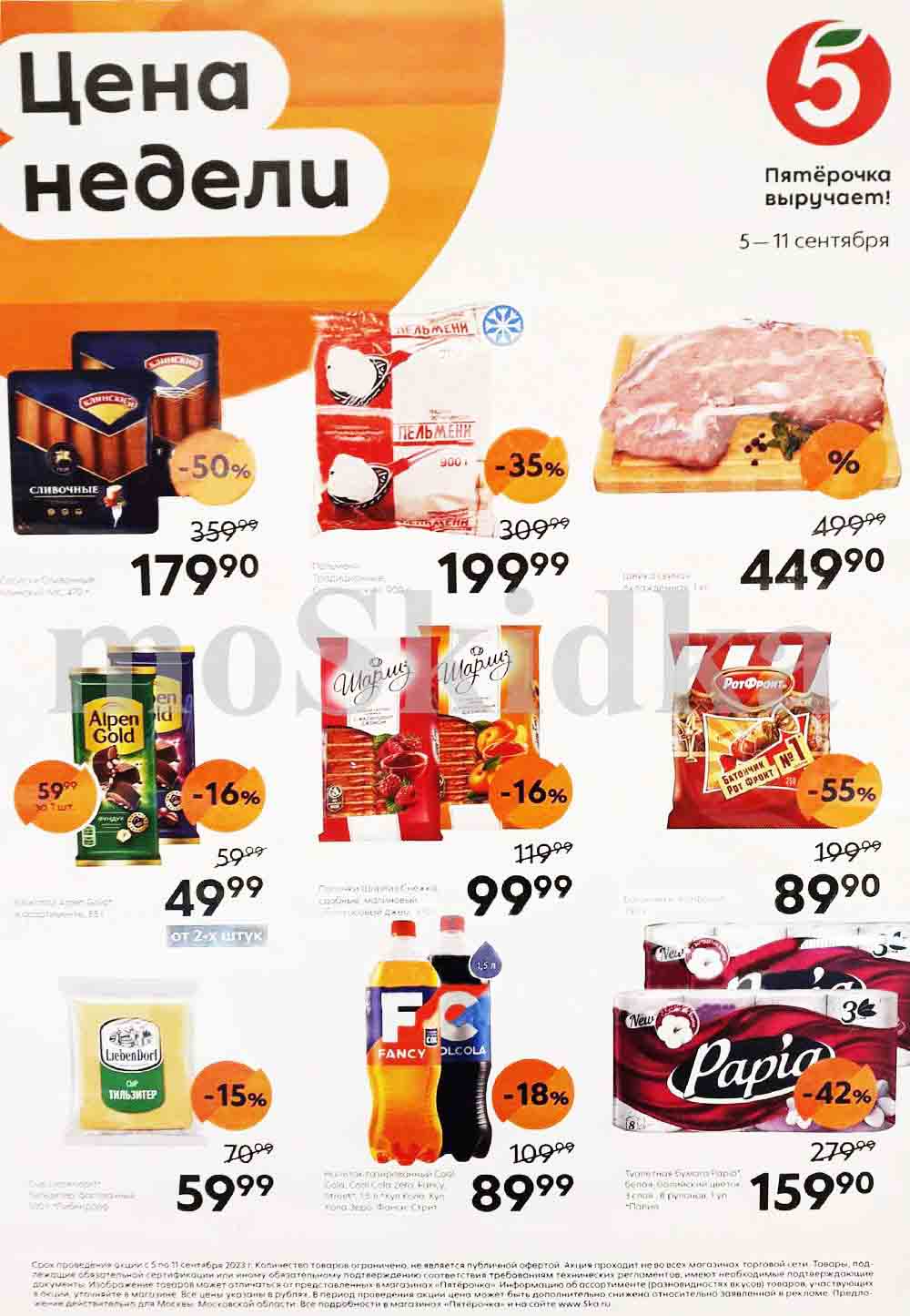 Каталог акций «Пятерочка» — это не просто скидки, это возможность сэкономить, не потеряв при этом качества продуктов. Цены по акции Пятерочка действуют в городах: Москва, Балашиха, Химки, Подольск, Королев, Мытищи, Люберцы, Электросталь, Коломна, Одинцово, Железнодорожный, Серпухов, Орехово-Зуево, Красногорск, Щелково, Сергиев Посад, Пушкино, Жуковский, Ногинск, Раменское, Клин, Воскресенск, Домодедово и многих других населенных пунктах Московского региона. Изображение акционных товаров может отличаться от представленных на полках. В течение проведения промо цена из буклета может быть дополнительно снижена.