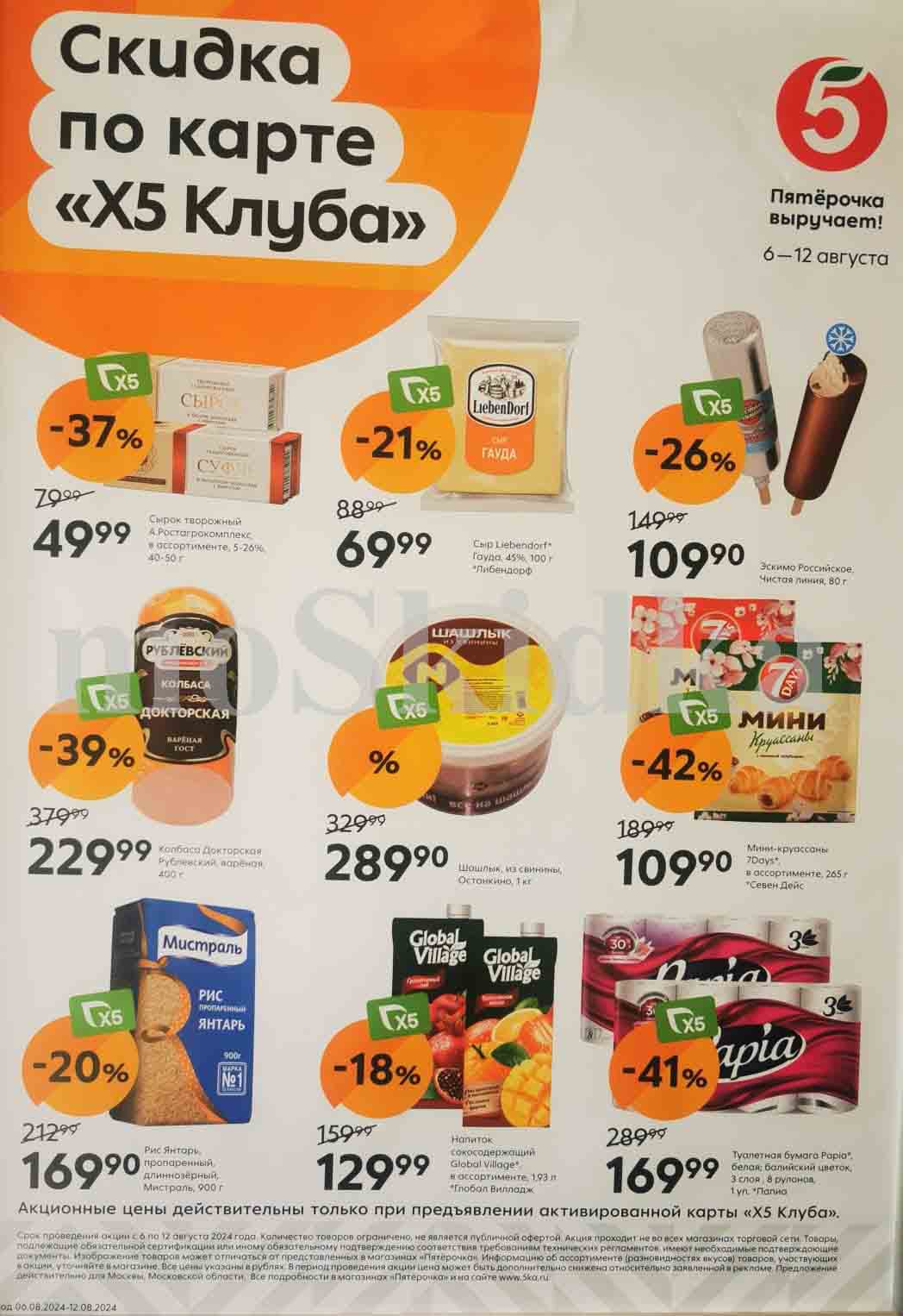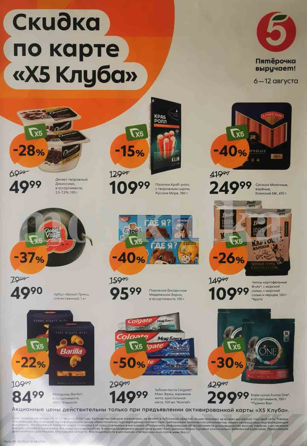 Каталог акций «Пятерочка» — это не просто скидки, это возможность сэкономить, не потеряв при этом качества продуктов. Цены по акции Пятерочка действуют в городах: Москва, Балашиха, Химки, Подольск, Королев, Мытищи, Люберцы, Электросталь, Коломна, Одинцово, Железнодорожный, Серпухов, Орехово-Зуево, Красногорск, Щелково, Сергиев Посад, Пушкино, Жуковский, Ногинск, Раменское, Клин, Воскресенск, Домодедово и многих других населенных пунктах Московского региона. Изображение акционных товаров может отличаться от представленных на полках. В течение проведения промо цена из буклета может быть дополнительно снижена.