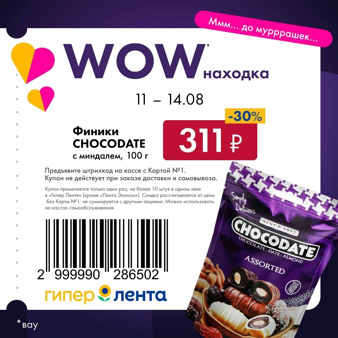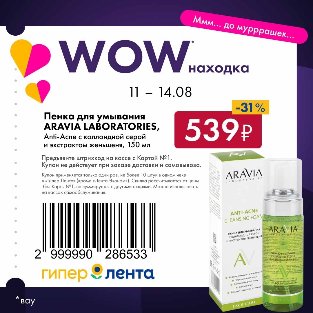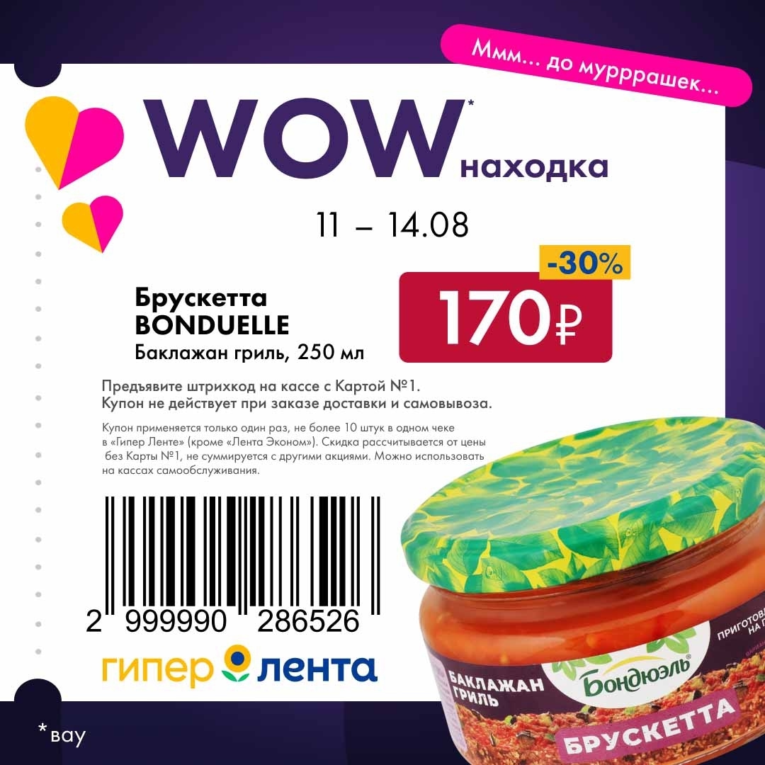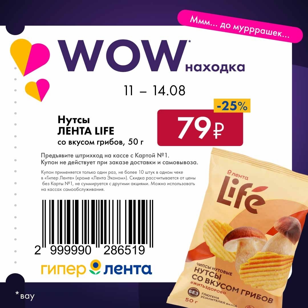 С 11 августа — 14 августа 2025 года сеть магазинов «Гипер Лента» предлагает покупателям серию выгодных акций с использованием специальных купонов. Предъявите штрихкод на кассе и получите привлекательную цену на товары-участники.