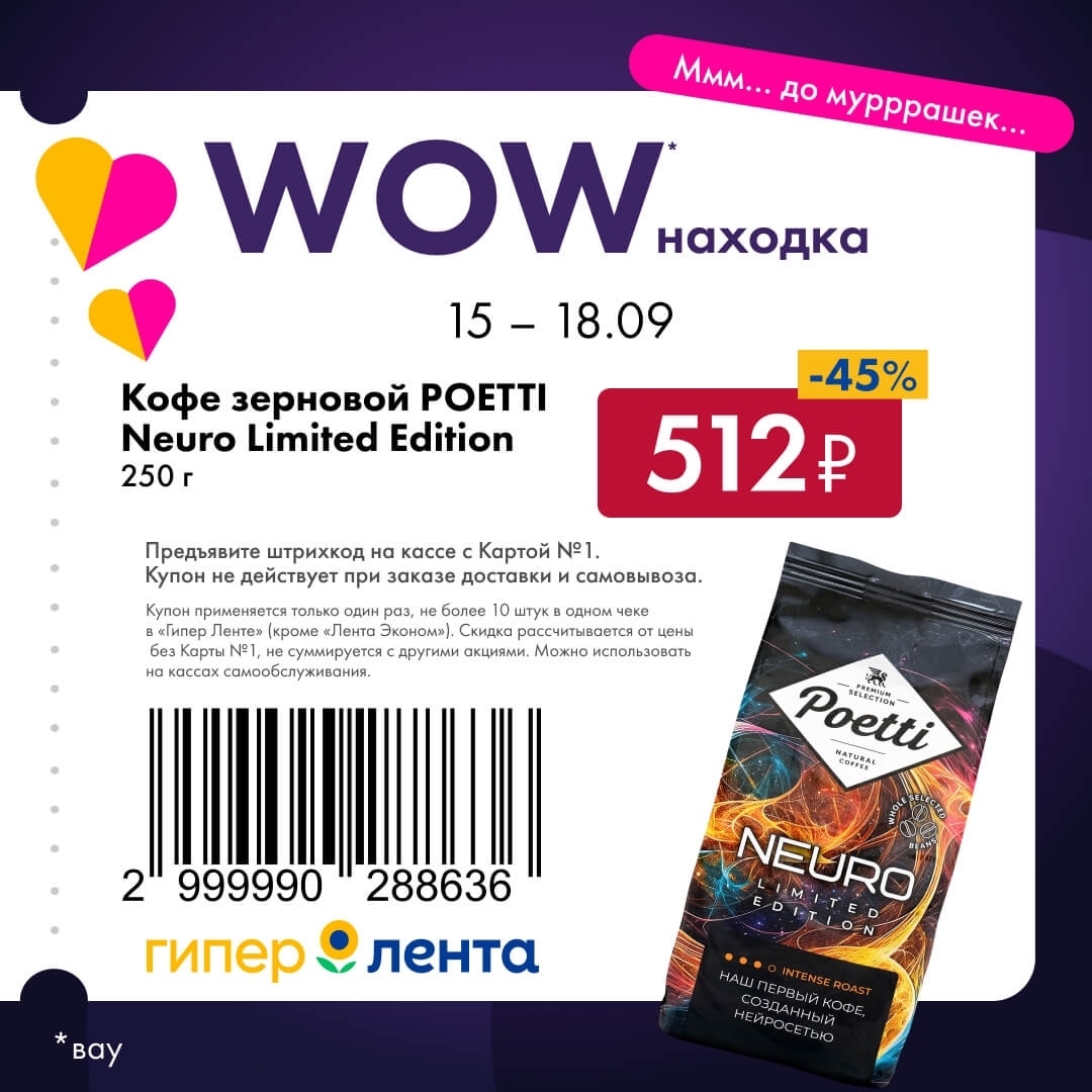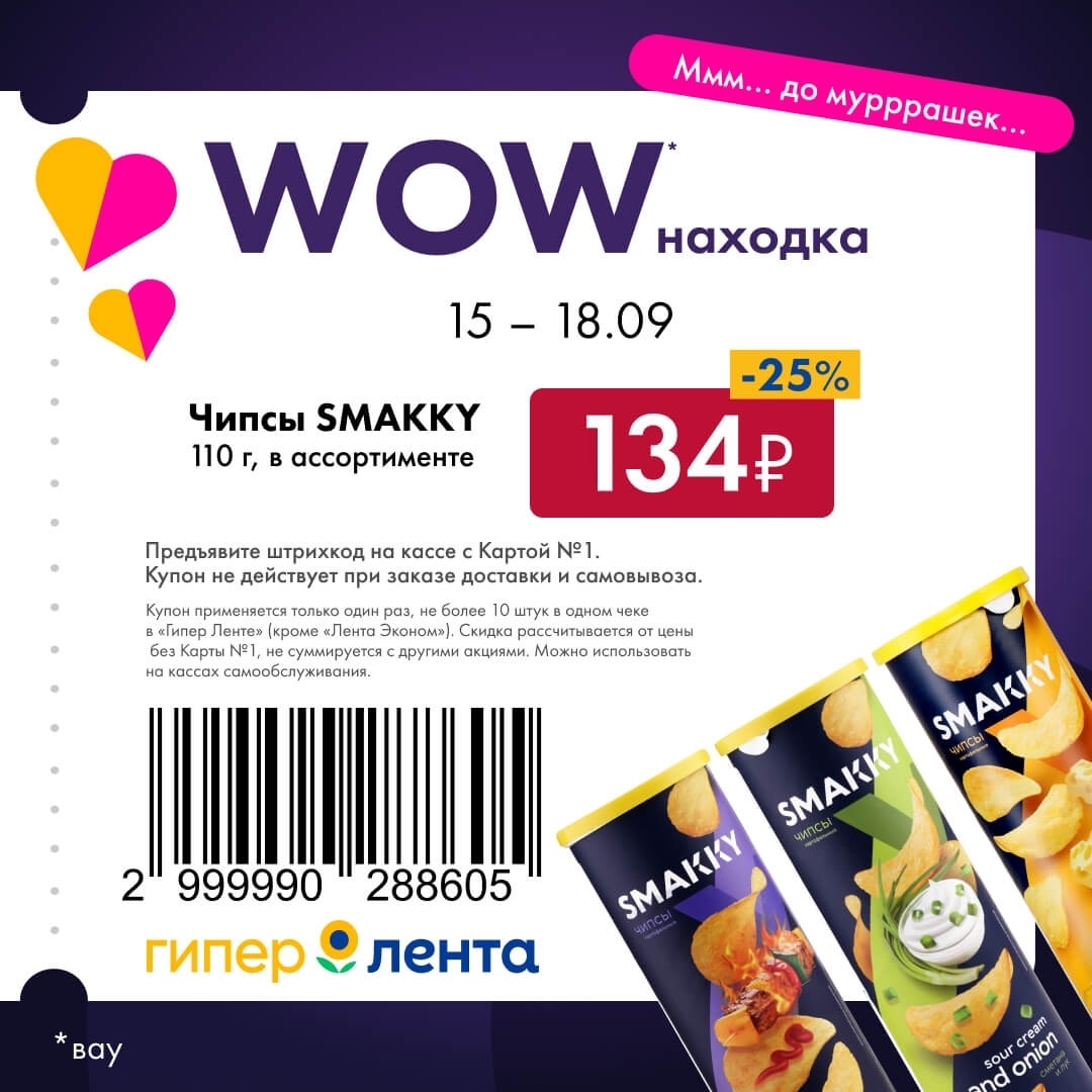 С 15 сентября — 18 сентября 2025 года сеть магазинов «Гипер Лента» предлагает покупателям серию выгодных акций с использованием специальных купонов. Предъявите штрихкод на кассе и получите привлекательную цену на товары-участники.