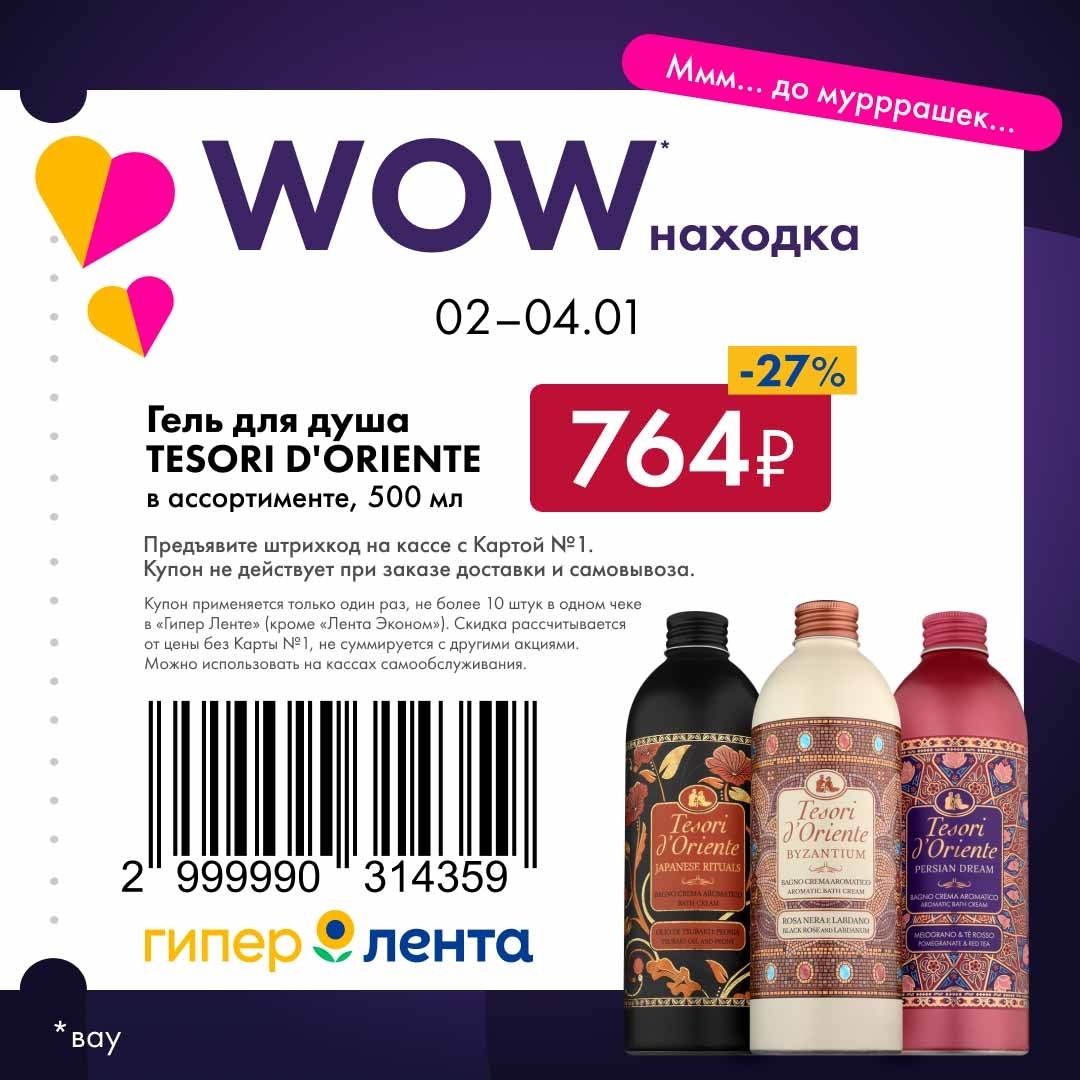 С 2 января — 4 января 2026 года сеть магазинов «Гипер Лента» предлагает покупателям серию выгодных акций с использованием специальных купонов. Предъявите штрихкод на кассе и получите привлекательную цену на товары-участники.