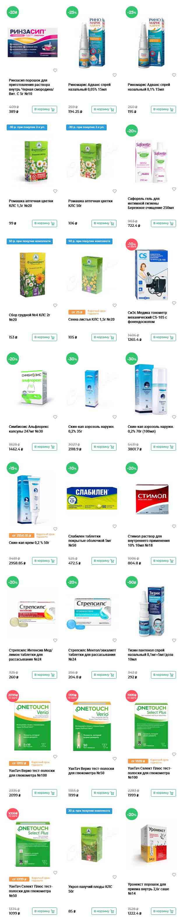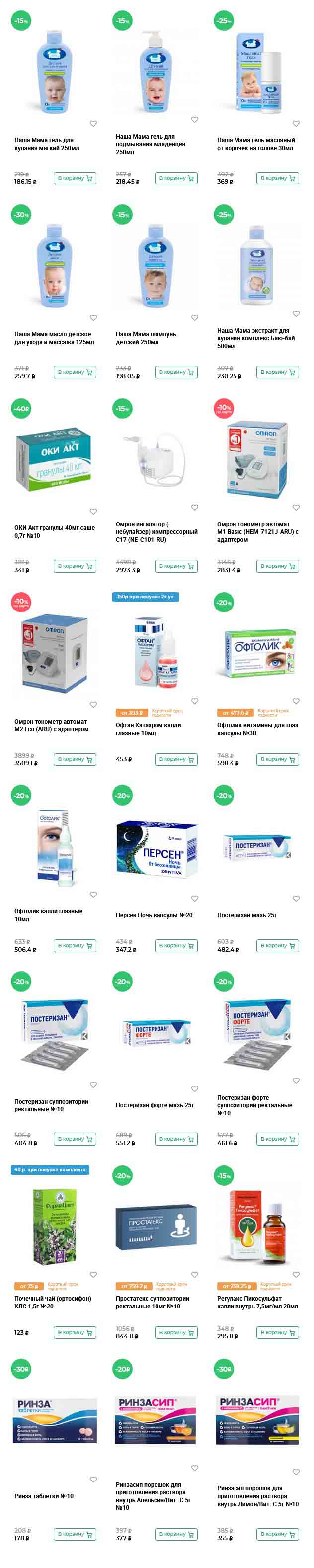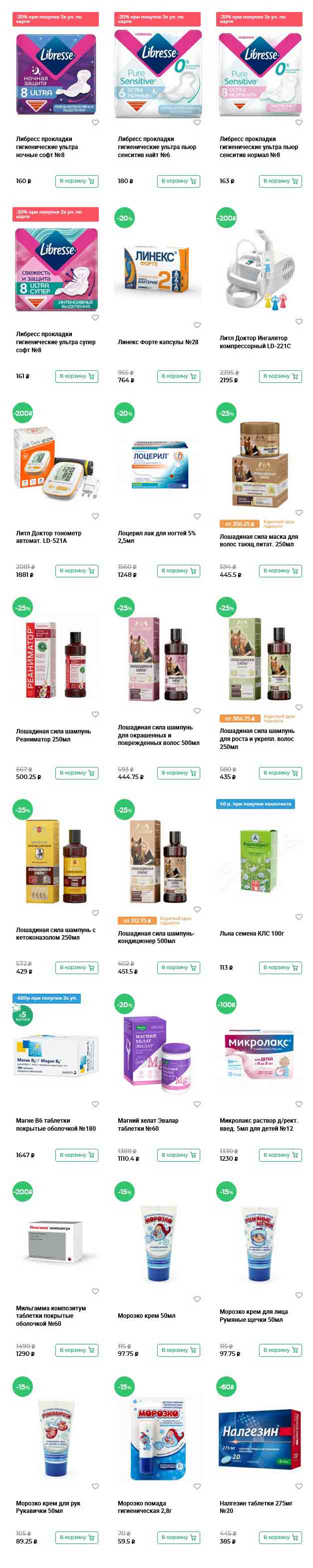 В акционном буклете предложены выгодные цены на различные товары, такие как А-Церумен Плюс спрей 40мл — 690.4 руб., Асепта бальзам для десен адгезивный 10г — 244 руб., Баралгин М таблетки No20 — 230 руб. и многое другое.