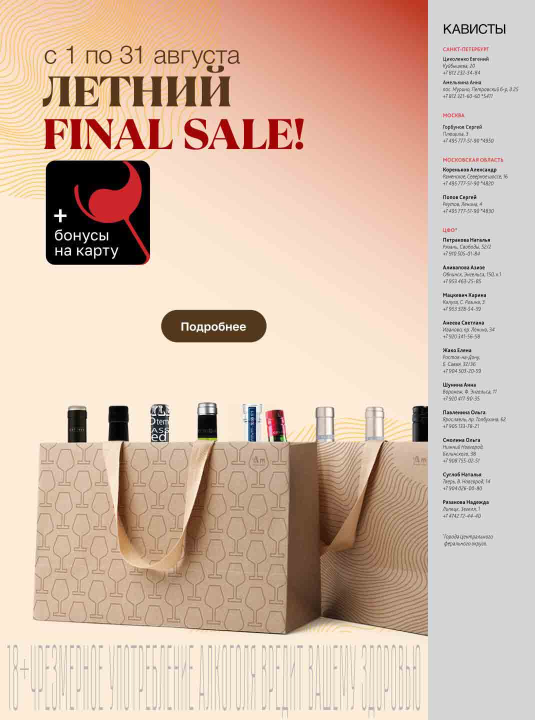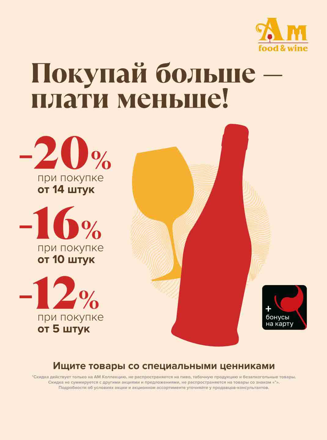 Подробную информацию об правилах, наличии товаров, адресах и скидках узнавайте в магазинахили по тел.: 8 (495) 108-68-68и на сайте: amwine.ru