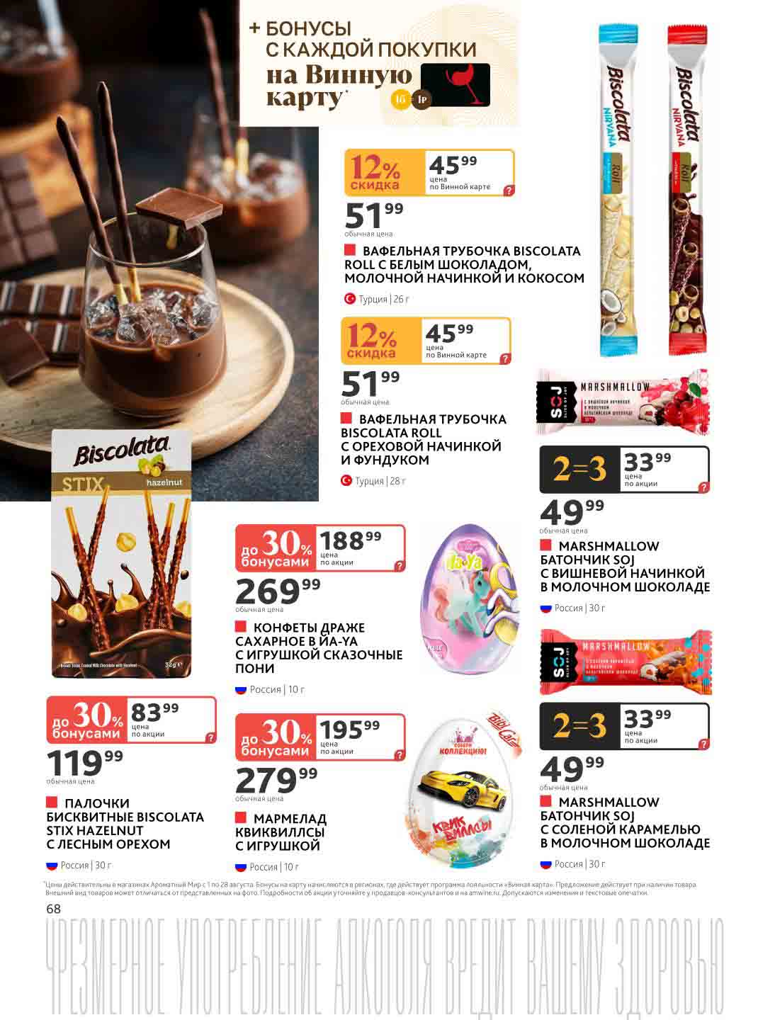 На страницах каталога Ароматный Мир вы найдете все свои любимые товары, которые сейчас предлагаются в супермаркете. Не пропустите последние специальные предложения и сэкономьте на покупках. Цены по акции Ароматный мир действуют в городах: Москва, Зеленоград, Долгопрудный, Люберцы, Химки и многих других населенных пунктах Московского региона.