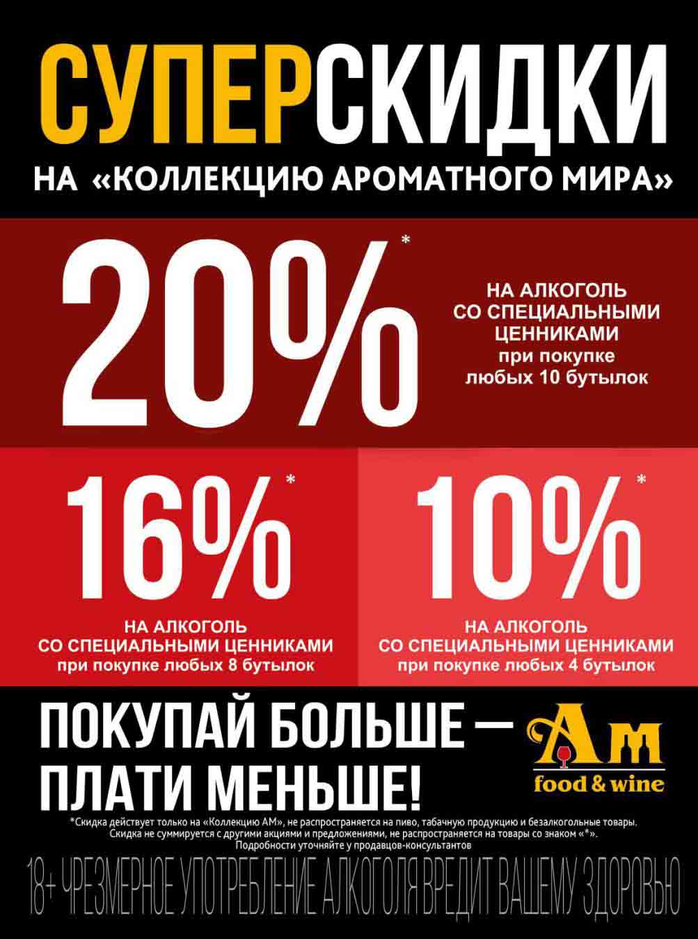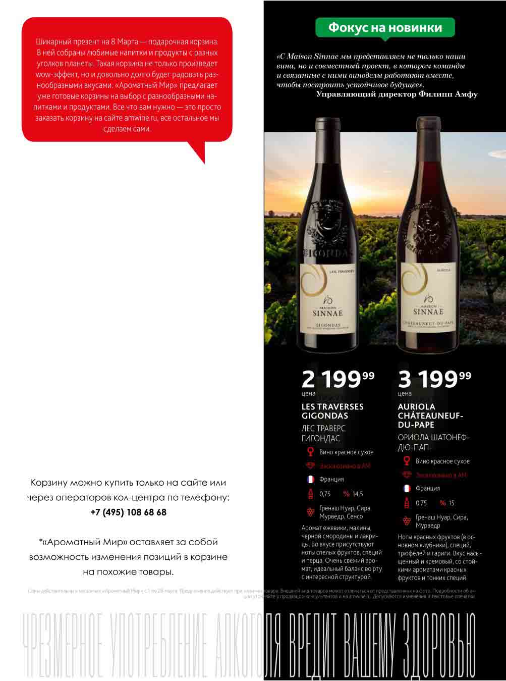 Подробную информацию об правилах, наличии товаров, адресах и скидках узнавайте в магазинахили по тел.: 8 (495) 108-68-68и на сайте: amwine.ru