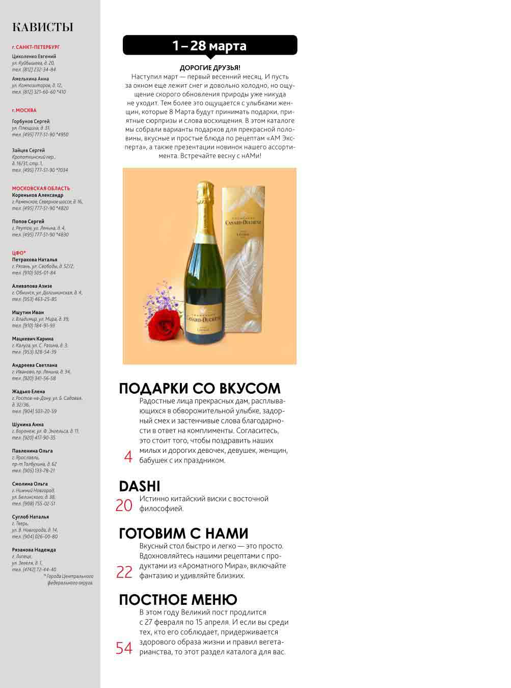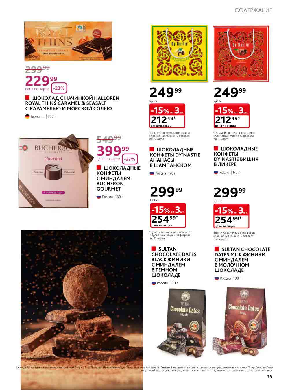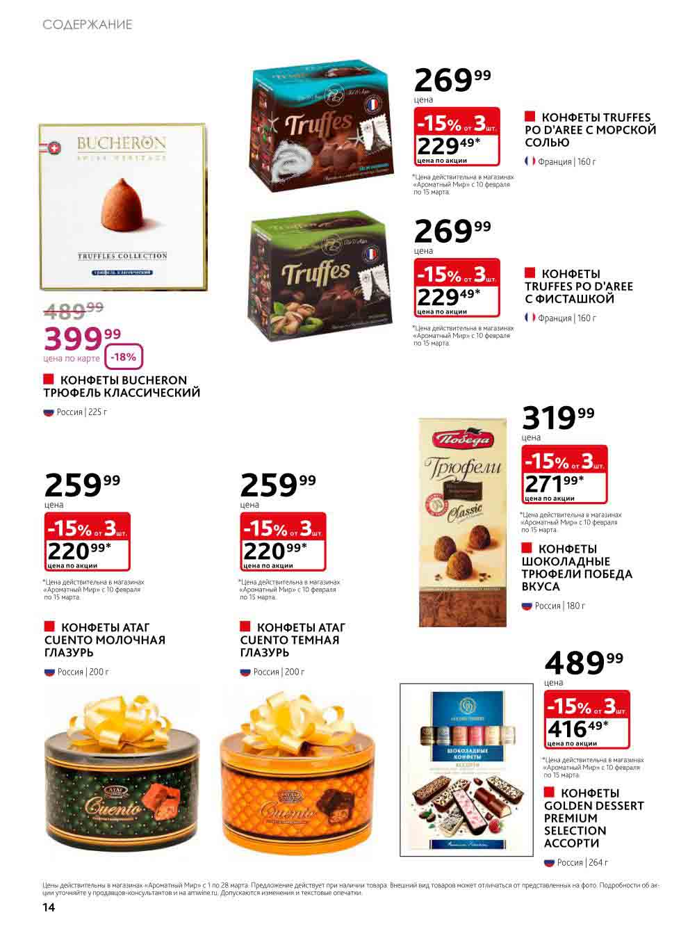 На страницах каталога Ароматный Мир вы найдете все свои любимые товары, которые сейчас предлагаются в супермаркете. Не пропустите последние специальные предложения и сэкономьте на покупках. Цены по акции Ароматный мир действуют в городах: Москва, Зеленоград, Долгопрудный, Люберцы, Химки и многих других населенных пунктах Московского региона.