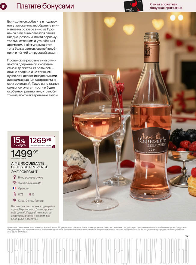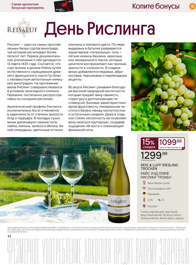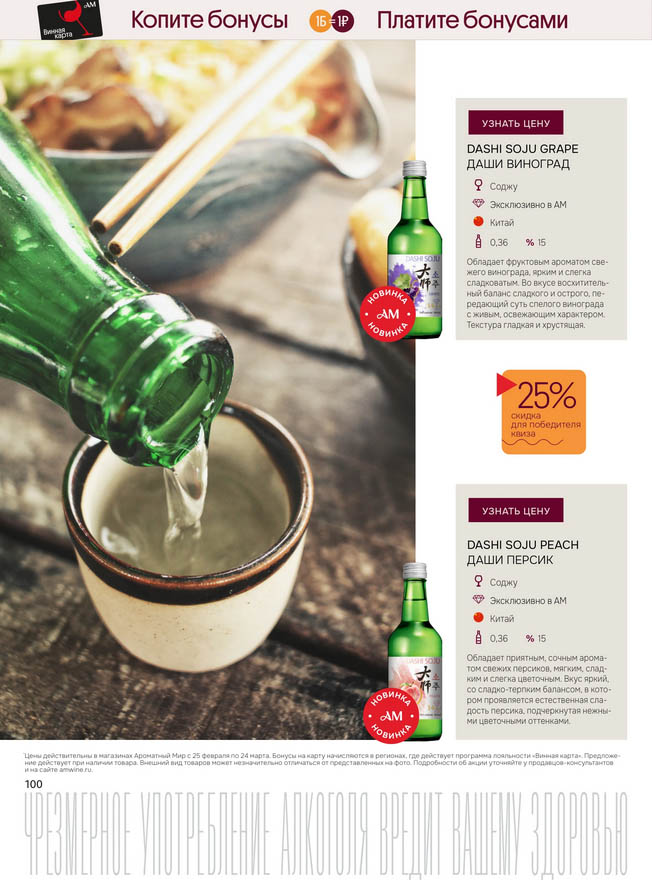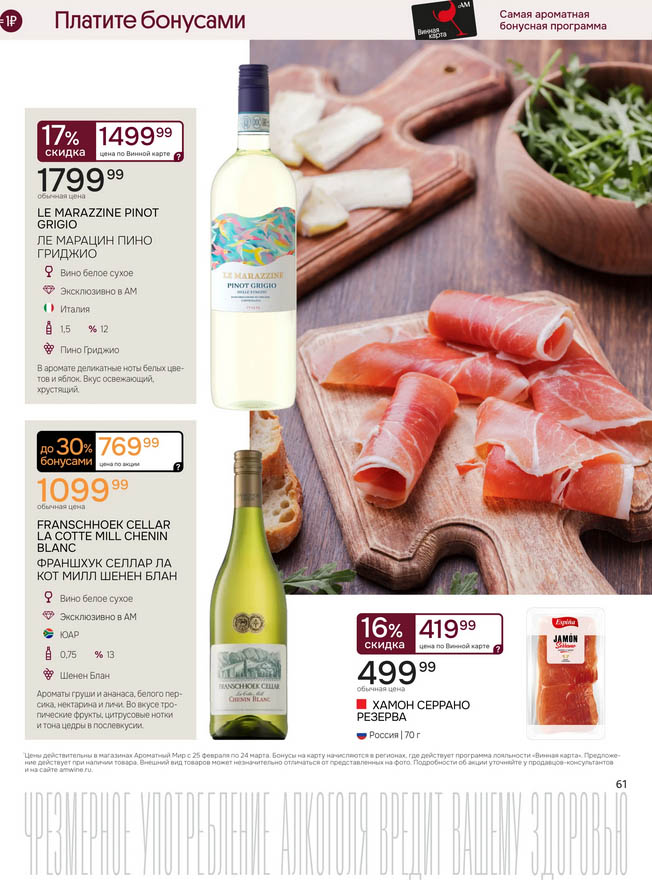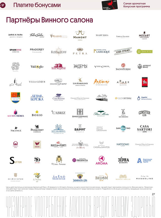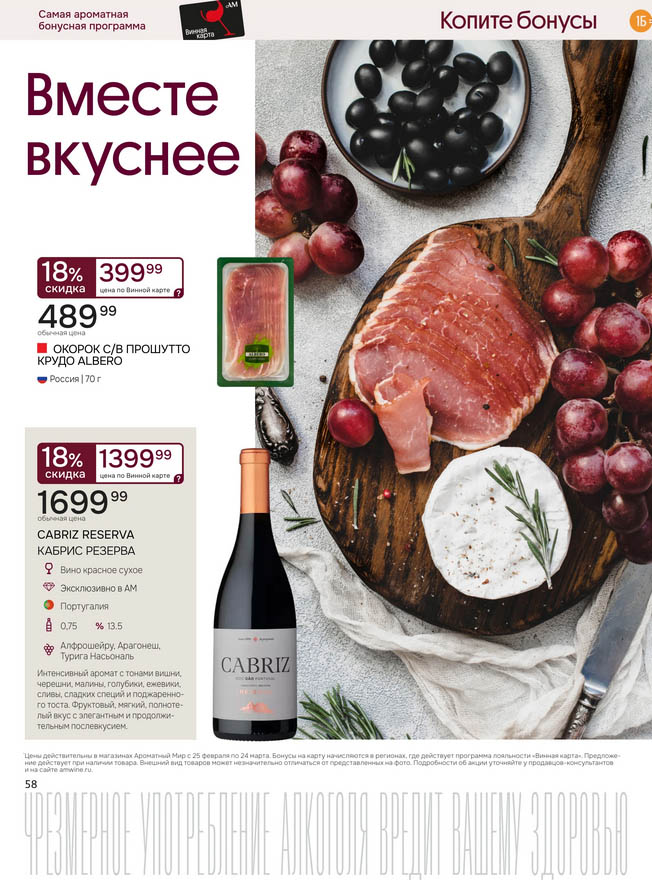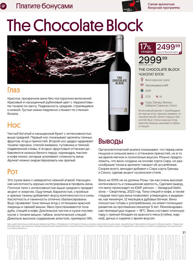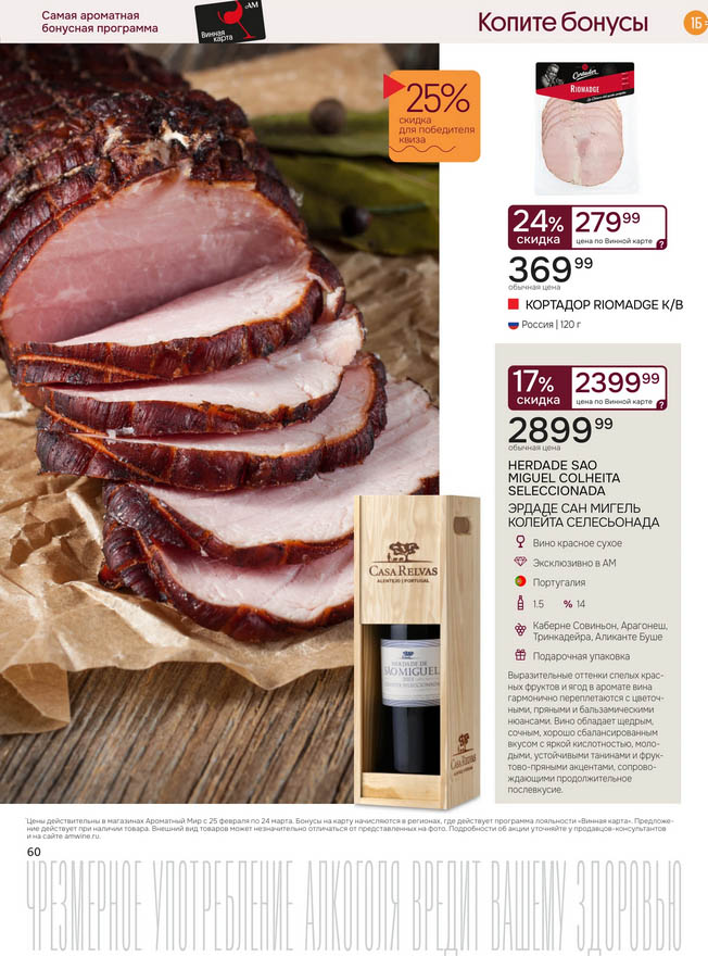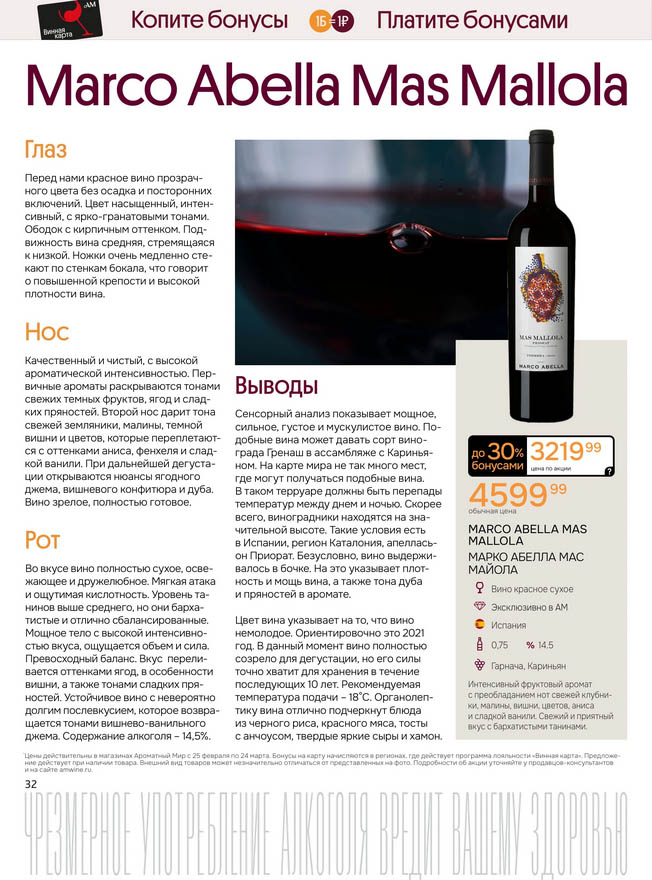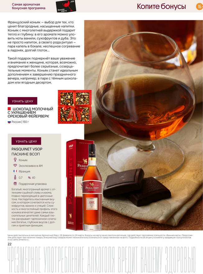 Подробную информацию об правилах, наличии товаров, адресах и скидках узнавайте в магазинахили по тел.: 8 (495) 108-68-68и на сайте: amwine.ru