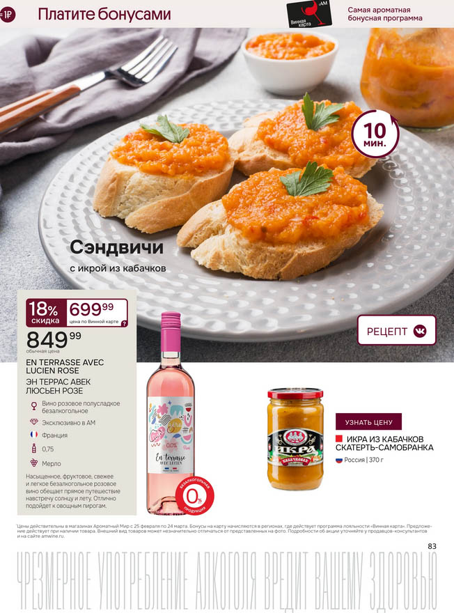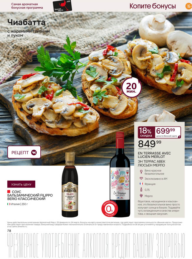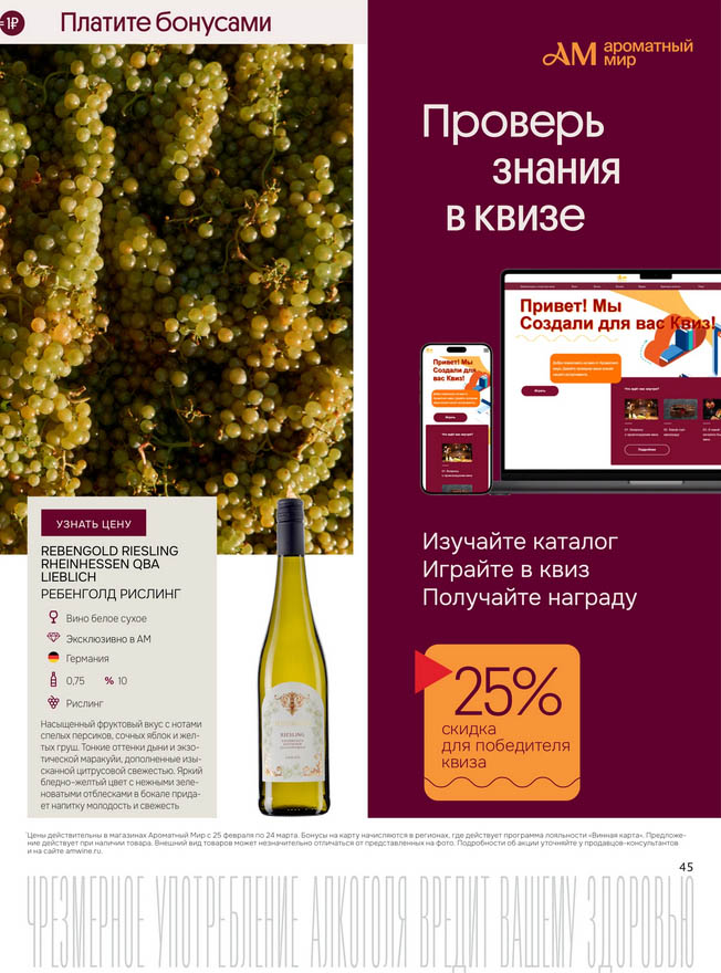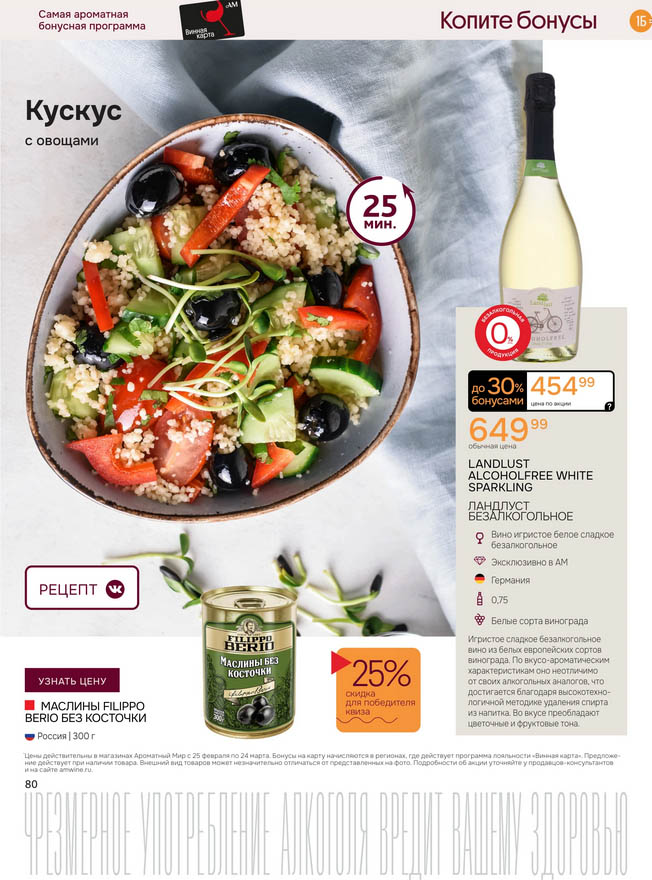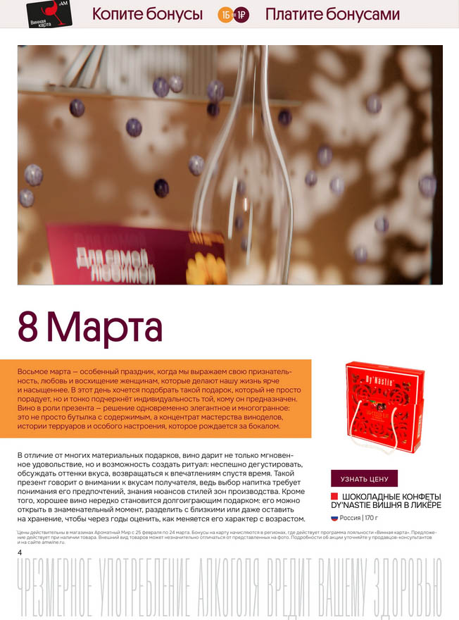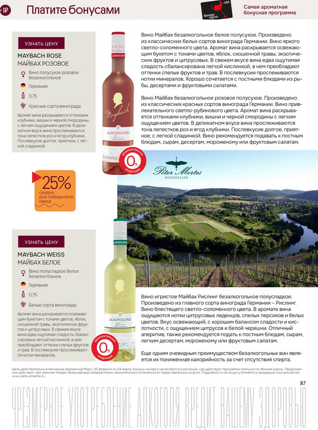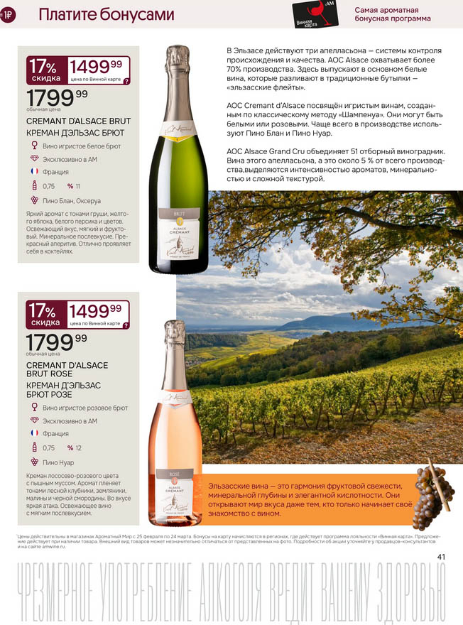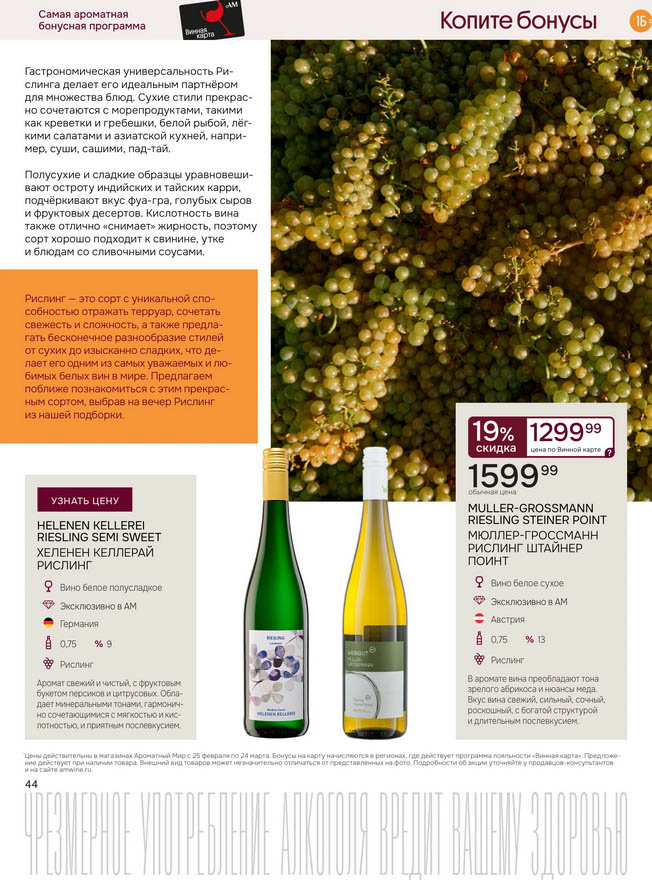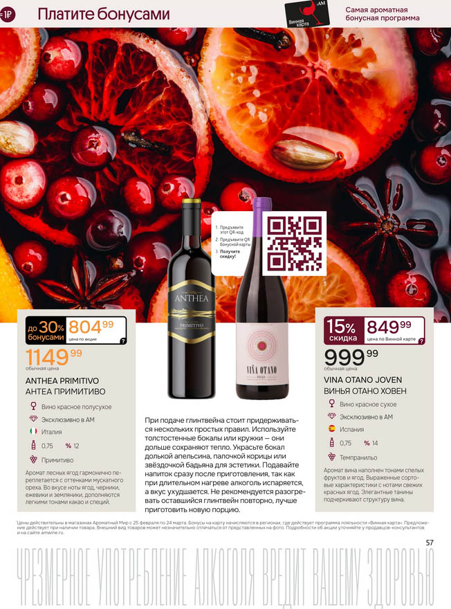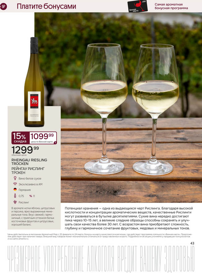 Подробную информацию об правилах, наличии товаров, адресах и скидках узнавайте в магазинахили по тел.: 8 (495) 108-68-68и на сайте: amwine.ru
