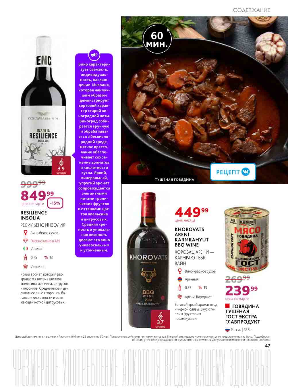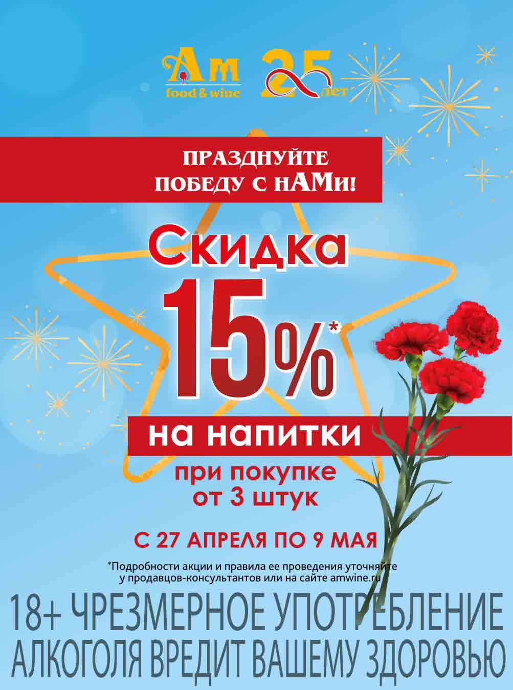 Подробную информацию об правилах, наличии товаров, адресах и скидках узнавайте в магазинахили по тел.: 8 (495) 108-68-68и на сайте: amwine.ru