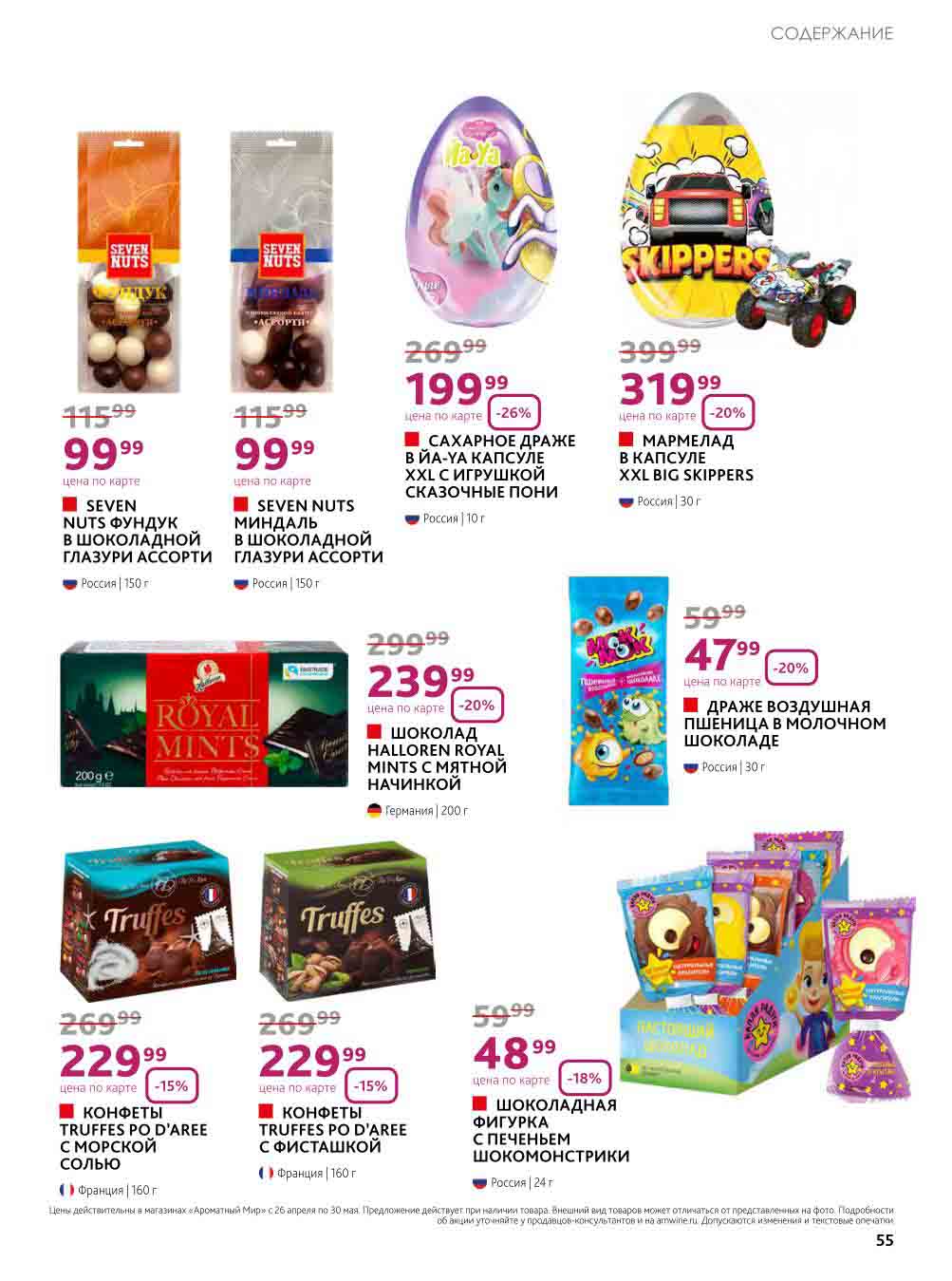 На страницах каталога Ароматный Мир вы найдете все свои любимые товары, которые сейчас предлагаются в супермаркете. Не пропустите последние специальные предложения и сэкономьте на покупках. Цены по акции Ароматный мир действуют в городах: Москва, Зеленоград, Долгопрудный, Люберцы, Химки и многих других населенных пунктах Московского региона.