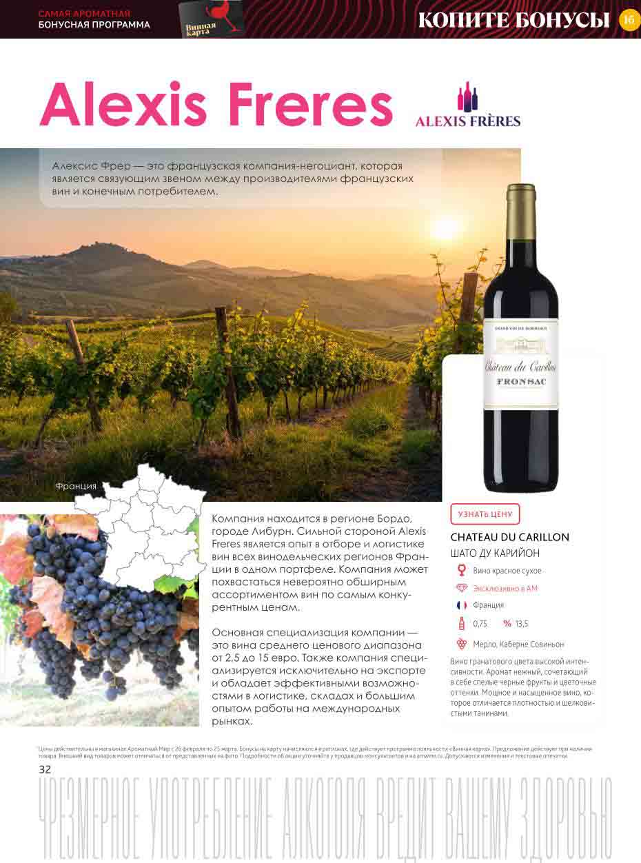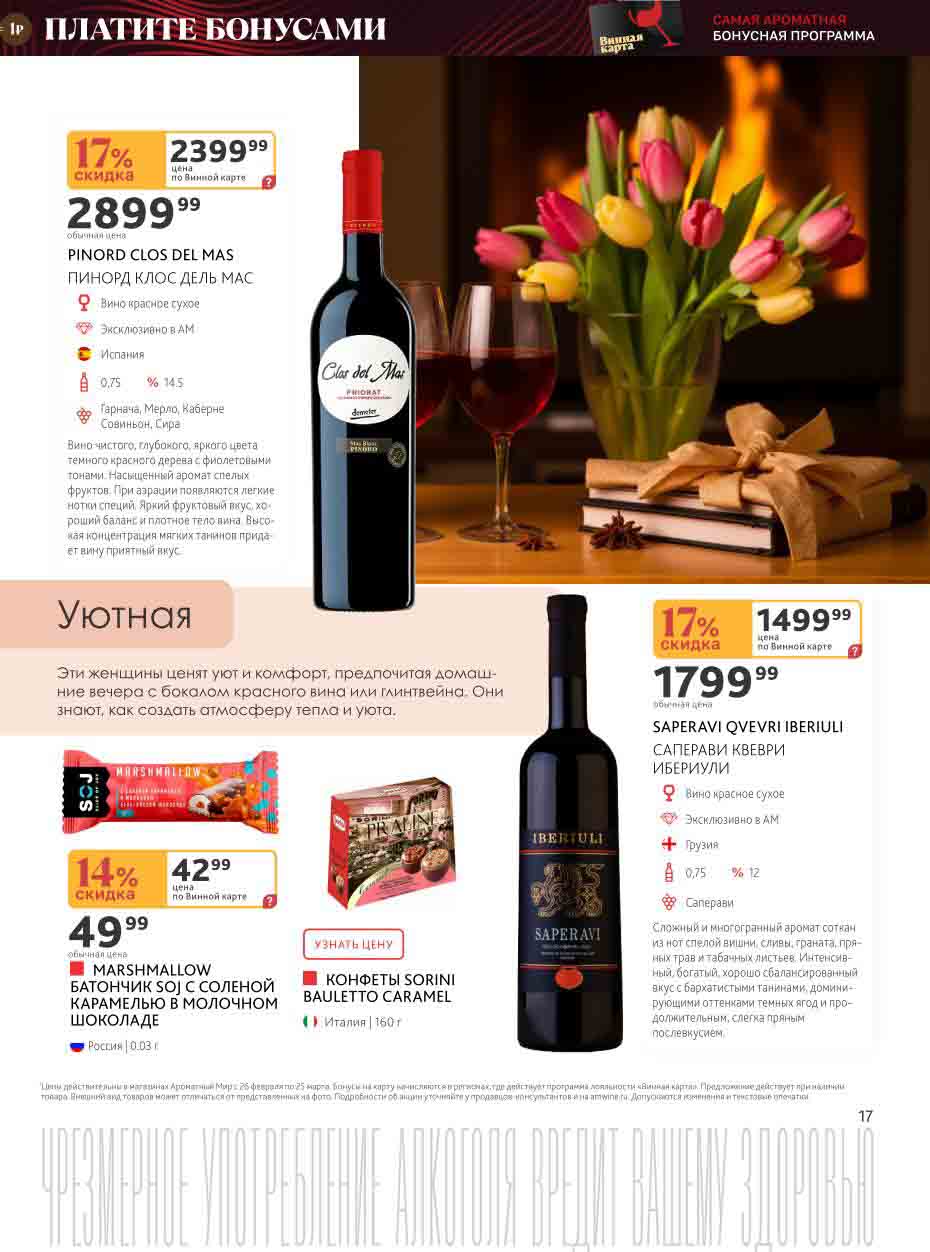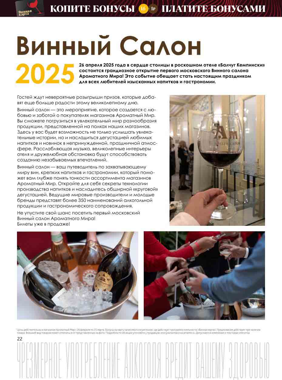 Подробную информацию об правилах, наличии товаров, адресах и скидках узнавайте в магазинахили по тел.: 8 (495) 108-68-68и на сайте: amwine.ru