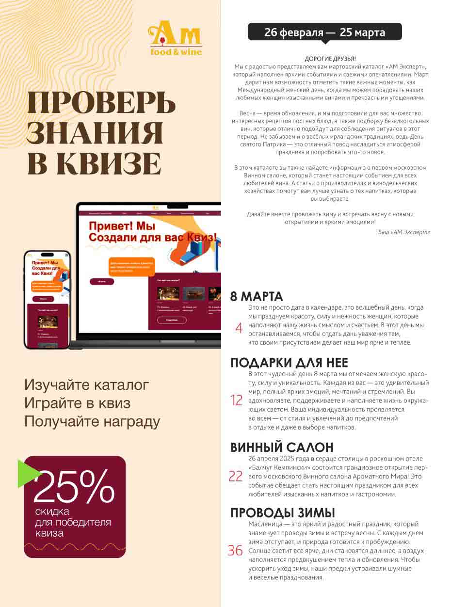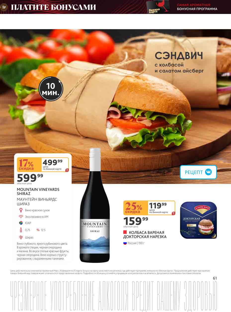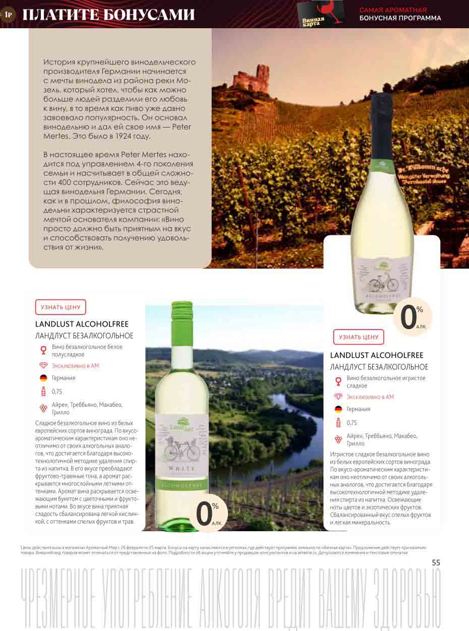 Подробную информацию об правилах, наличии товаров, адресах и скидках узнавайте в магазинахили по тел.: 8 (495) 108-68-68и на сайте: amwine.ru