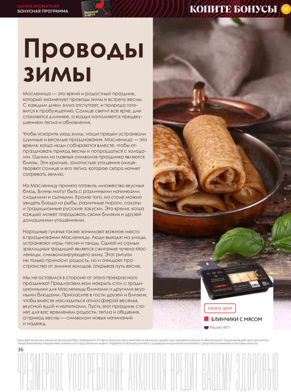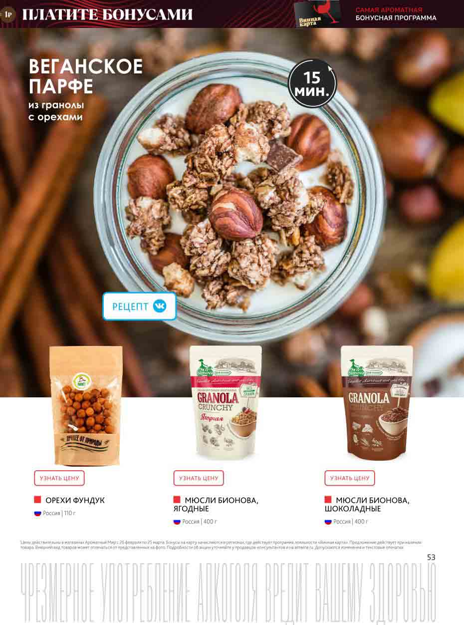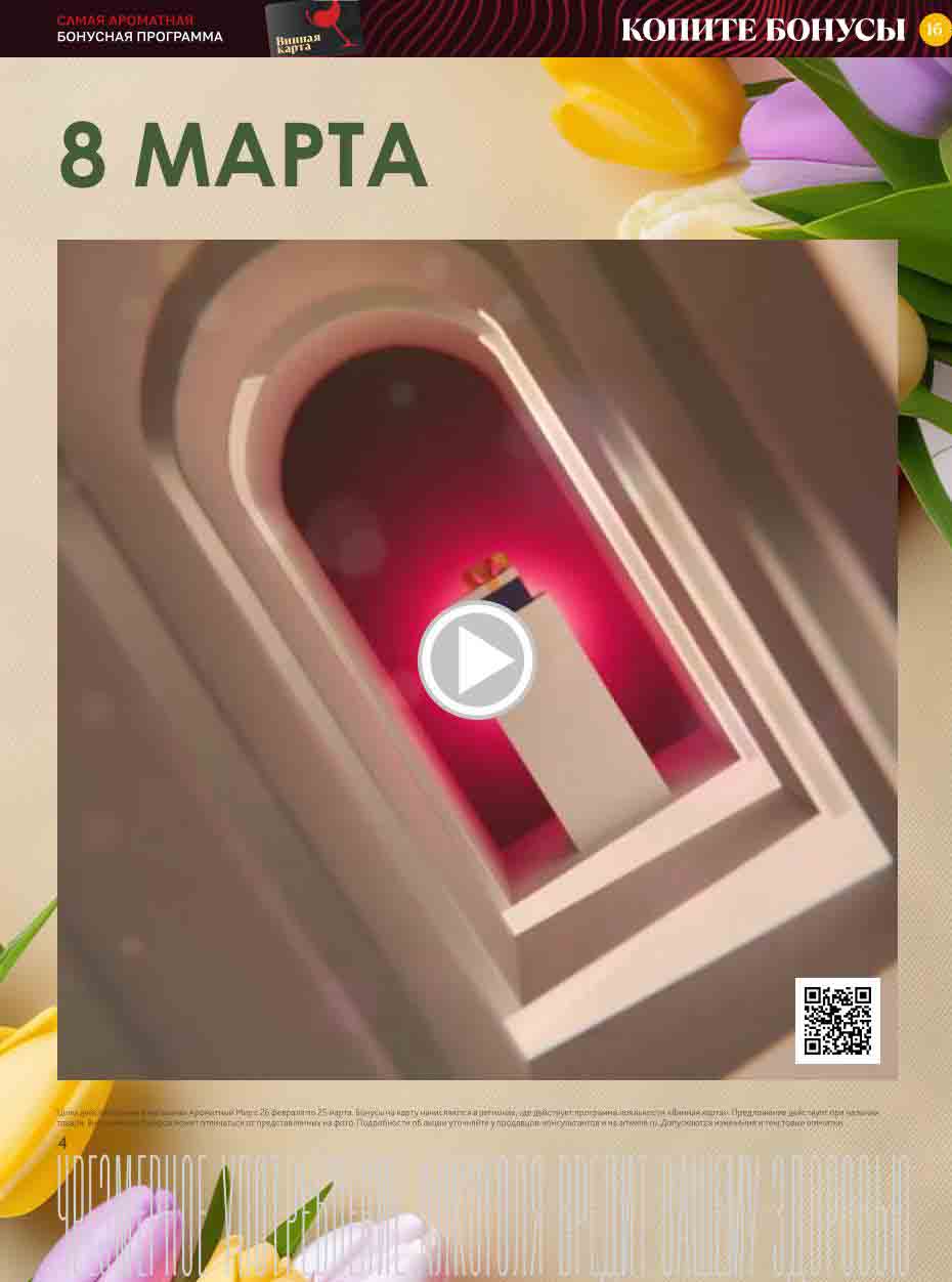 На страницах каталога Ароматный Мир вы найдете все свои любимые товары, которые сейчас предлагаются в супермаркете. Не пропустите последние специальные предложения и сэкономьте на покупках. Цены по акции Ароматный мир действуют в городах: Москва, Зеленоград, Долгопрудный, Люберцы, Химки и многих других населенных пунктах Московского региона.