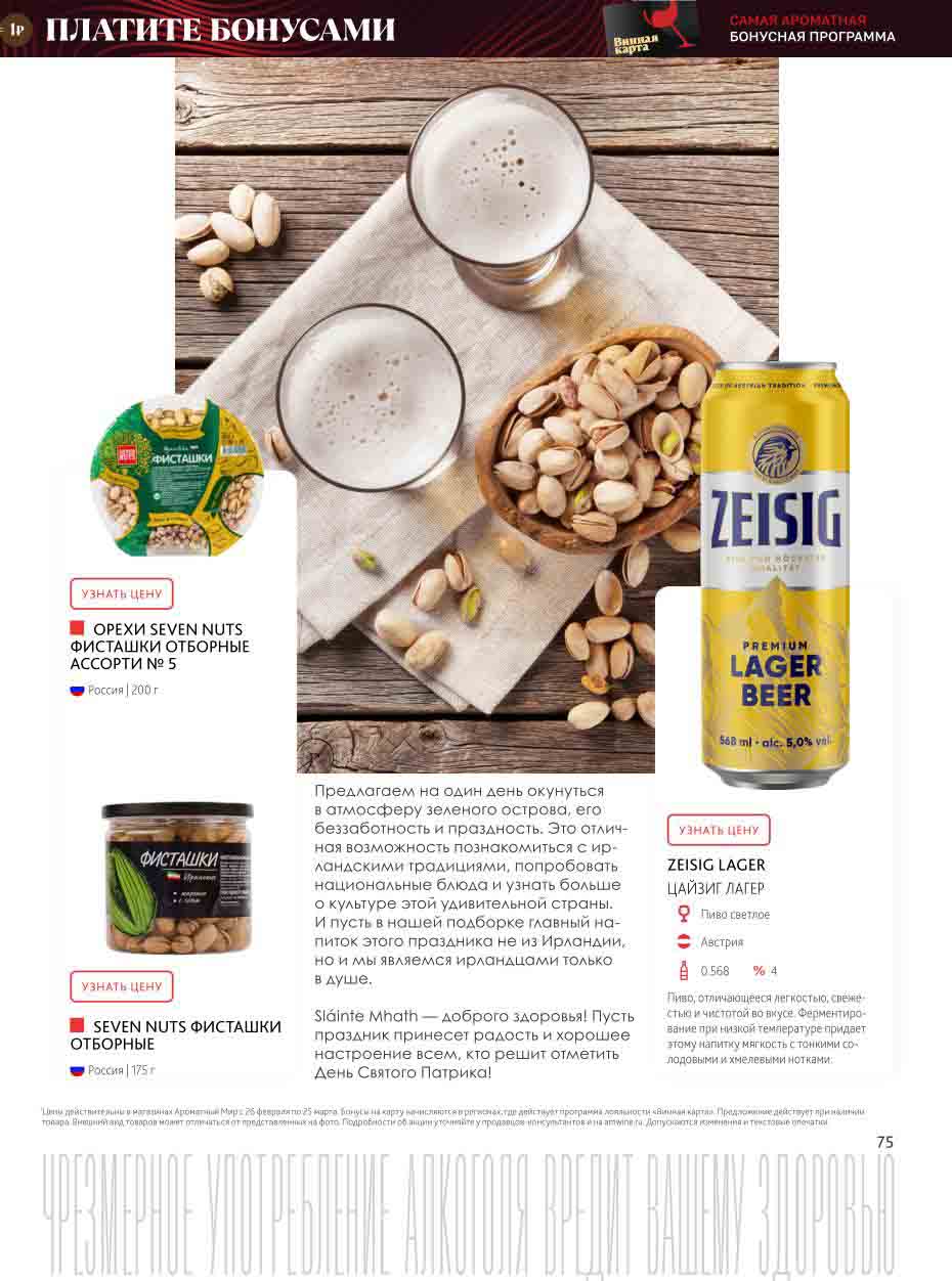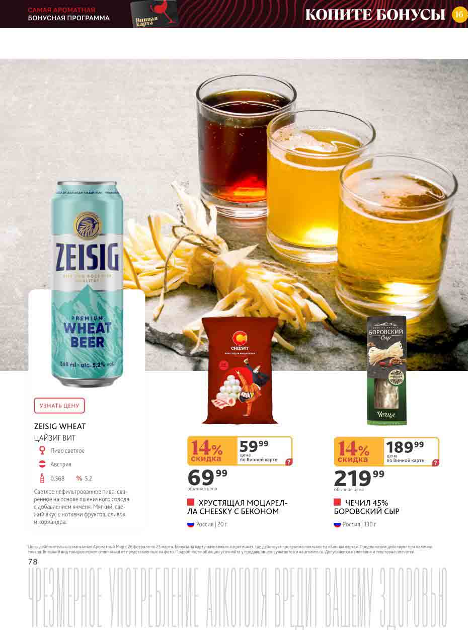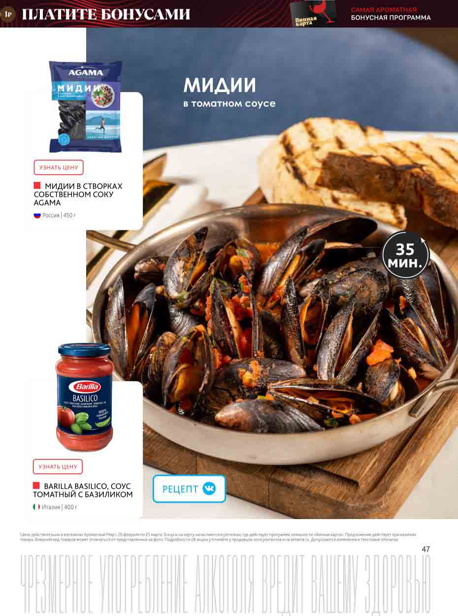 На страницах каталога Ароматный Мир вы найдете все свои любимые товары, которые сейчас предлагаются в супермаркете. Не пропустите последние специальные предложения и сэкономьте на покупках. Цены по акции Ароматный мир действуют в городах: Москва, Зеленоград, Долгопрудный, Люберцы, Химки и многих других населенных пунктах Московского региона.