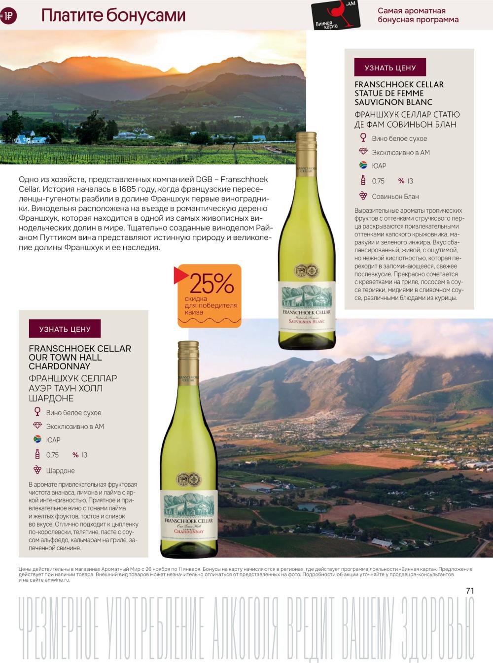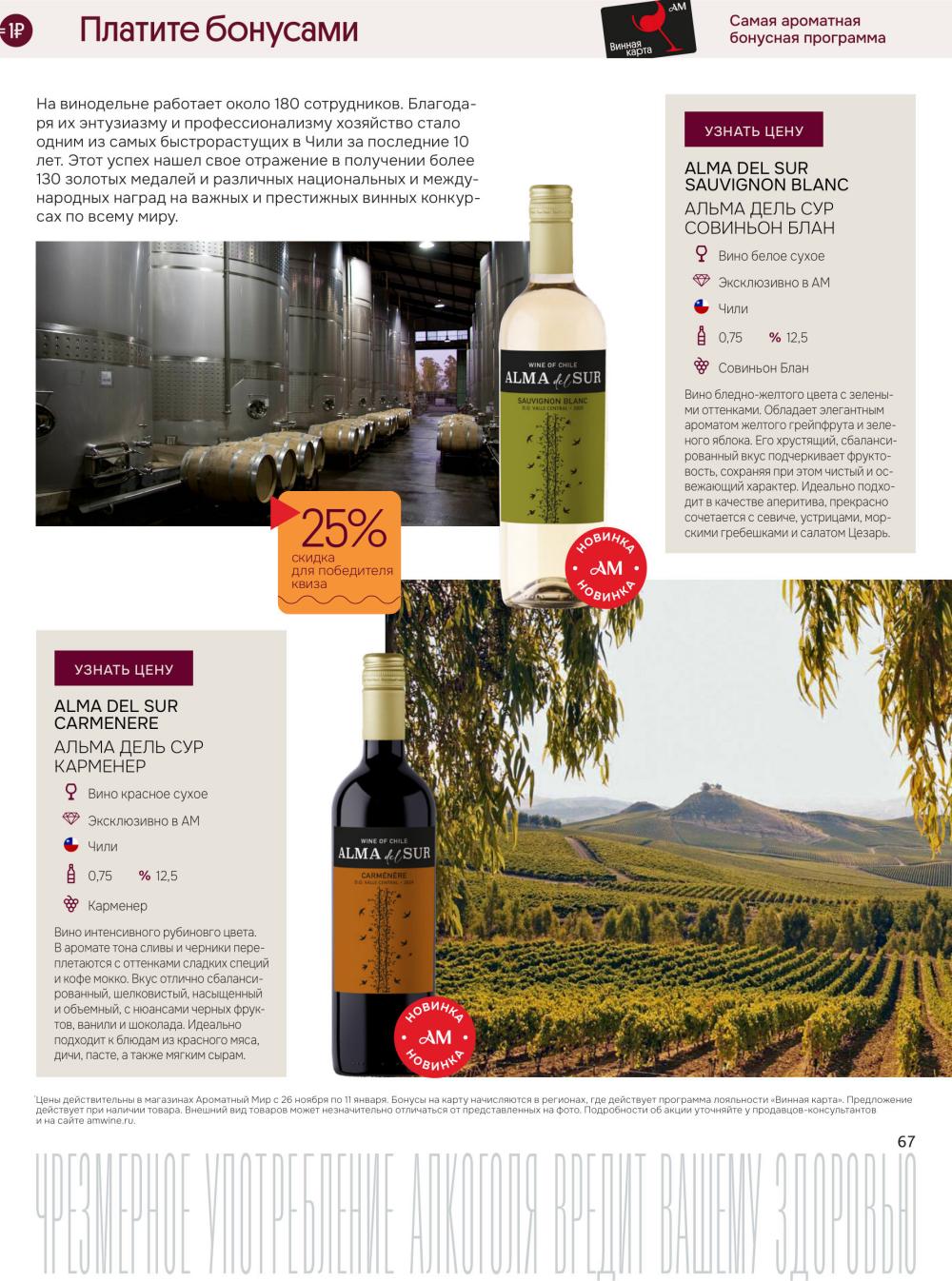 Подробную информацию об правилах, наличии товаров, адресах и скидках узнавайте в магазинахили по тел.: 8 (495) 108-68-68и на сайте: amwine.ru