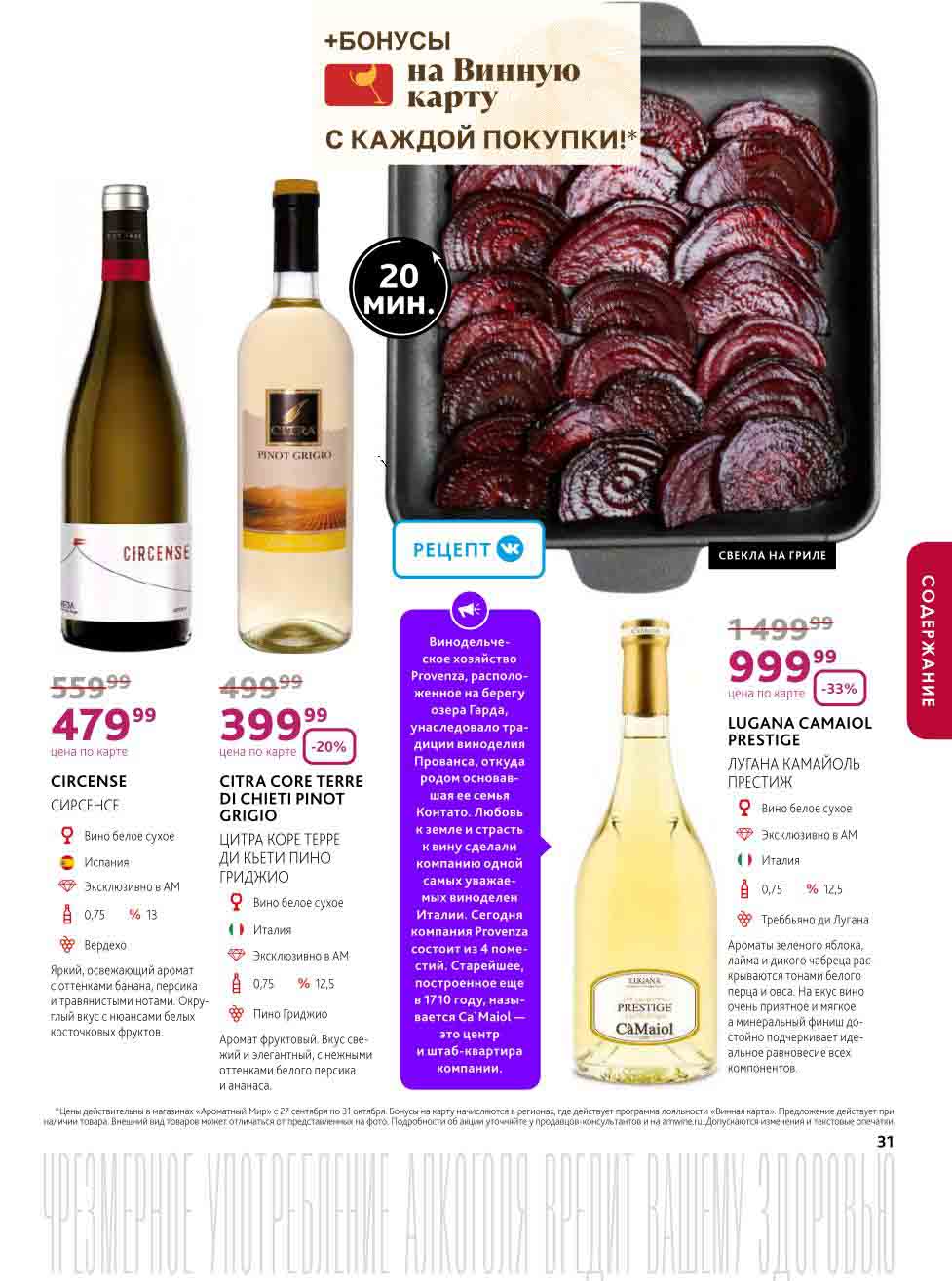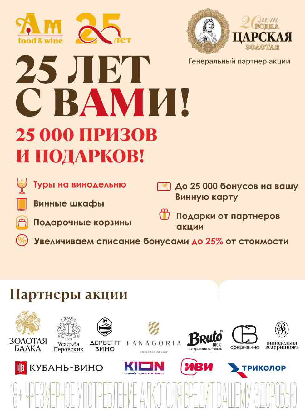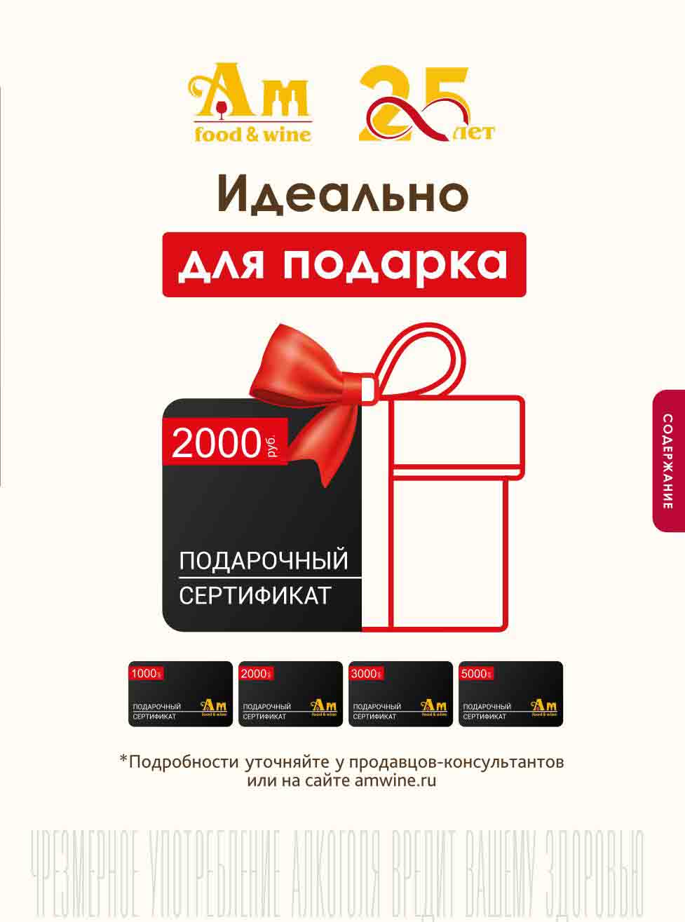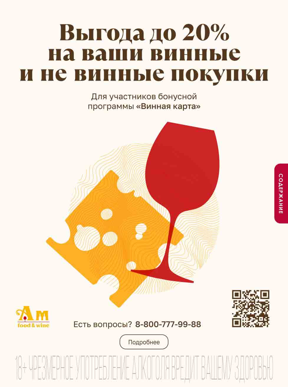 Подробную информацию об правилах, наличии товаров, адресах и скидках узнавайте в магазинахили по тел.: 8 (495) 108-68-68и на сайте: amwine.ru