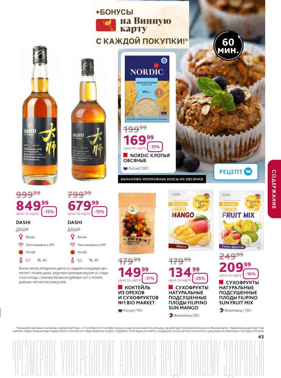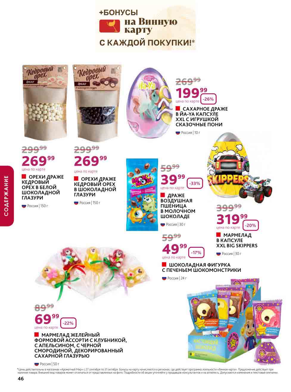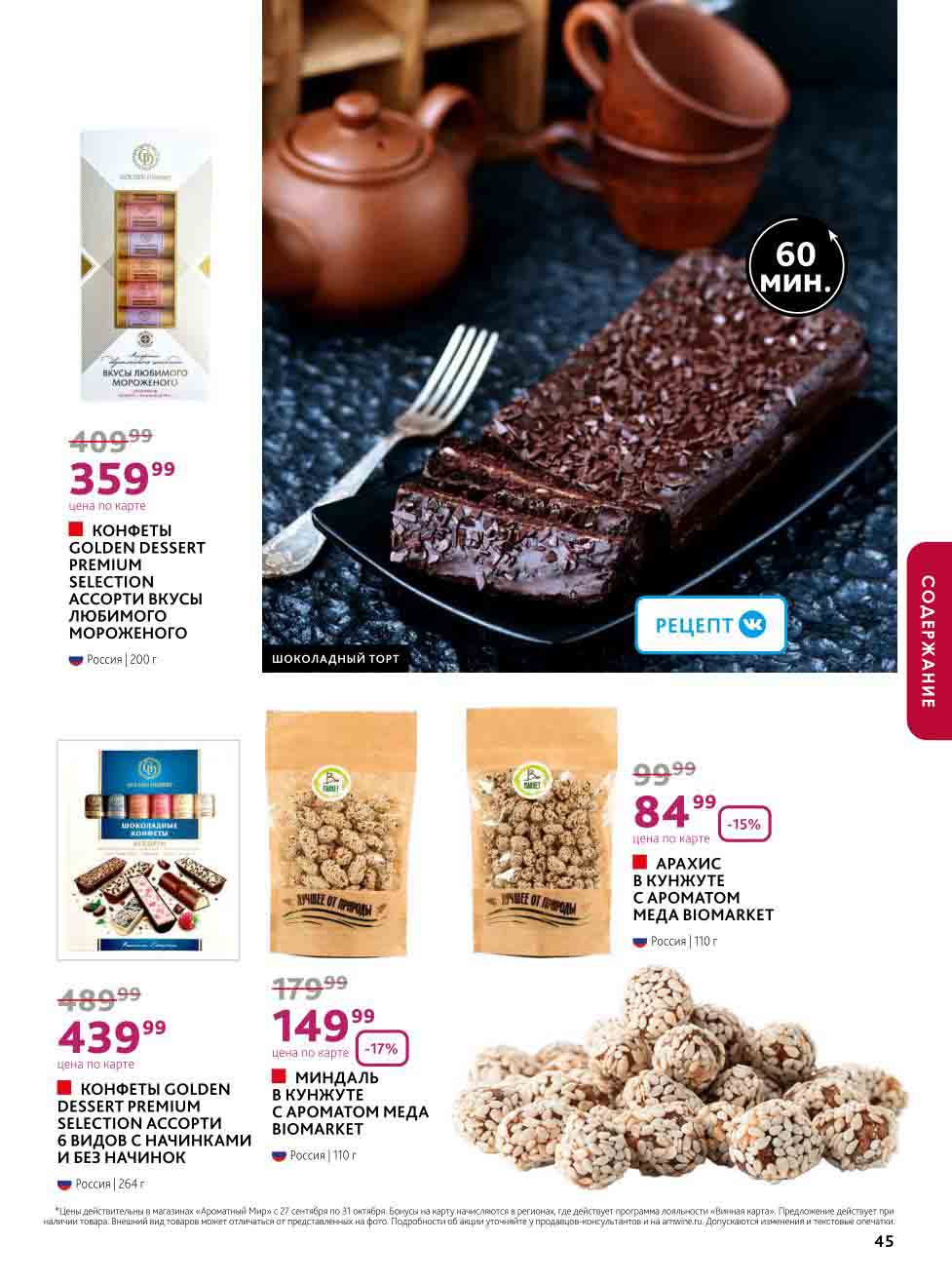 На страницах каталога Ароматный Мир вы найдете все свои любимые товары, которые сейчас предлагаются в супермаркете. Не пропустите последние специальные предложения и сэкономьте на покупках. Цены по акции Ароматный мир действуют в городах: Москва, Зеленоград, Долгопрудный, Люберцы, Химки и многих других населенных пунктах Московского региона.