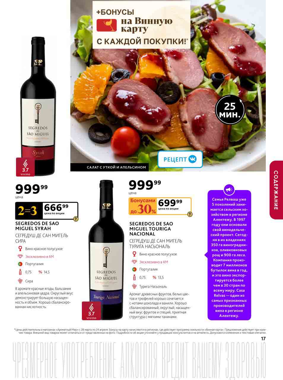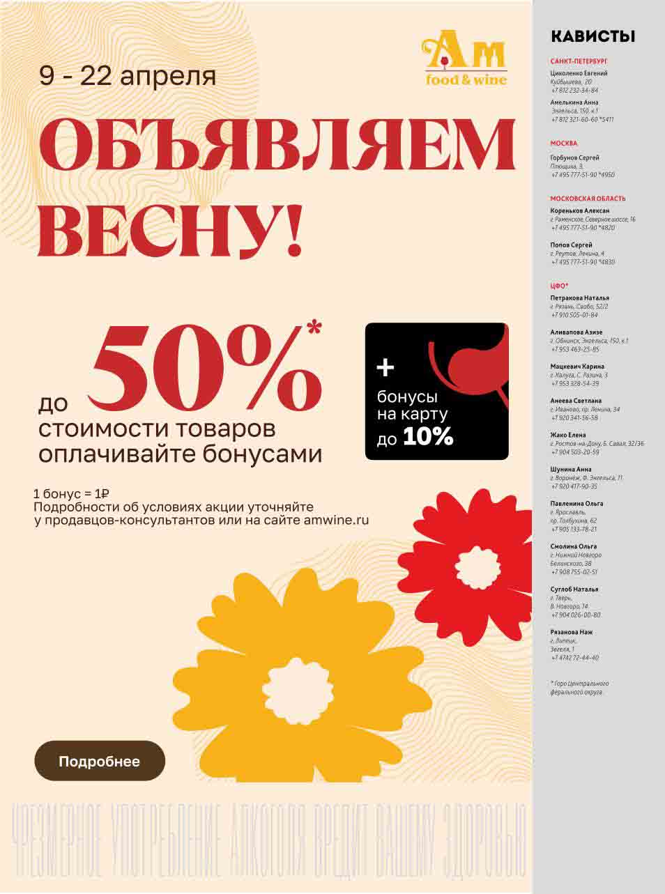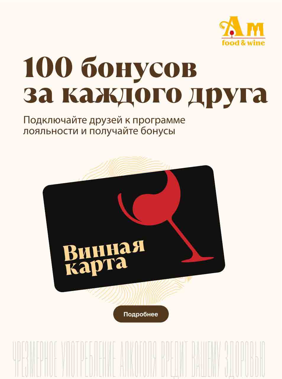 Подробную информацию об правилах, наличии товаров, адресах и скидках узнавайте в магазинахили по тел.: 8 (495) 108-68-68и на сайте: amwine.ru