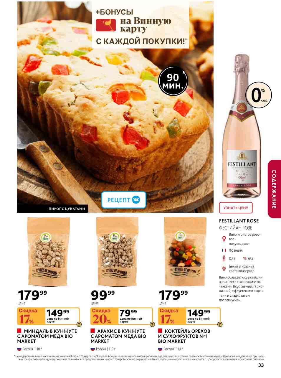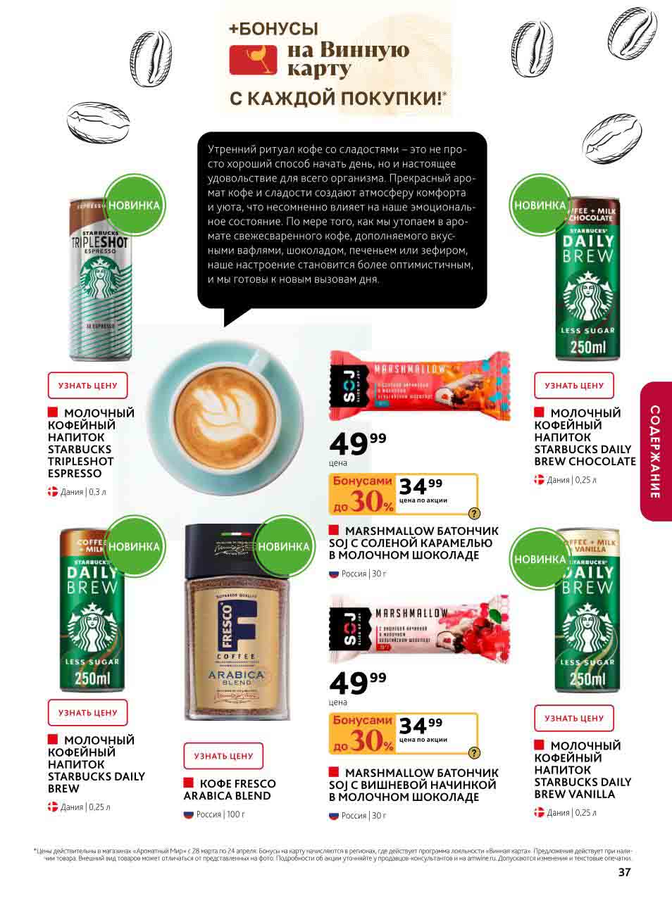 На страницах каталога Ароматный Мир вы найдете все свои любимые товары, которые сейчас предлагаются в супермаркете. Не пропустите последние специальные предложения и сэкономьте на покупках. Цены по акции Ароматный мир действуют в городах: Москва, Зеленоград, Долгопрудный, Люберцы, Химки и многих других населенных пунктах Московского региона.