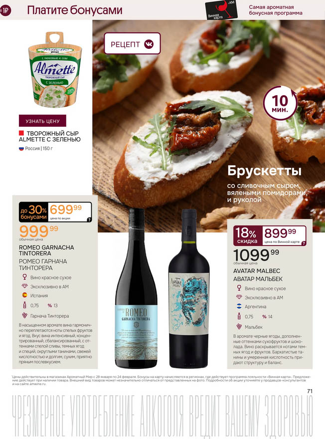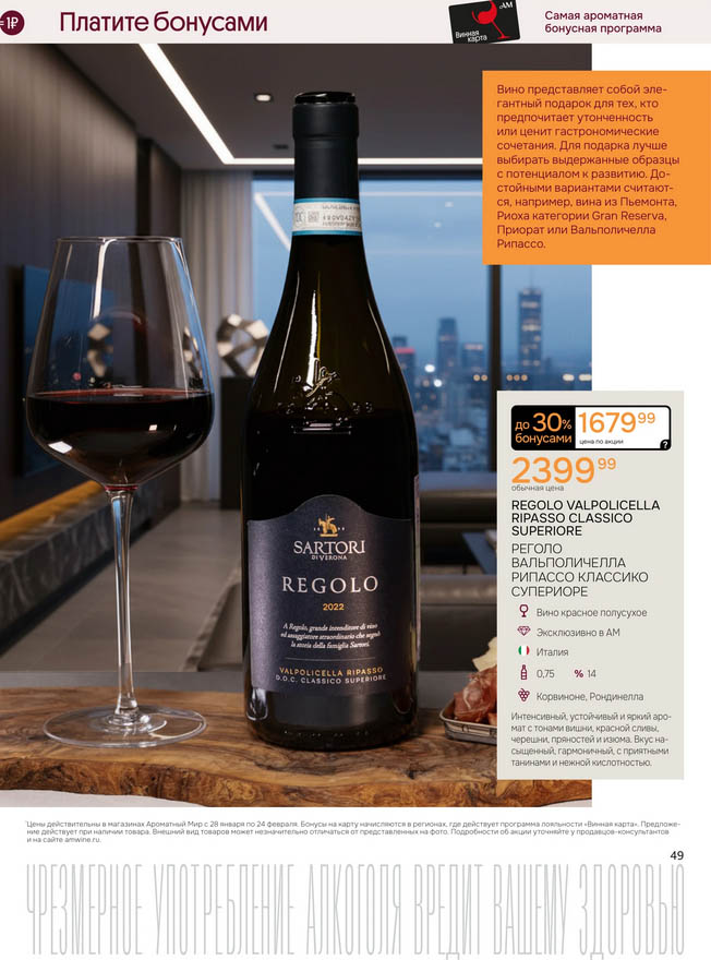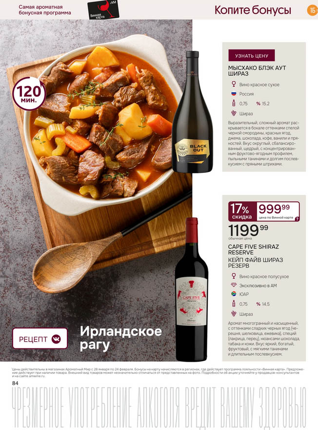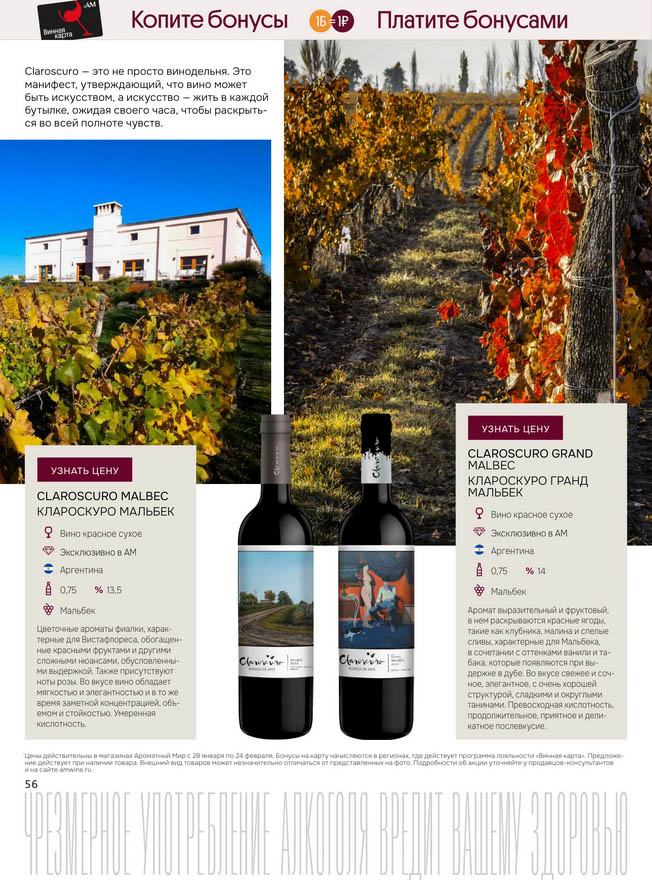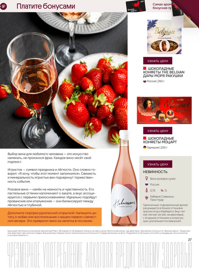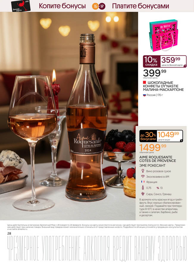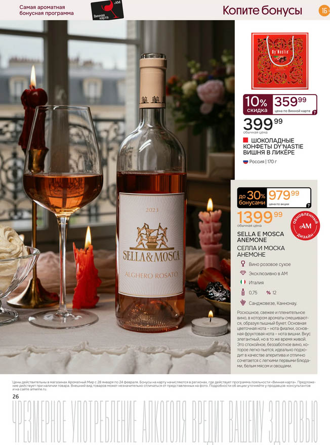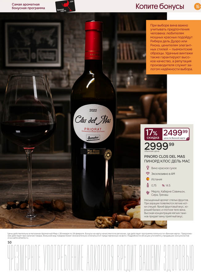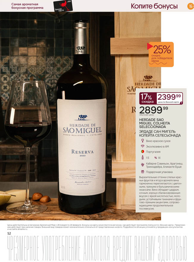 Подробную информацию об правилах, наличии товаров, адресах и скидках узнавайте в магазинахили по тел.: 8 (495) 108-68-68и на сайте: amwine.ru