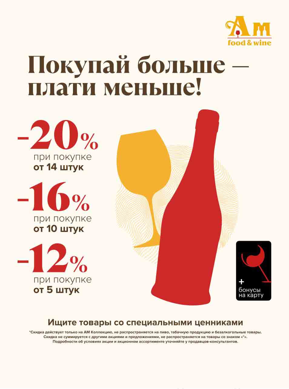 Подробную информацию об правилах, наличии товаров, адресах и скидках узнавайте в магазинахили по тел.: 8 (495) 108-68-68и на сайте: amwine.ru