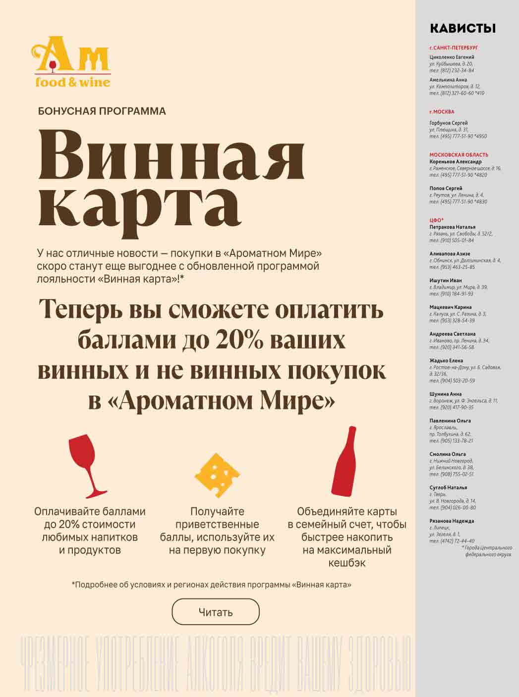 Подробную информацию об правилах, наличии товаров, адресах и скидках узнавайте в магазинахили по тел.: 8 (495) 108-68-68и на сайте: amwine.ru