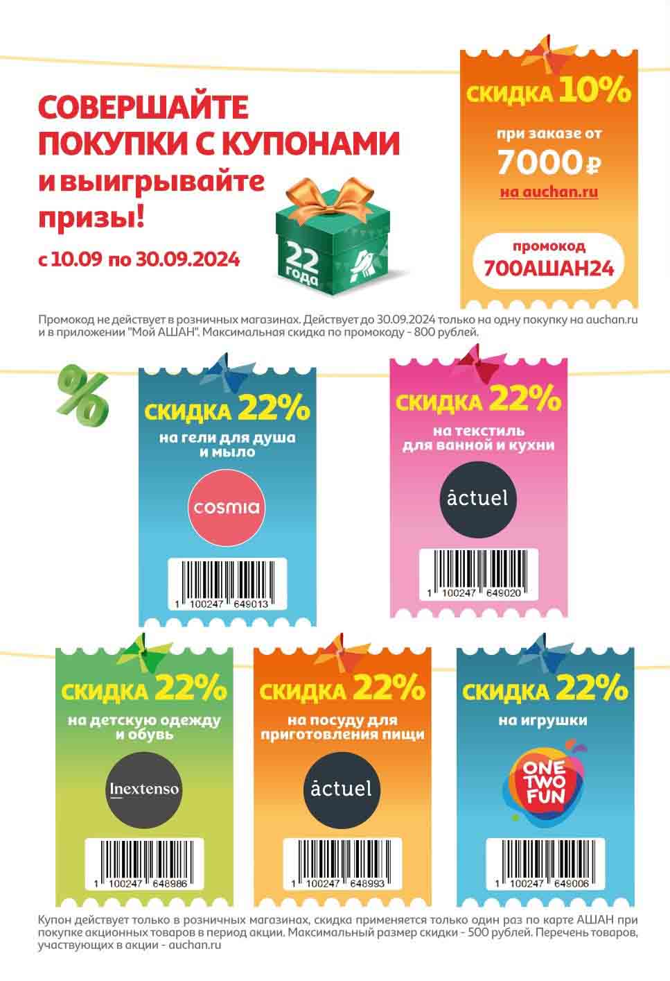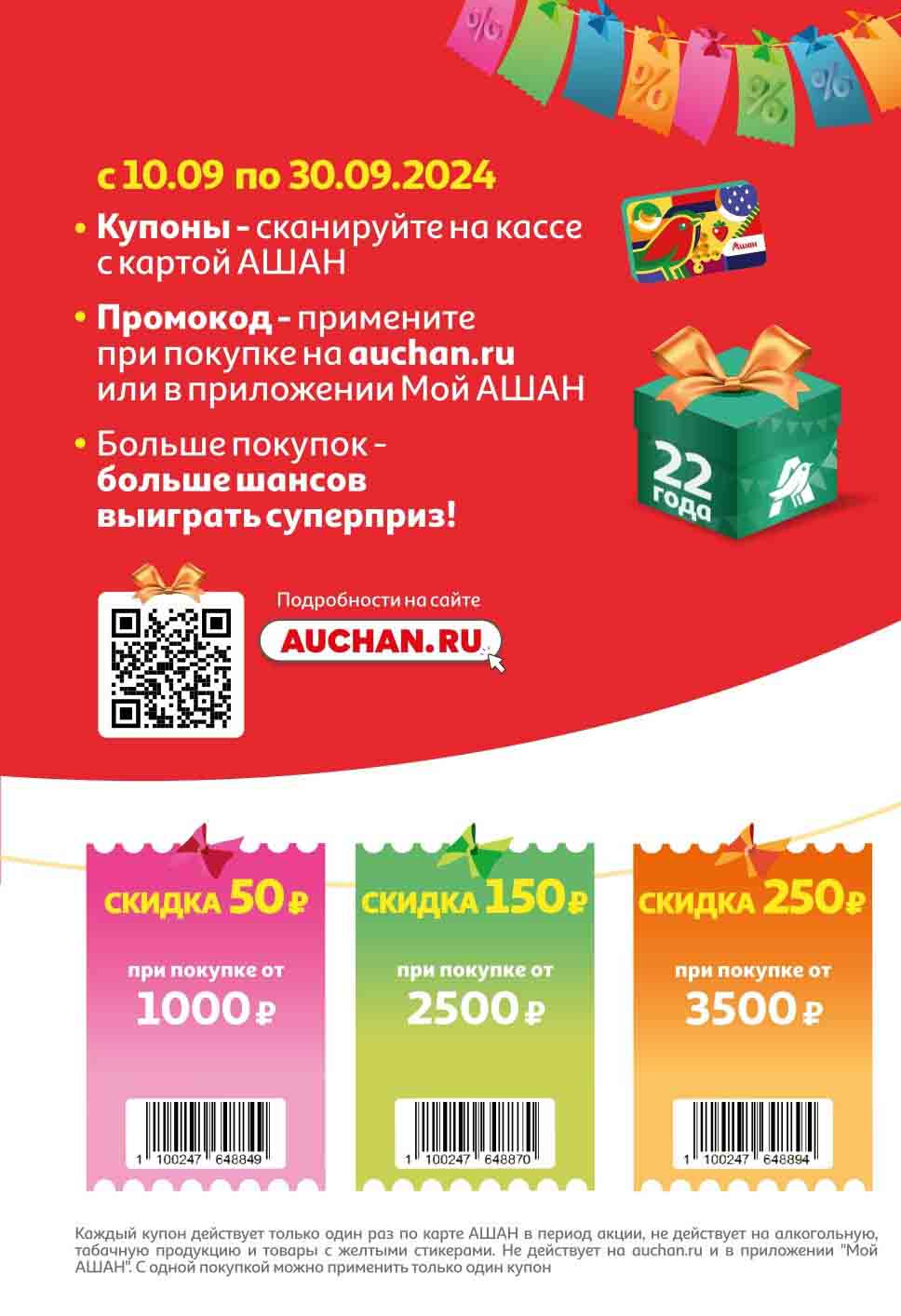 Ашан акции с 10 сентября — 30 сентября 2024. Суперцены по купонам