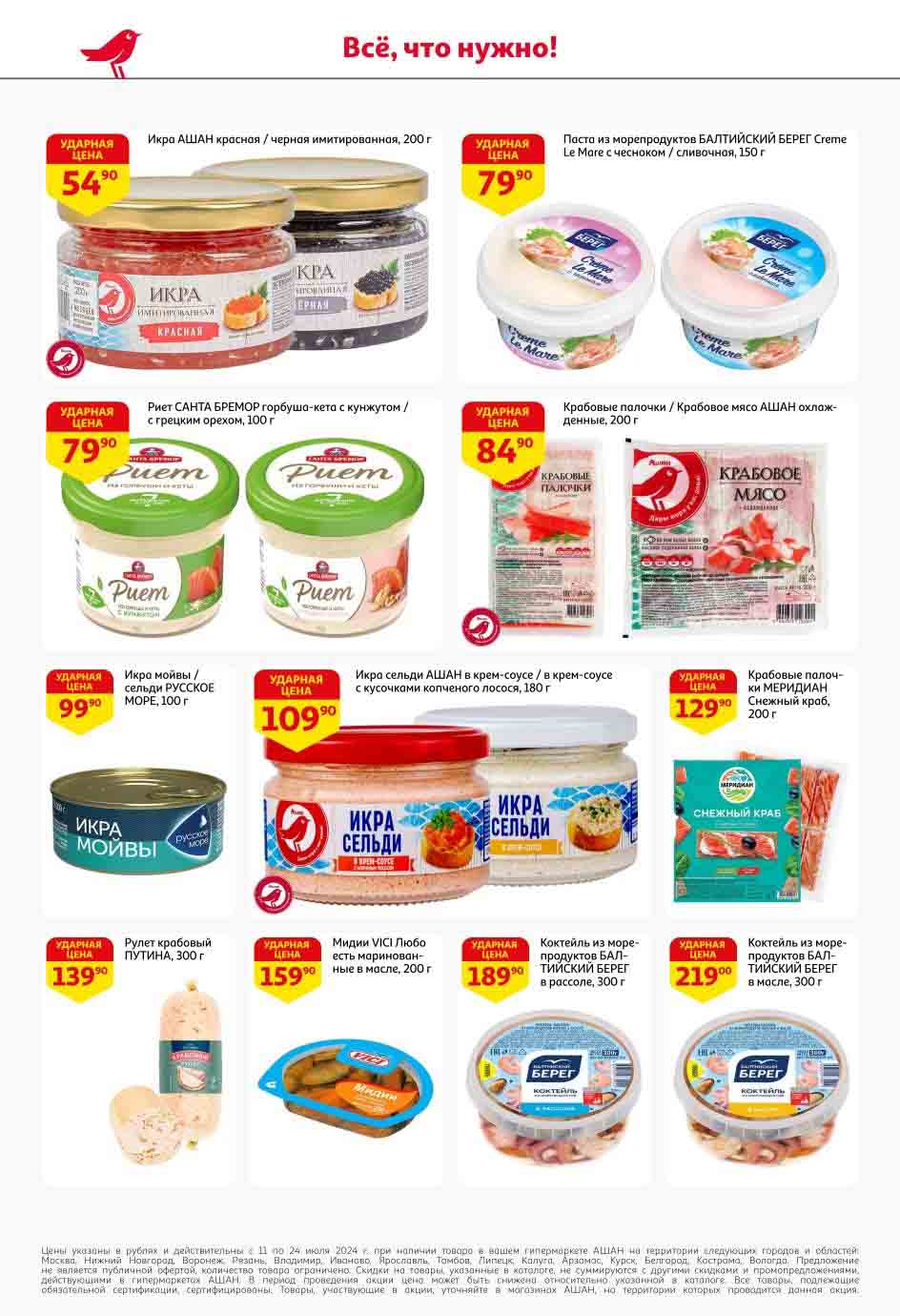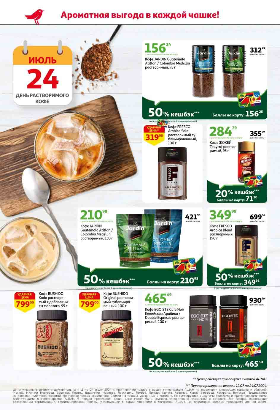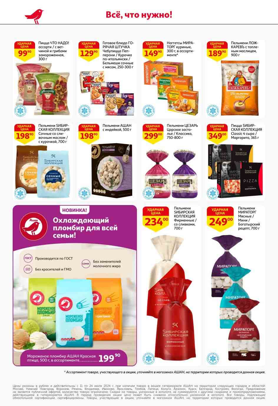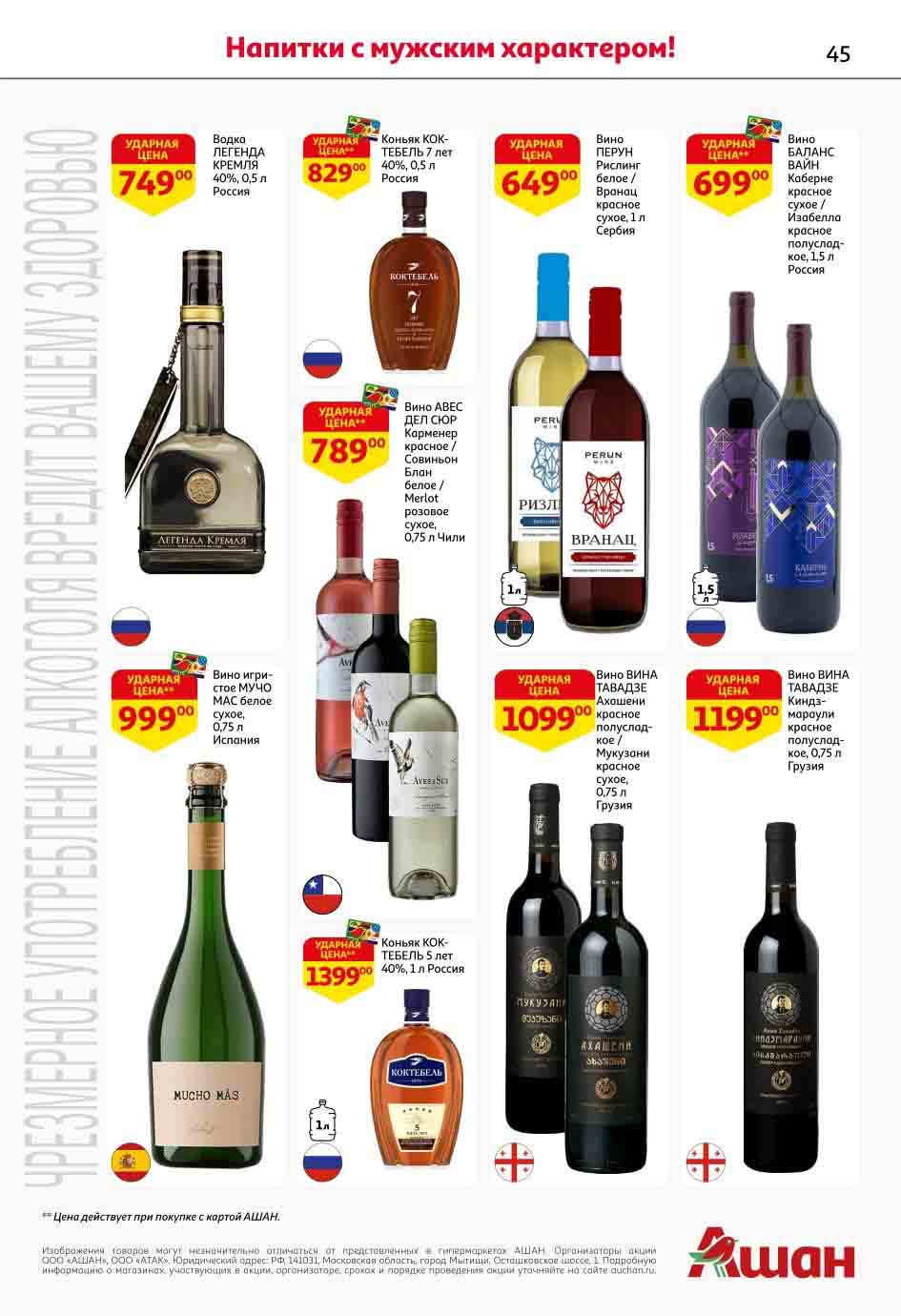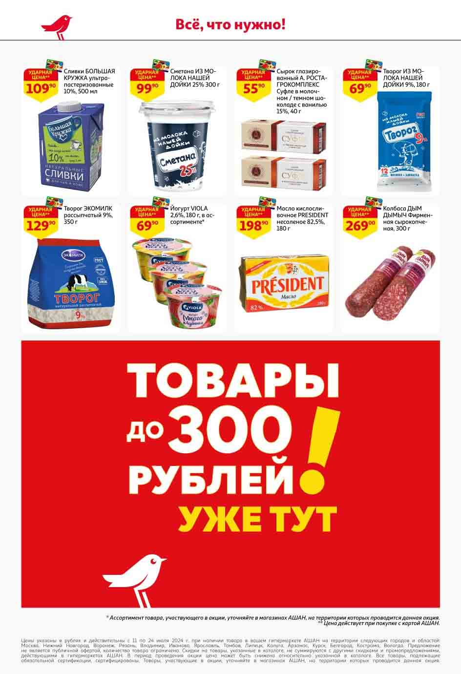 На страницах каталога Ашан вы найдете все свои любимые продукты, которые сейчас предлагаются в супермаркете. Не пропустите последние специальные предложения и сэкономьте на покупках. Предложение действительно при наличии товара на прилавках. Скидки на товары, указанные в каталоге, не суммируются с другими скидками. Изображения товаров могут незначительно отличаться от представленных на полках. Цены по акции Ашан действуют в городах: Москва. Балашиха. Химки. Подольск. Королев. Мытищи. Люберцы. Электросталь. Коломна. Одинцово. Железнодорожный, Серпухов, Орехово-Зуево. Красногорск, Щелково, Сергиев Посад, Пушкино. Жуковский, Ногинск, Раменское и многих других населенных пунктах Московского региона.