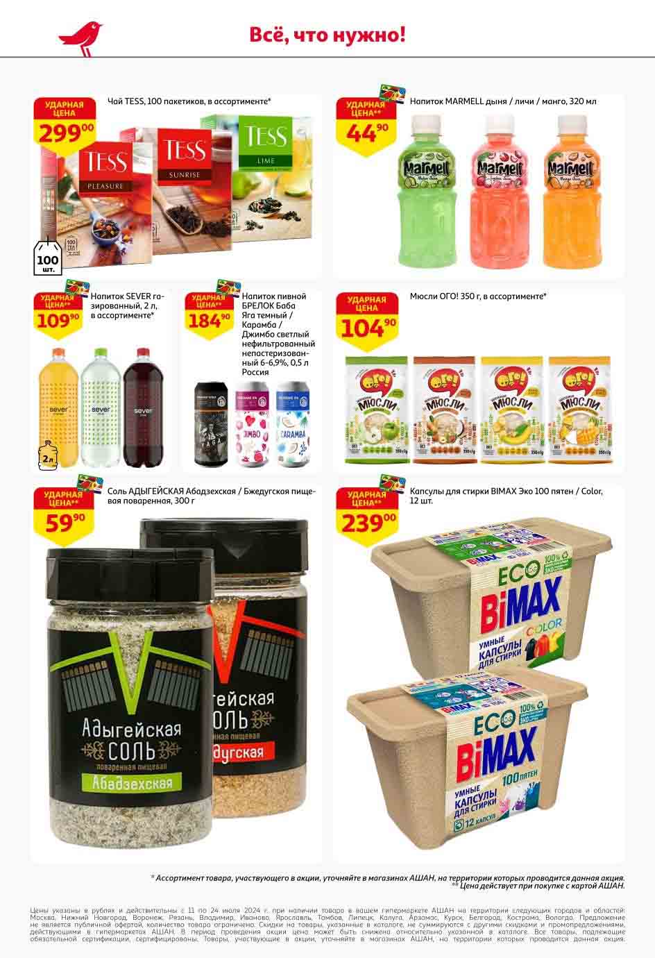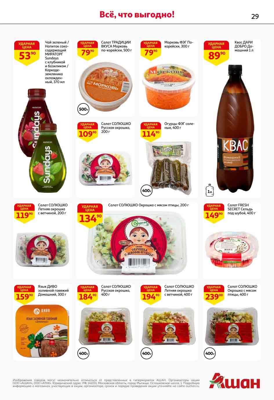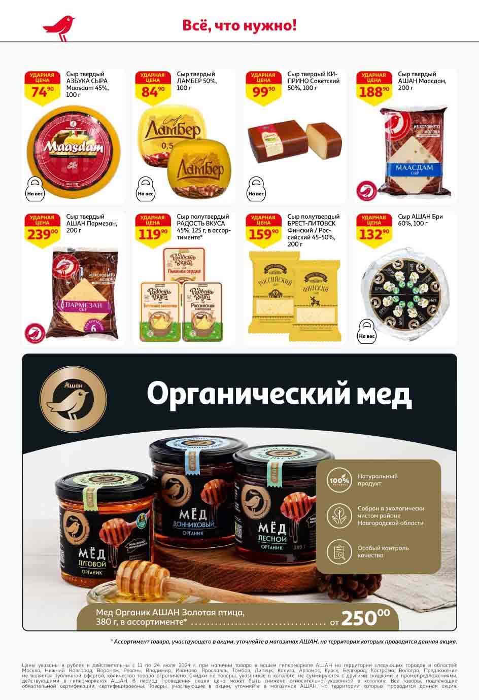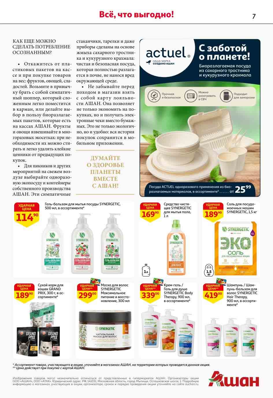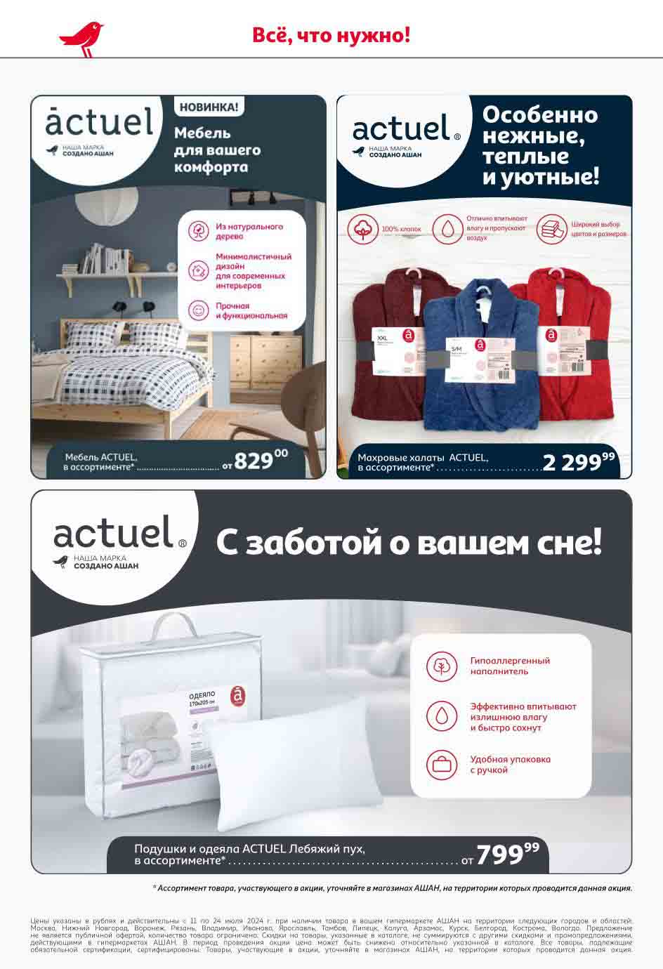 На страницах каталога Ашан вы найдете все свои любимые продукты, которые сейчас предлагаются в супермаркете. Не пропустите последние специальные предложения и сэкономьте на покупках. Предложение действительно при наличии товара на прилавках. Скидки на товары, указанные в каталоге, не суммируются с другими скидками. Изображения товаров могут незначительно отличаться от представленных на полках. Цены по акции Ашан действуют в городах: Москва. Балашиха. Химки. Подольск. Королев. Мытищи. Люберцы. Электросталь. Коломна. Одинцово. Железнодорожный, Серпухов, Орехово-Зуево. Красногорск, Щелково, Сергиев Посад, Пушкино. Жуковский, Ногинск, Раменское и многих других населенных пунктах Московского региона.