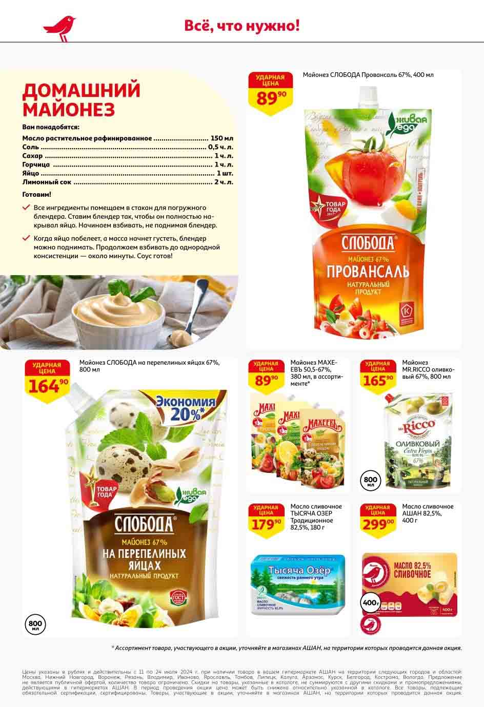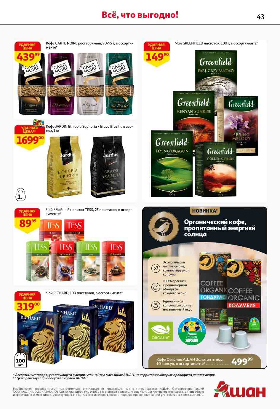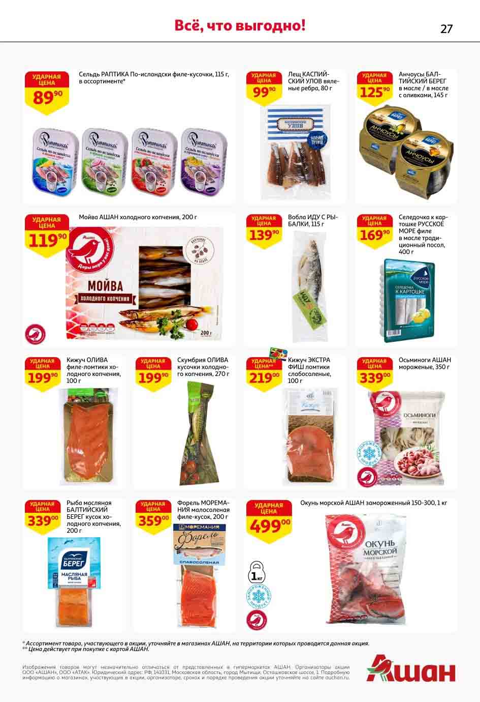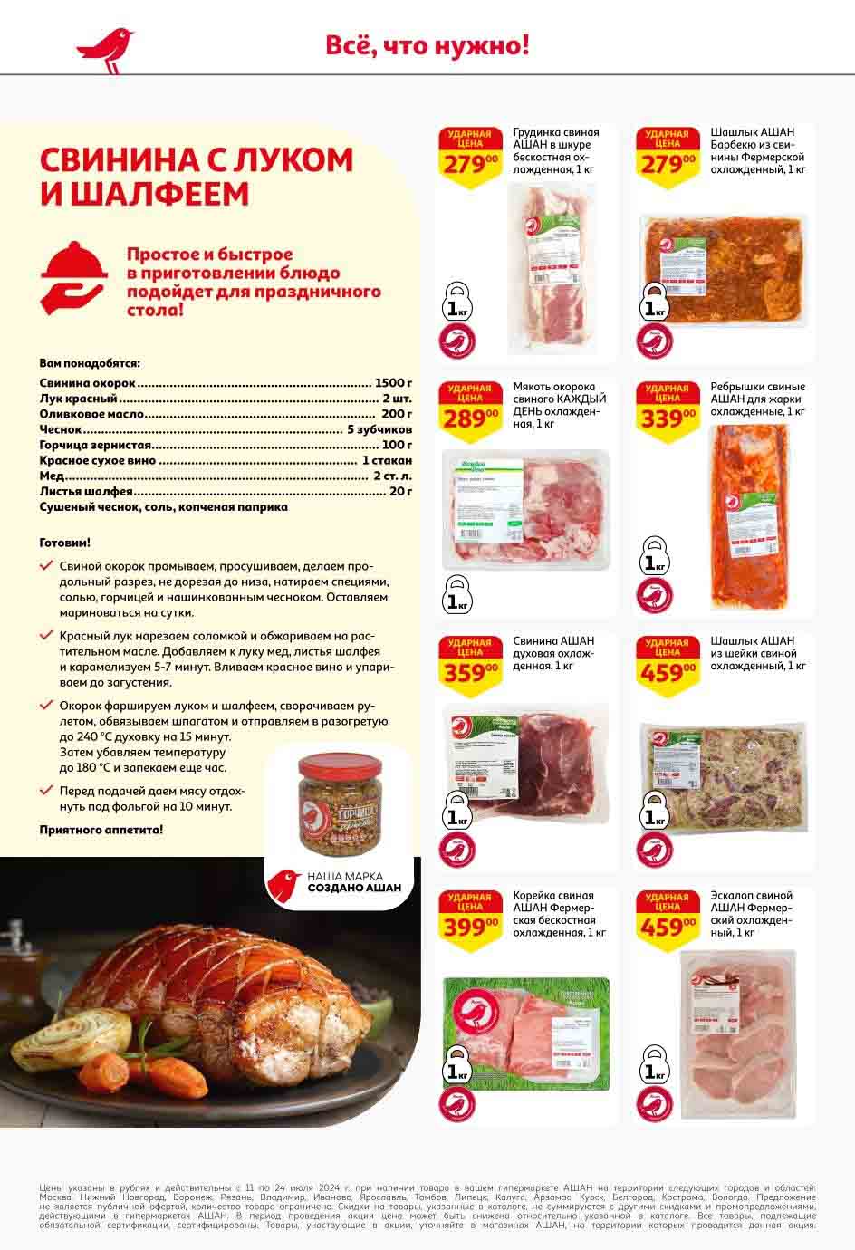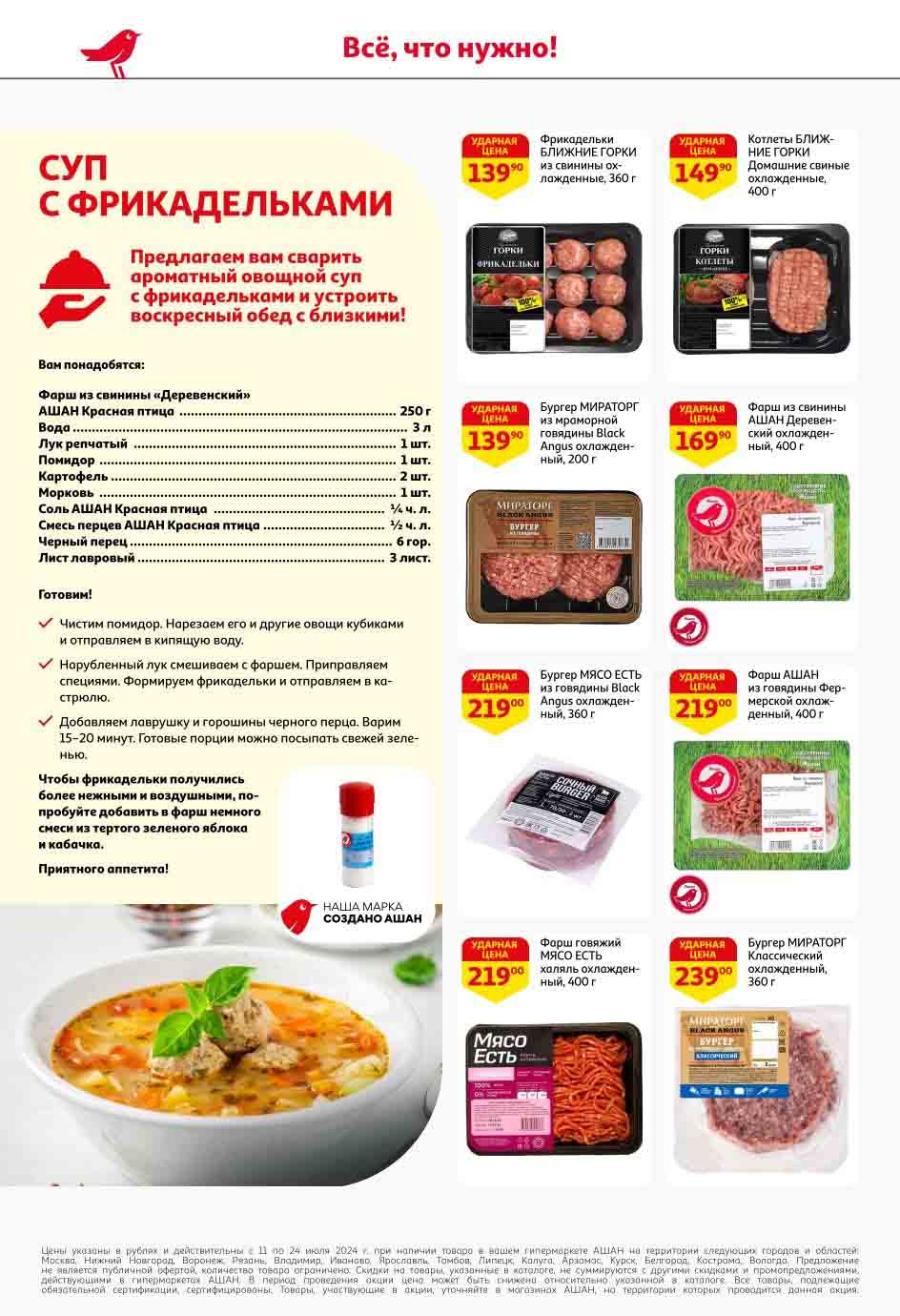 На страницах каталога Ашан вы найдете все свои любимые продукты, которые сейчас предлагаются в супермаркете. Не пропустите последние специальные предложения и сэкономьте на покупках. Предложение действительно при наличии товара на прилавках. Скидки на товары, указанные в каталоге, не суммируются с другими скидками. Изображения товаров могут незначительно отличаться от представленных на полках. Цены по акции Ашан действуют в городах: Москва. Балашиха. Химки. Подольск. Королев. Мытищи. Люберцы. Электросталь. Коломна. Одинцово. Железнодорожный, Серпухов, Орехово-Зуево. Красногорск, Щелково, Сергиев Посад, Пушкино. Жуковский, Ногинск, Раменское и многих других населенных пунктах Московского региона.