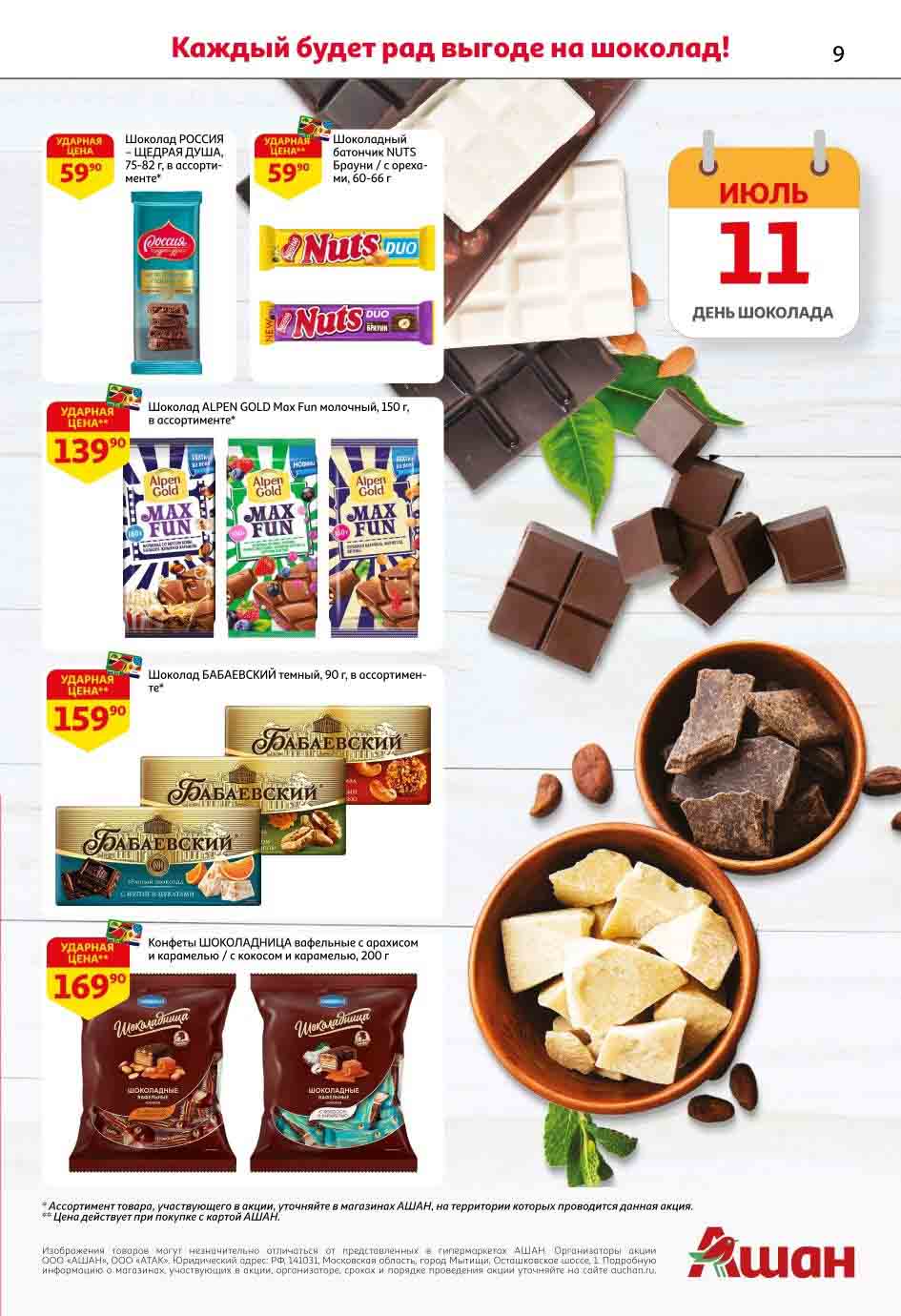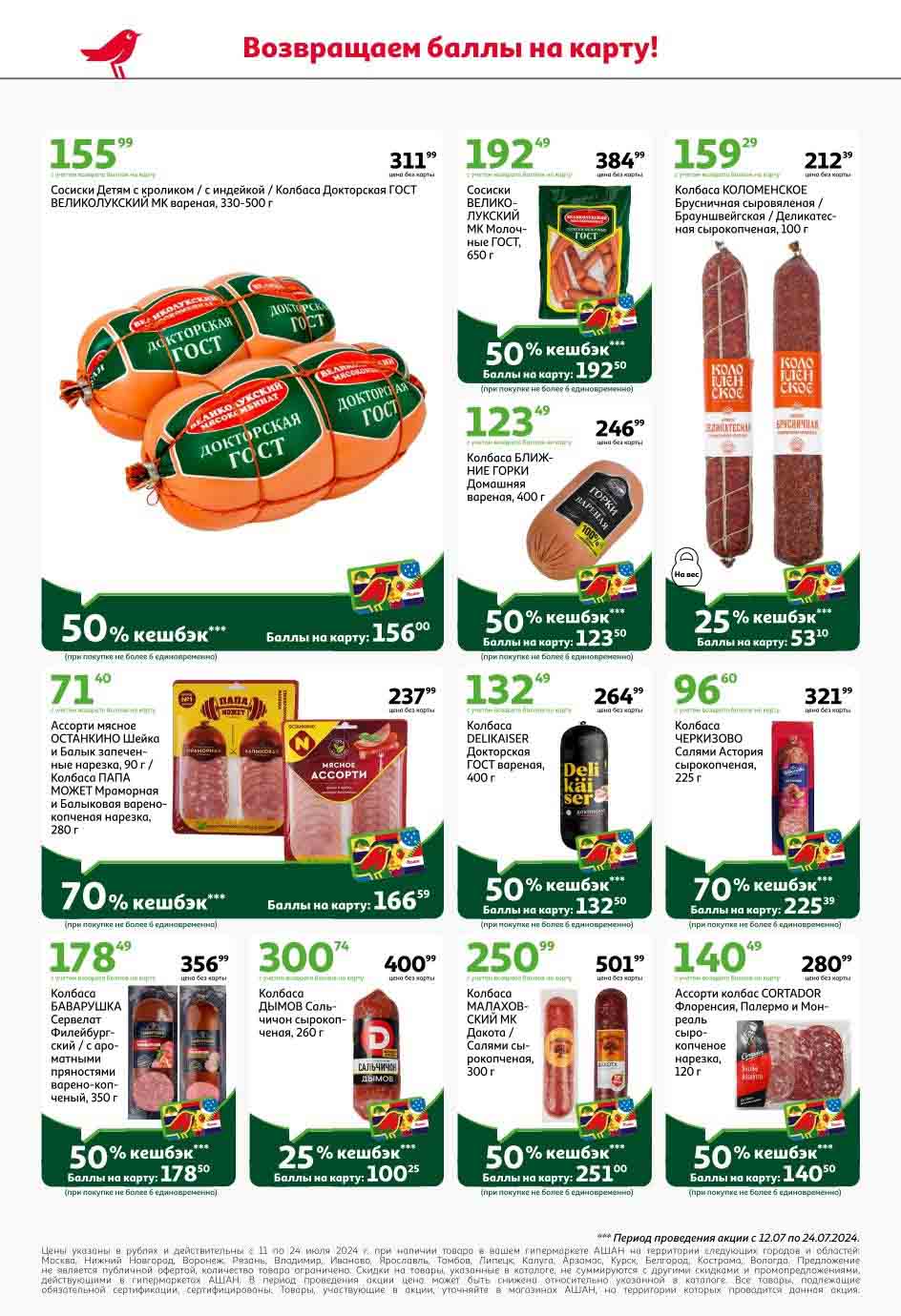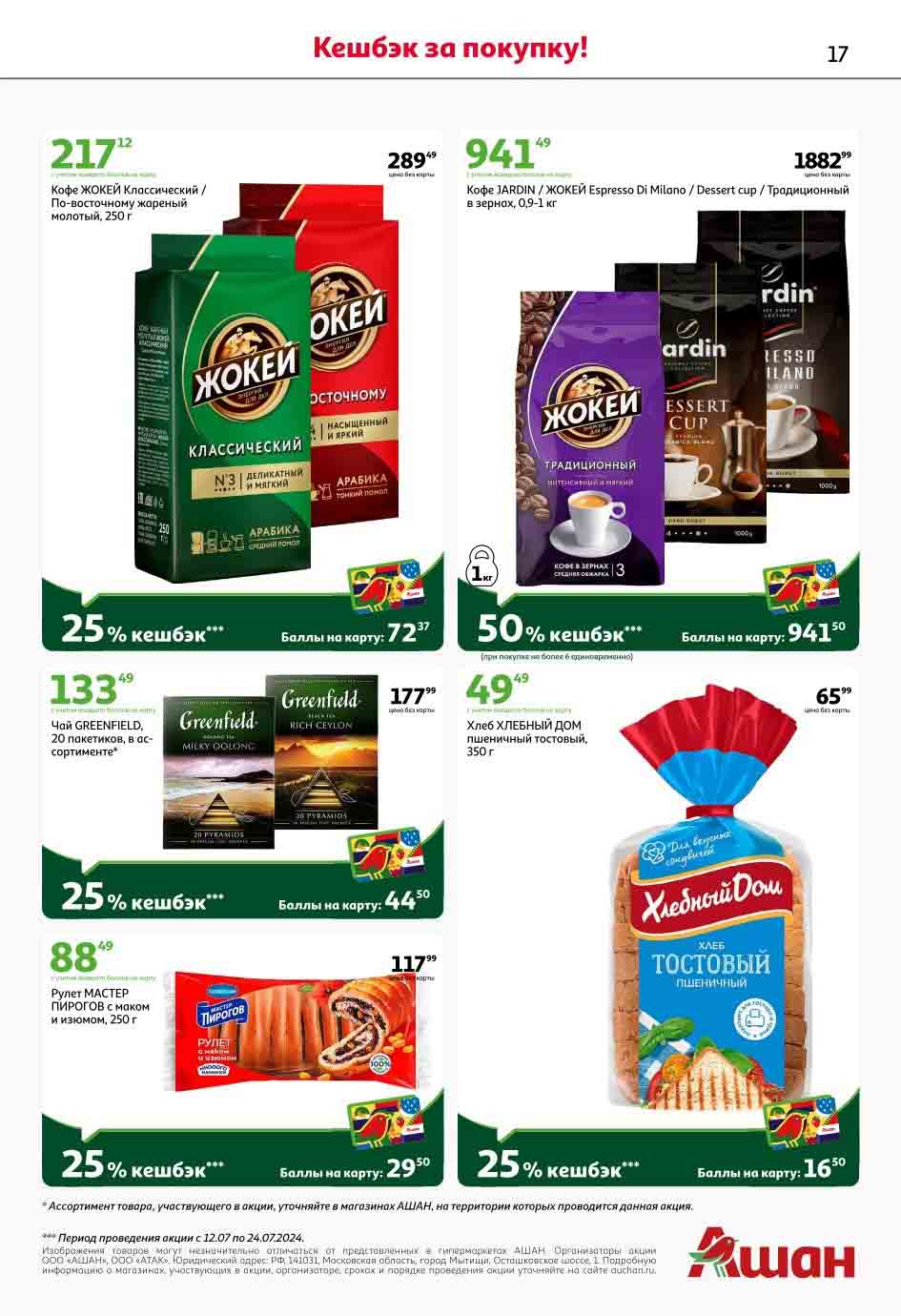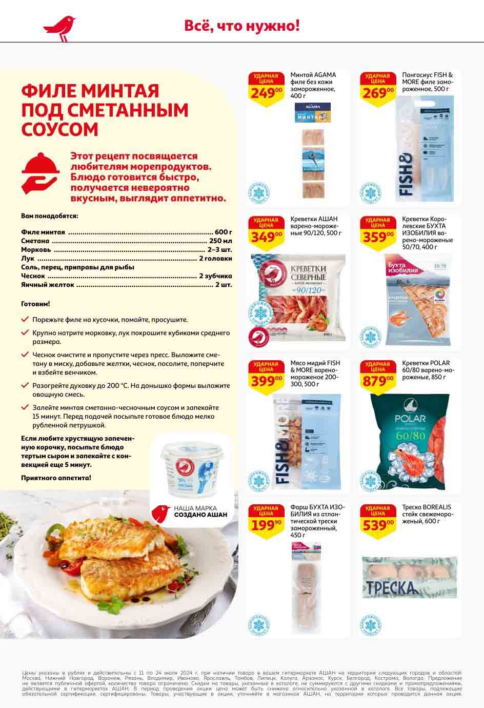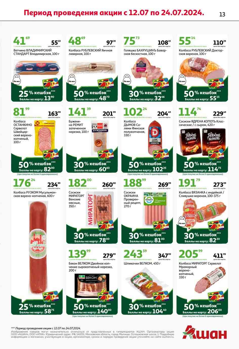 На страницах каталога Ашан вы найдете все свои любимые продукты, которые сейчас предлагаются в супермаркете. Не пропустите последние специальные предложения и сэкономьте на покупках. Предложение действительно при наличии товара на прилавках. Скидки на товары, указанные в каталоге, не суммируются с другими скидками. Изображения товаров могут незначительно отличаться от представленных на полках. Цены по акции Ашан действуют в городах: Москва. Балашиха. Химки. Подольск. Королев. Мытищи. Люберцы. Электросталь. Коломна. Одинцово. Железнодорожный, Серпухов, Орехово-Зуево. Красногорск, Щелково, Сергиев Посад, Пушкино. Жуковский, Ногинск, Раменское и многих других населенных пунктах Московского региона.