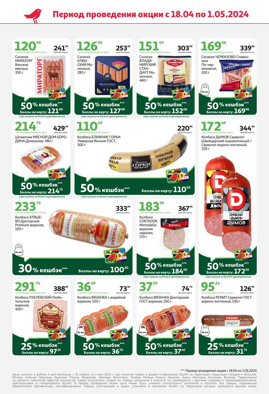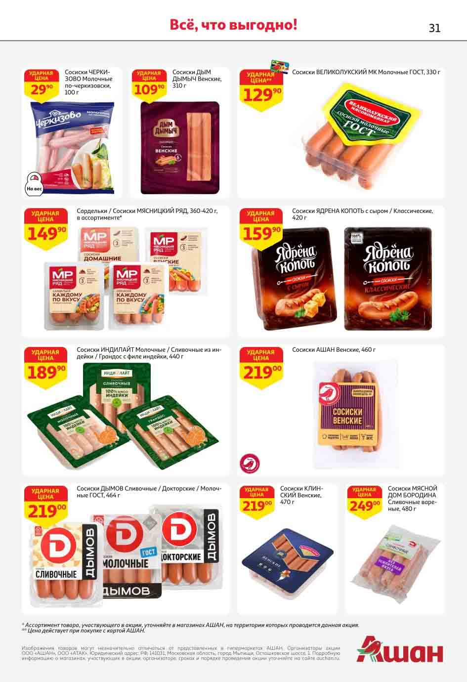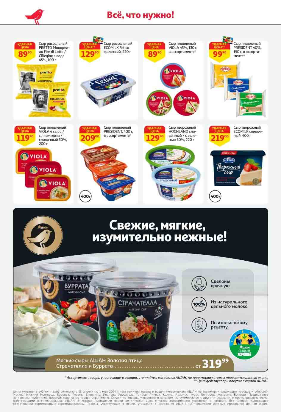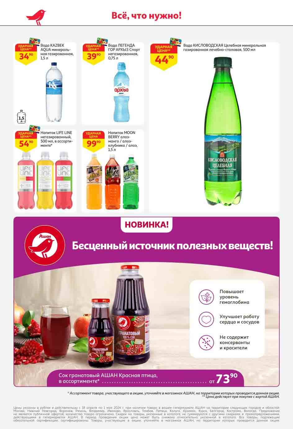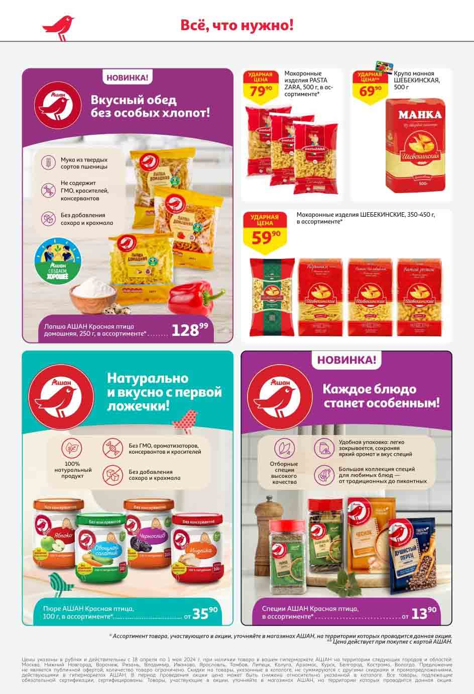 На страницах каталога Ашан вы найдете все свои любимые продукты, которые сейчас предлагаются в супермаркете. Не пропустите последние специальные предложения и сэкономьте на покупках. Предложение действительно при наличии товара на прилавках. Скидки на товары, указанные в каталоге, не суммируются с другими скидками. Изображения товаров могут незначительно отличаться от представленных на полках. Цены по акции Ашан действуют в городах: Москва. Балашиха. Химки. Подольск. Королев. Мытищи. Люберцы. Электросталь. Коломна. Одинцово. Железнодорожный, Серпухов, Орехово-Зуево. Красногорск, Щелково, Сергиев Посад, Пушкино. Жуковский, Ногинск, Раменское и многих других населенных пунктах Московского региона.