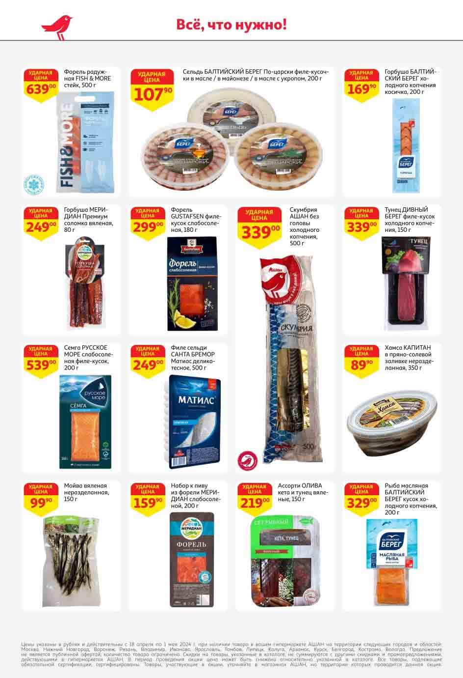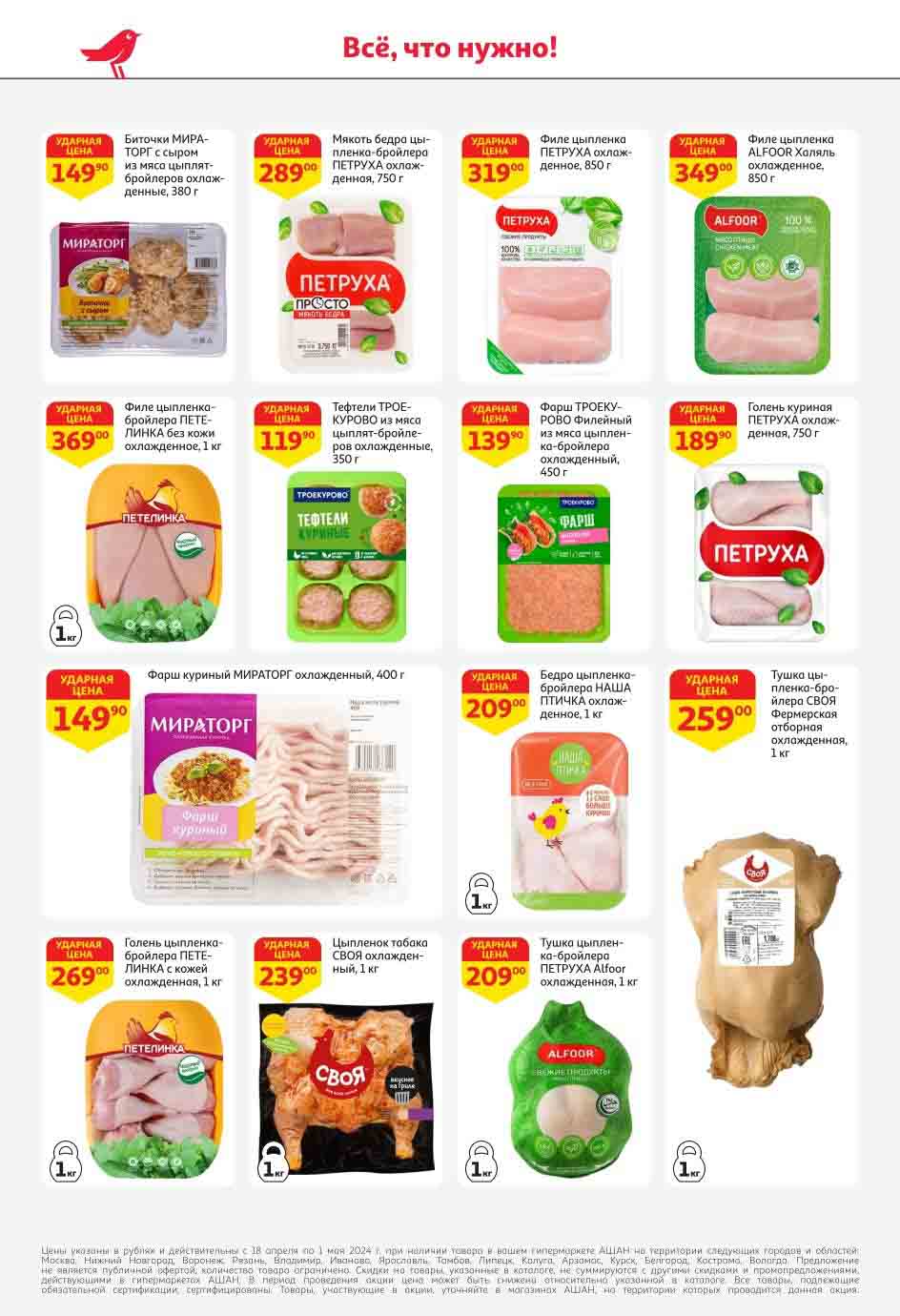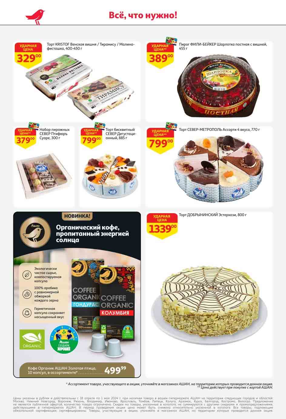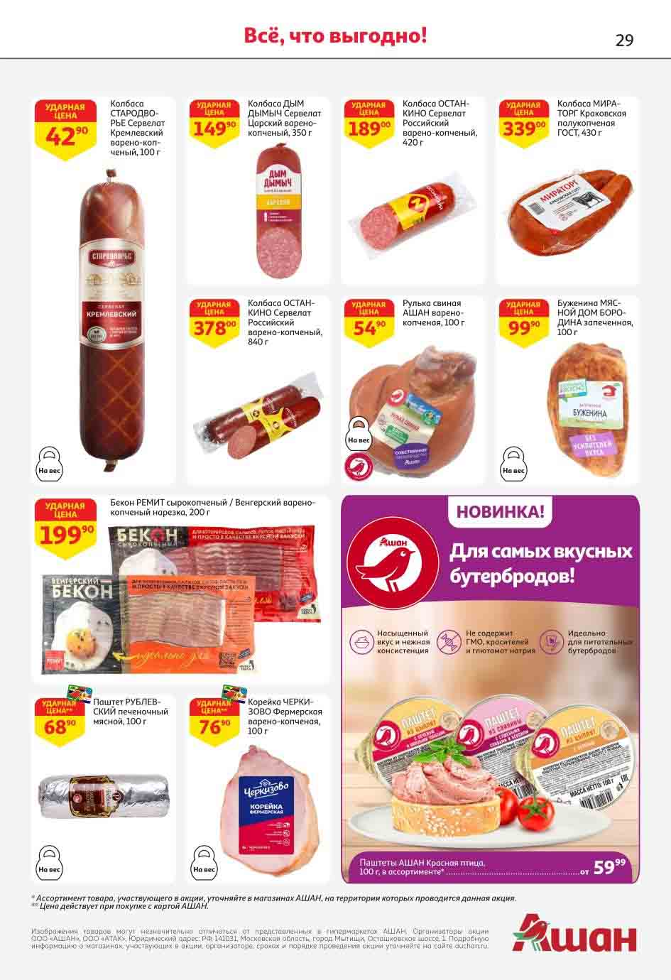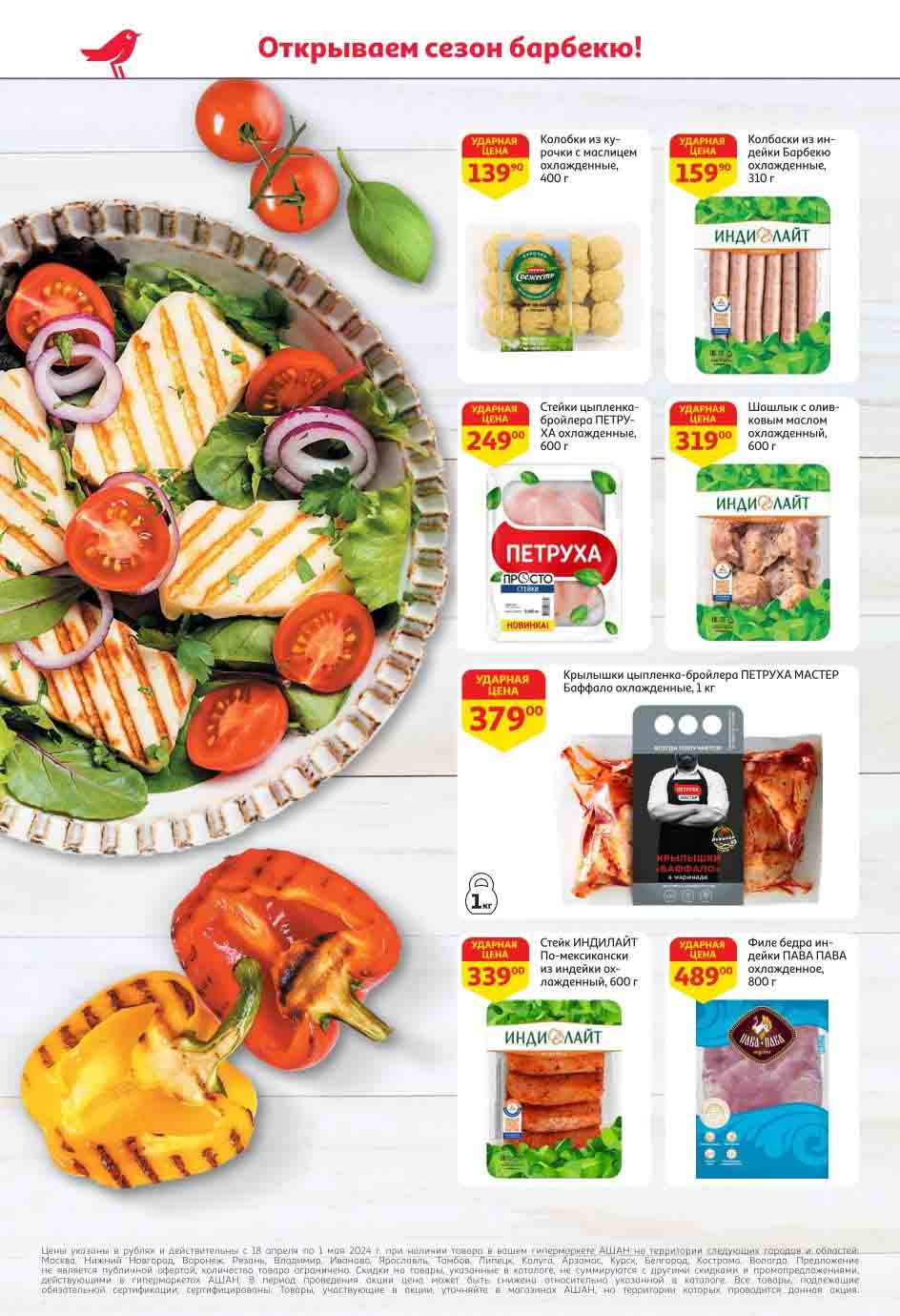 На страницах каталога Ашан вы найдете все свои любимые продукты, которые сейчас предлагаются в супермаркете. Не пропустите последние специальные предложения и сэкономьте на покупках. Предложение действительно при наличии товара на прилавках. Скидки на товары, указанные в каталоге, не суммируются с другими скидками. Изображения товаров могут незначительно отличаться от представленных на полках. Цены по акции Ашан действуют в городах: Москва. Балашиха. Химки. Подольск. Королев. Мытищи. Люберцы. Электросталь. Коломна. Одинцово. Железнодорожный, Серпухов, Орехово-Зуево. Красногорск, Щелково, Сергиев Посад, Пушкино. Жуковский, Ногинск, Раменское и многих других населенных пунктах Московского региона.