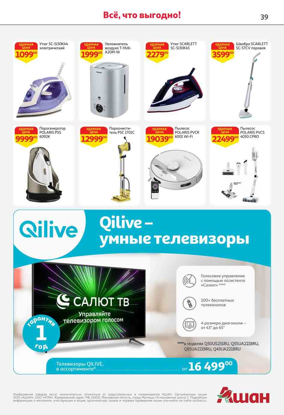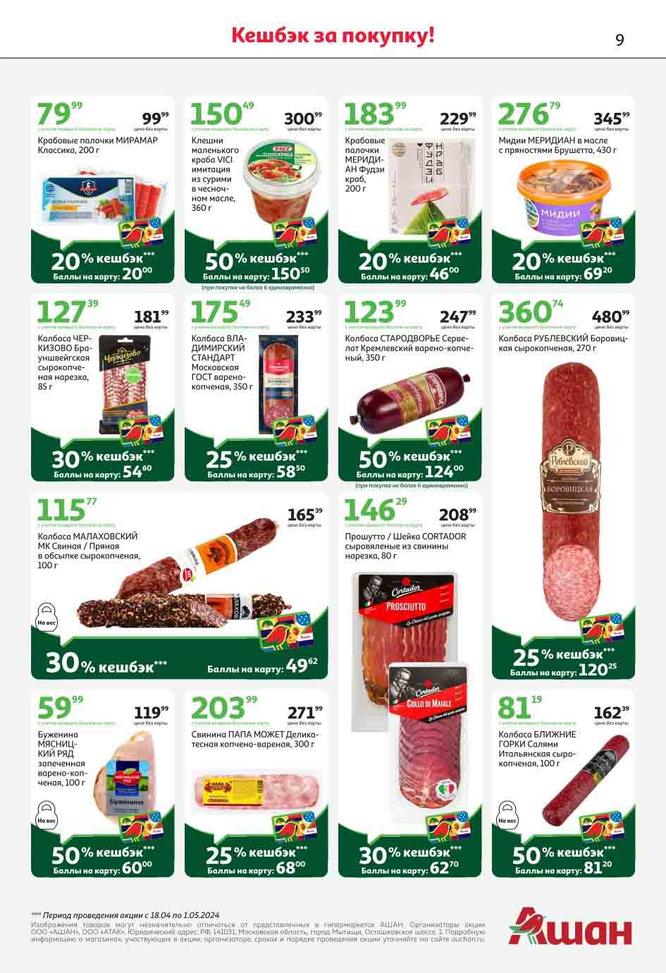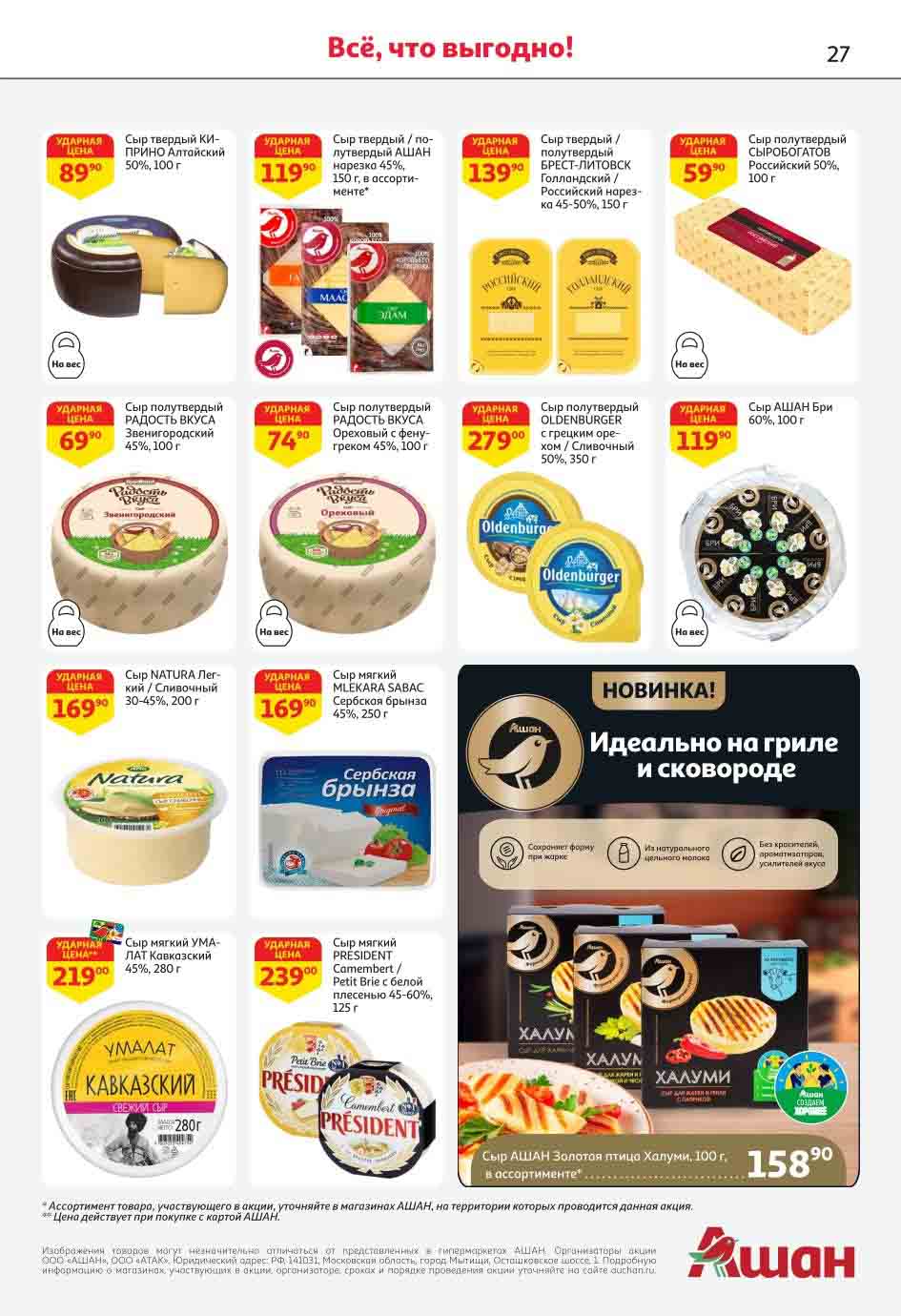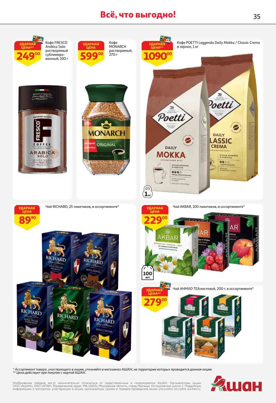 На страницах каталога Ашан вы найдете все свои любимые продукты, которые сейчас предлагаются в супермаркете. Не пропустите последние специальные предложения и сэкономьте на покупках. Предложение действительно при наличии товара на прилавках. Скидки на товары, указанные в каталоге, не суммируются с другими скидками. Изображения товаров могут незначительно отличаться от представленных на полках. Цены по акции Ашан действуют в городах: Москва. Балашиха. Химки. Подольск. Королев. Мытищи. Люберцы. Электросталь. Коломна. Одинцово. Железнодорожный, Серпухов, Орехово-Зуево. Красногорск, Щелково, Сергиев Посад, Пушкино. Жуковский, Ногинск, Раменское и многих других населенных пунктах Московского региона.