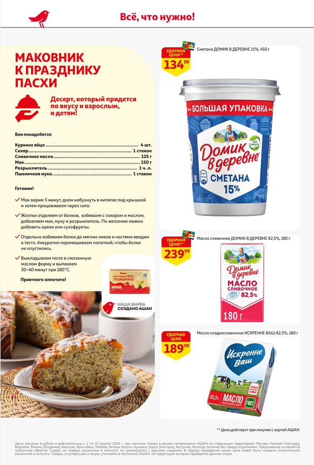 Ашан акции с 2 апреля — 15 апреля 2026. Каталог Пасха пришла