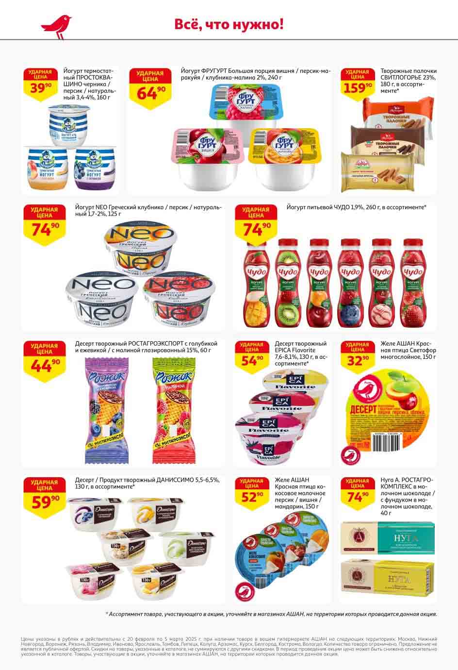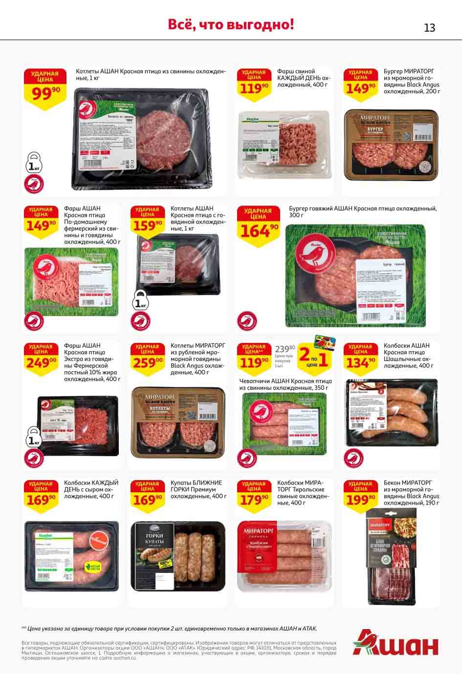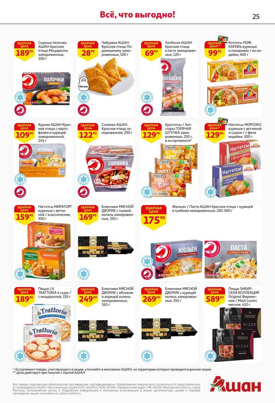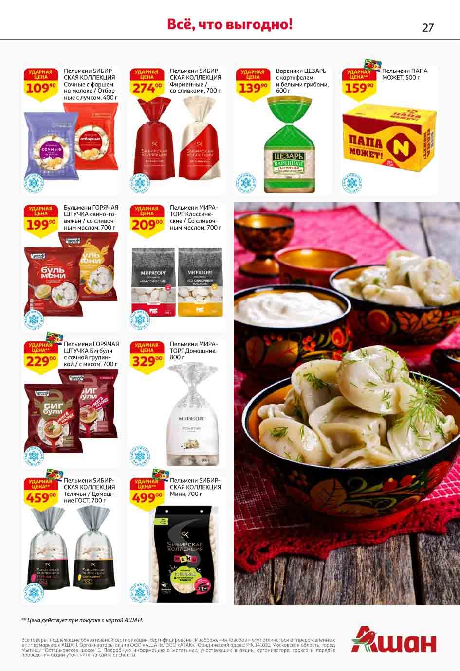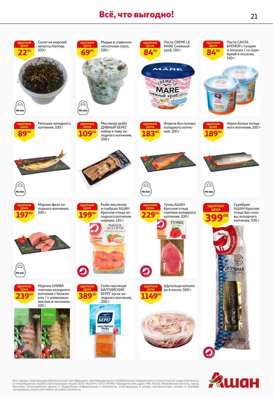 На страницах каталога Ашан вы найдете все свои любимые продукты, которые сейчас предлагаются в супермаркете. Не пропустите последние специальные предложения и сэкономьте на покупках. Предложение действительно при наличии товара на прилавках. Скидки на товары, указанные в каталоге, не суммируются с другими скидками. Изображения товаров могут незначительно отличаться от представленных на полках. Цены по акции Ашан действуют в городах: Москва. Балашиха. Химки. Подольск. Королев. Мытищи. Люберцы. Электросталь. Коломна. Одинцово. Железнодорожный, Серпухов, Орехово-Зуево. Красногорск, Щелково, Сергиев Посад, Пушкино. Жуковский, Ногинск, Раменское и многих других населенных пунктах Московского региона.