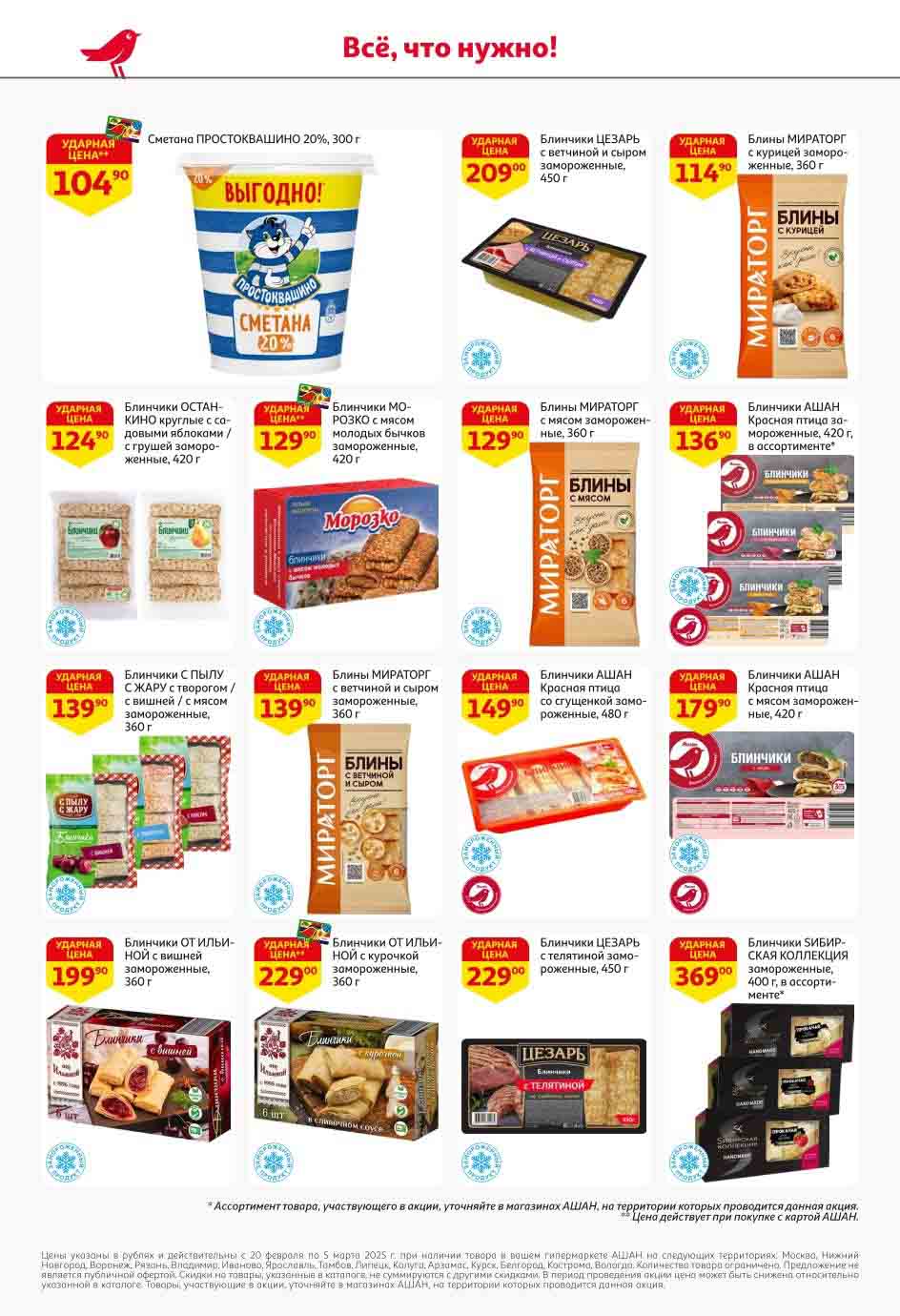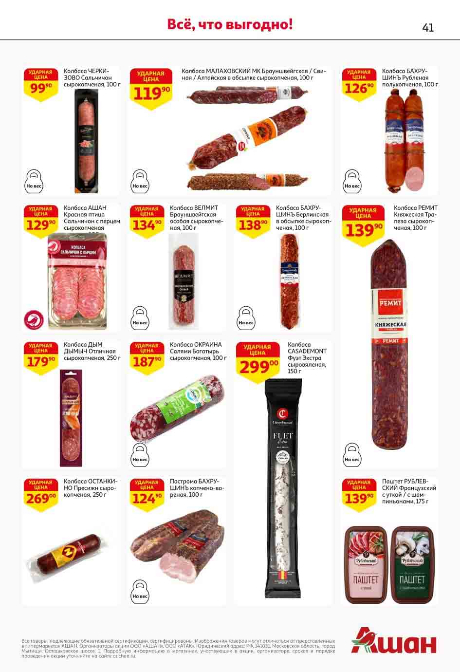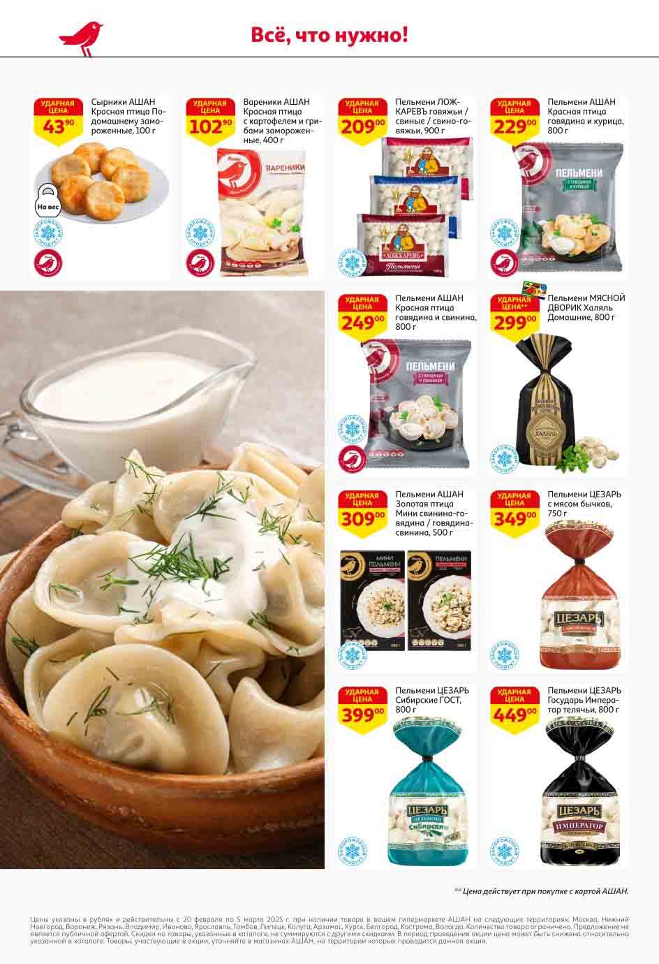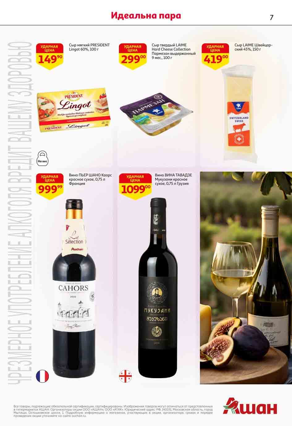 На страницах каталога Ашан вы найдете все свои любимые продукты, которые сейчас предлагаются в супермаркете. Не пропустите последние специальные предложения и сэкономьте на покупках. Предложение действительно при наличии товара на прилавках. Скидки на товары, указанные в каталоге, не суммируются с другими скидками. Изображения товаров могут незначительно отличаться от представленных на полках. Цены по акции Ашан действуют в городах: Москва. Балашиха. Химки. Подольск. Королев. Мытищи. Люберцы. Электросталь. Коломна. Одинцово. Железнодорожный, Серпухов, Орехово-Зуево. Красногорск, Щелково, Сергиев Посад, Пушкино. Жуковский, Ногинск, Раменское и многих других населенных пунктах Московского региона.